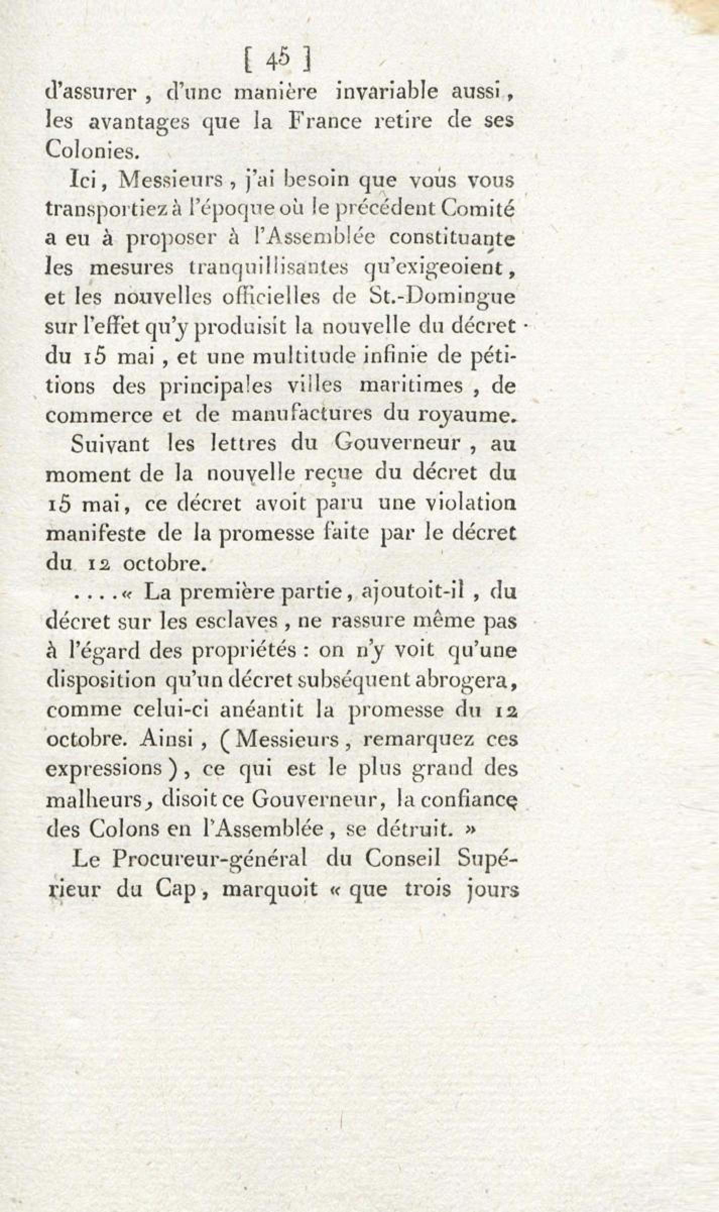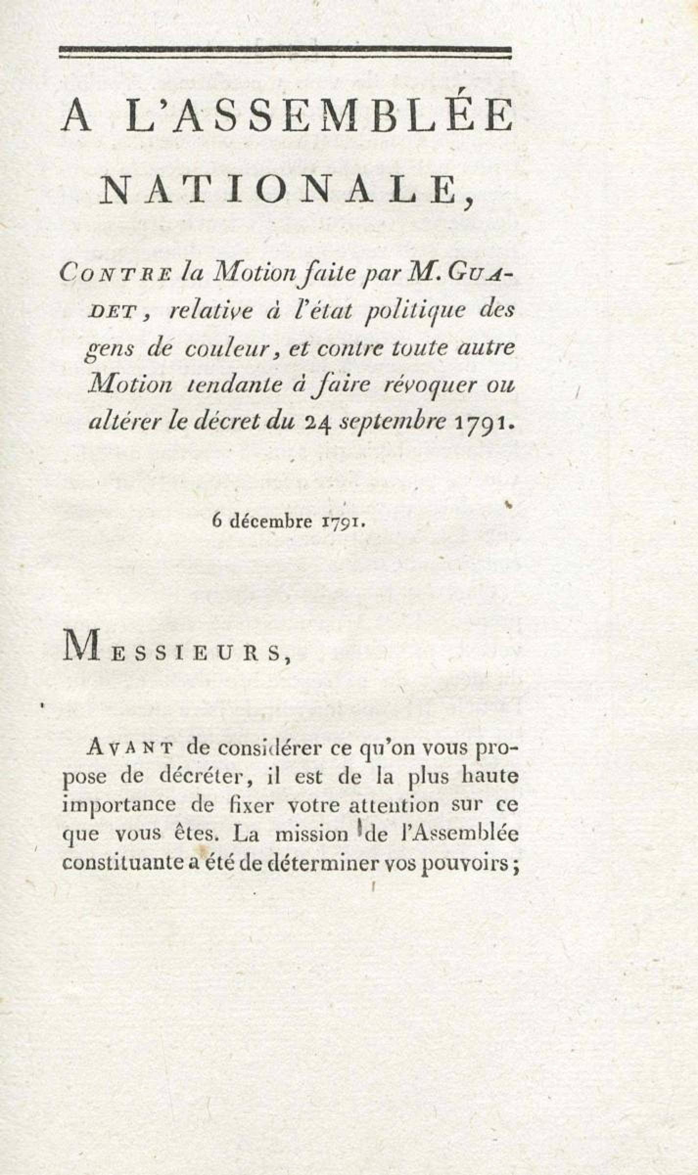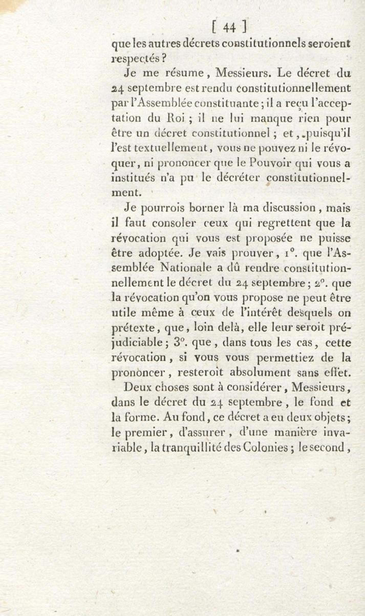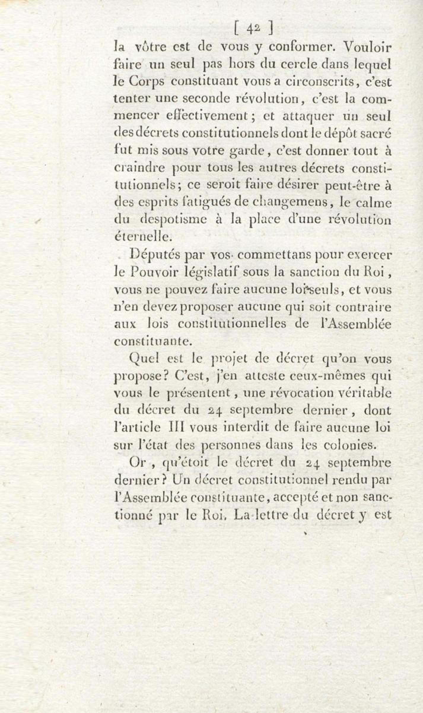 - Sur les troubles des colonies, et l'unique moyen d'assurer la tranquillité, la prospérité et la fidélité de ces dépendances de l'Empire : en réfutation des deux discours de M. Brissot, des 1er et 3 décembre 1791