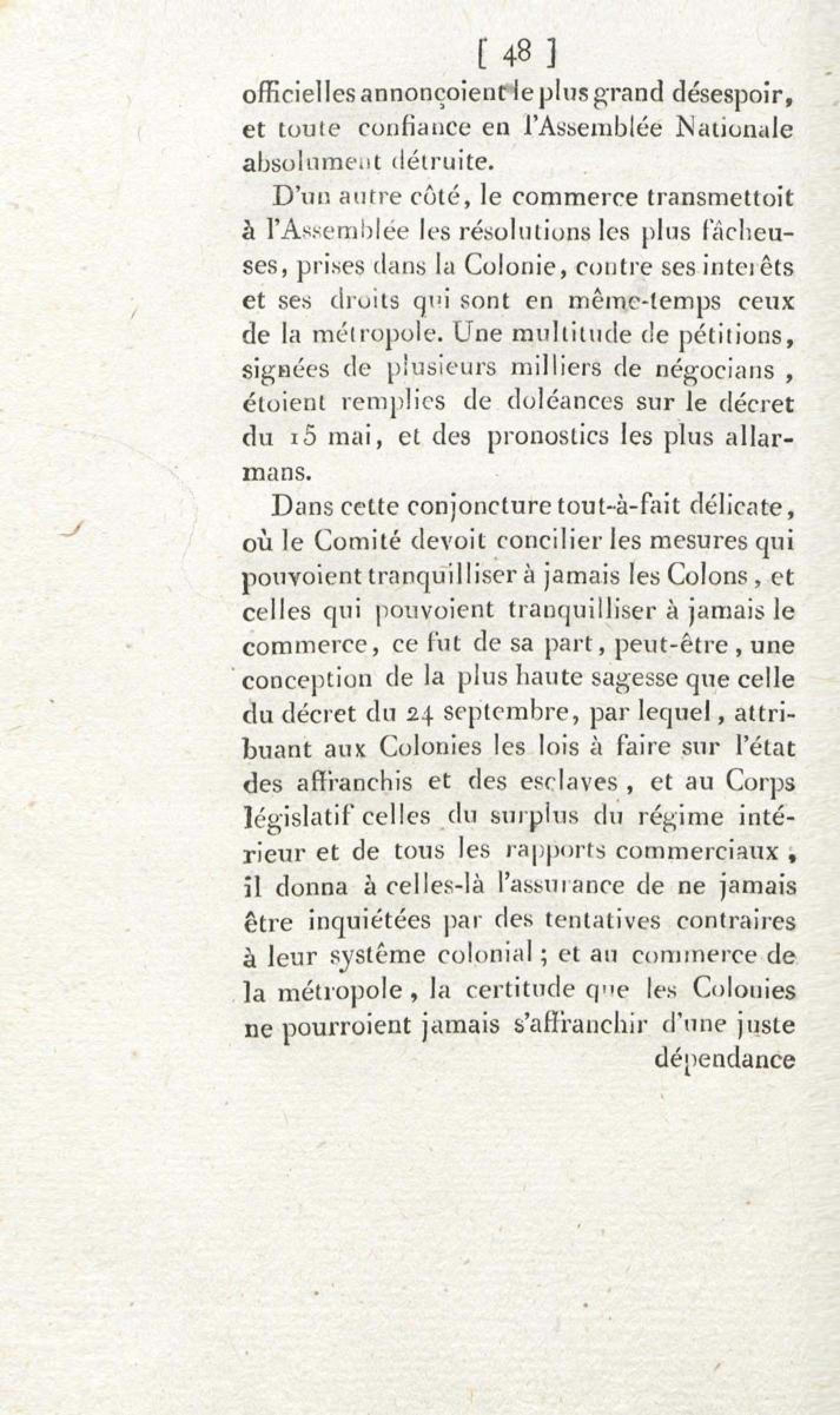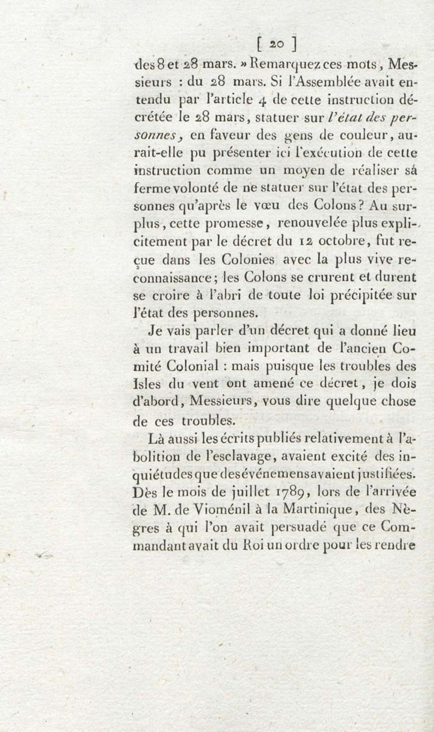 Sur les troubles des colonies, et l'unique moyen d'assurer la tranquillité, la prospérité et la fidélité de ces dépendances de l'Empire : en réfutation des deux discours de M. Brissot, des 1er et 3 décembre 1791