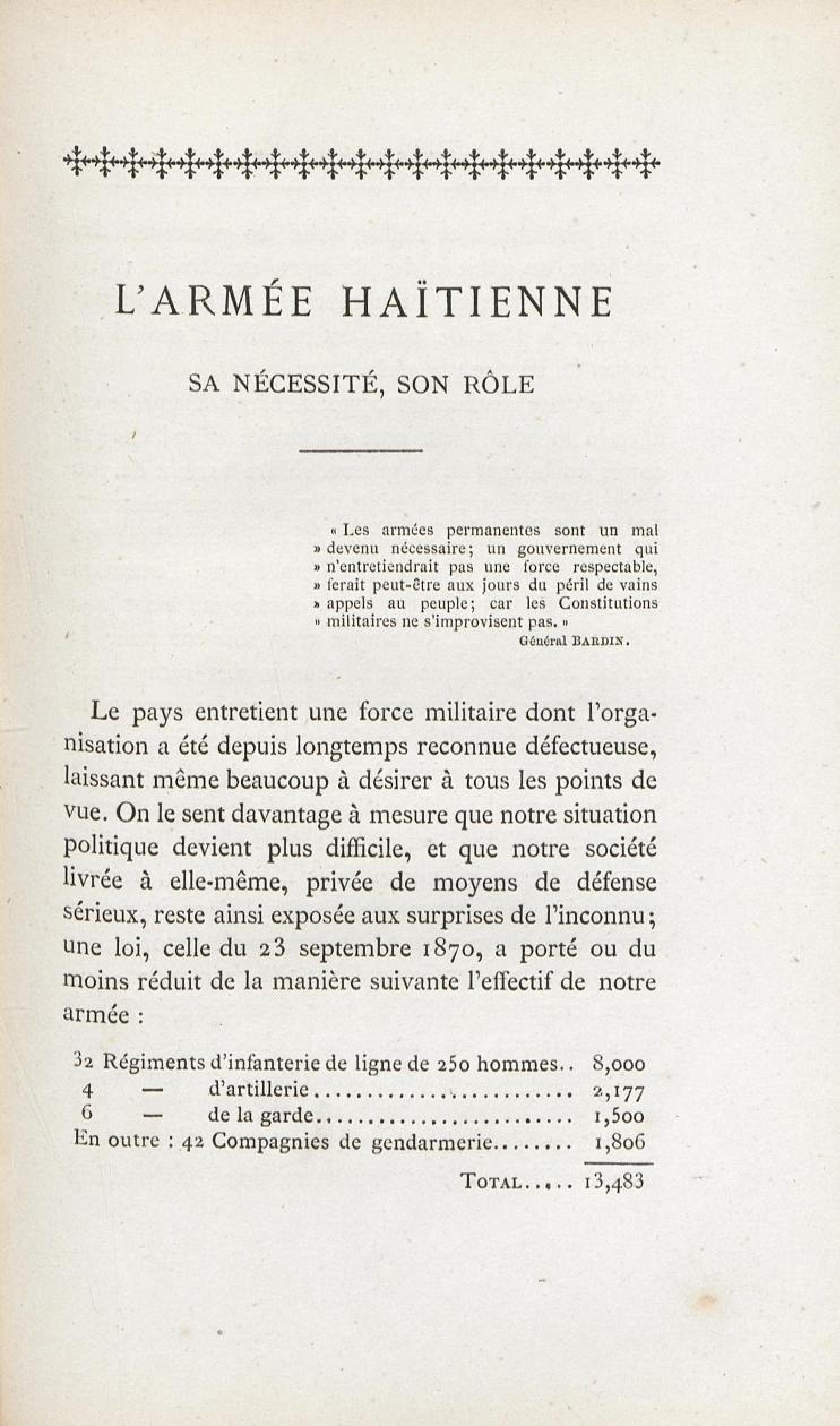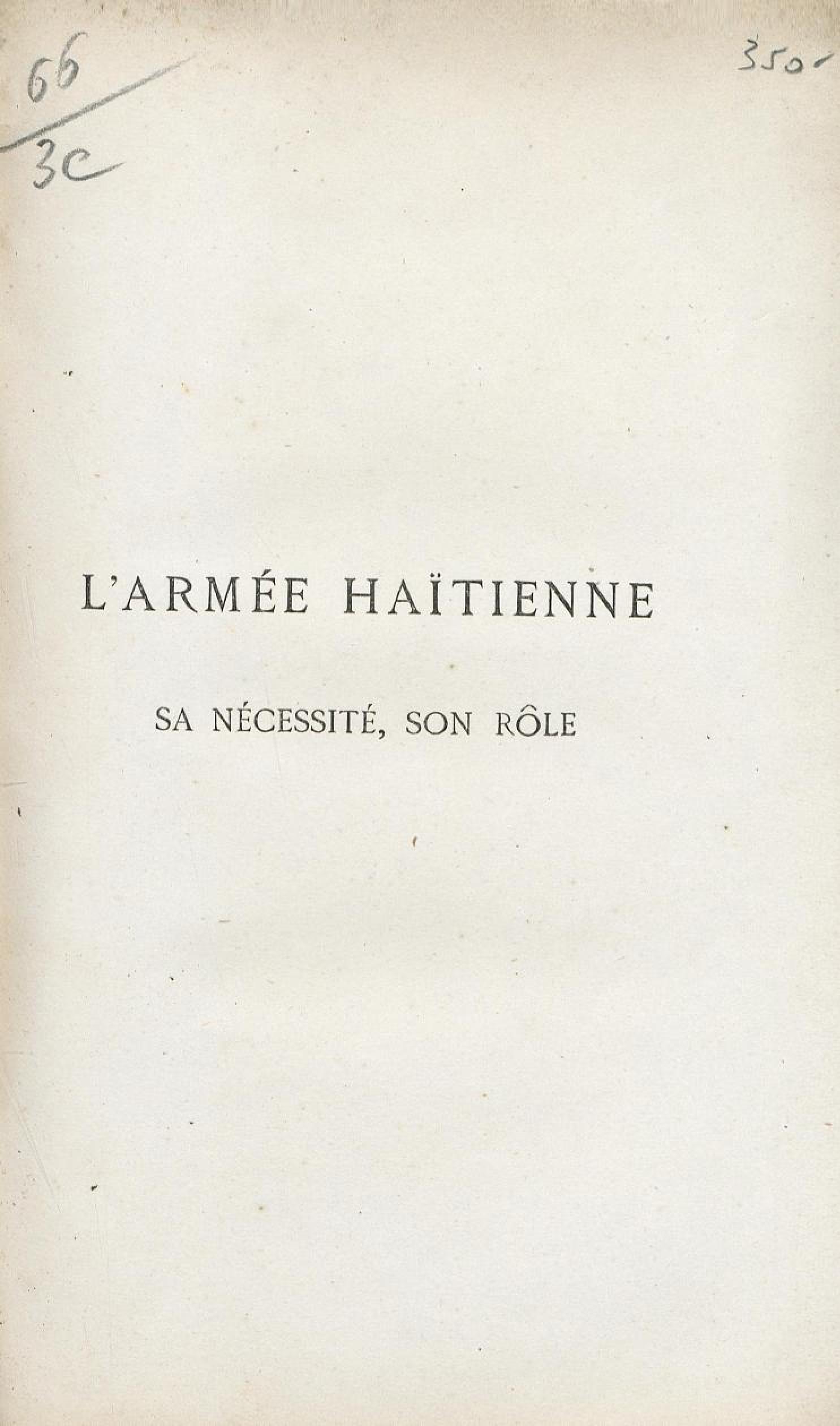 - L'armée haïtienne : sa nécessité, son rôle