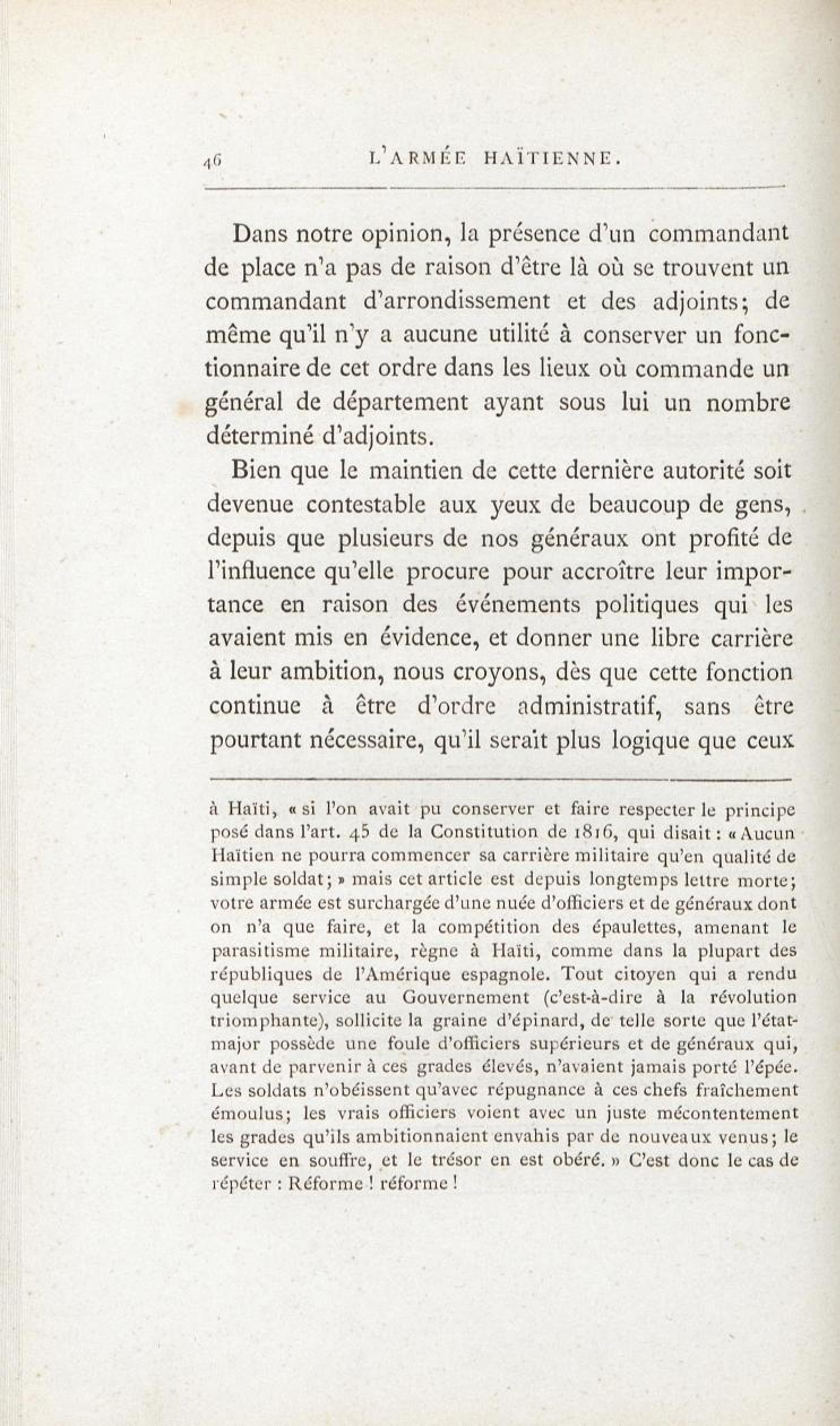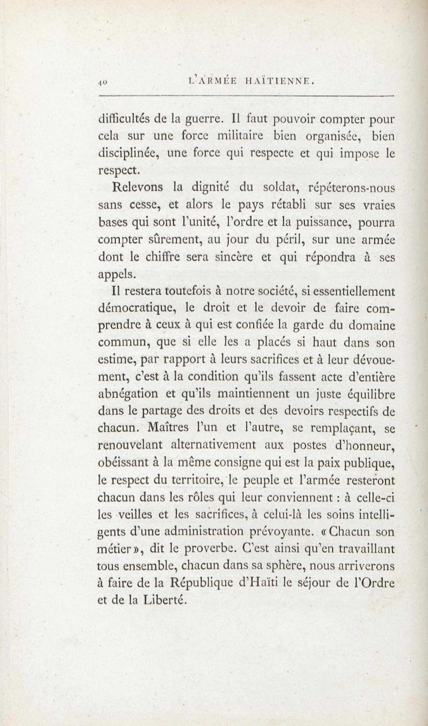 L'armée haïtienne : sa nécessité, son rôle