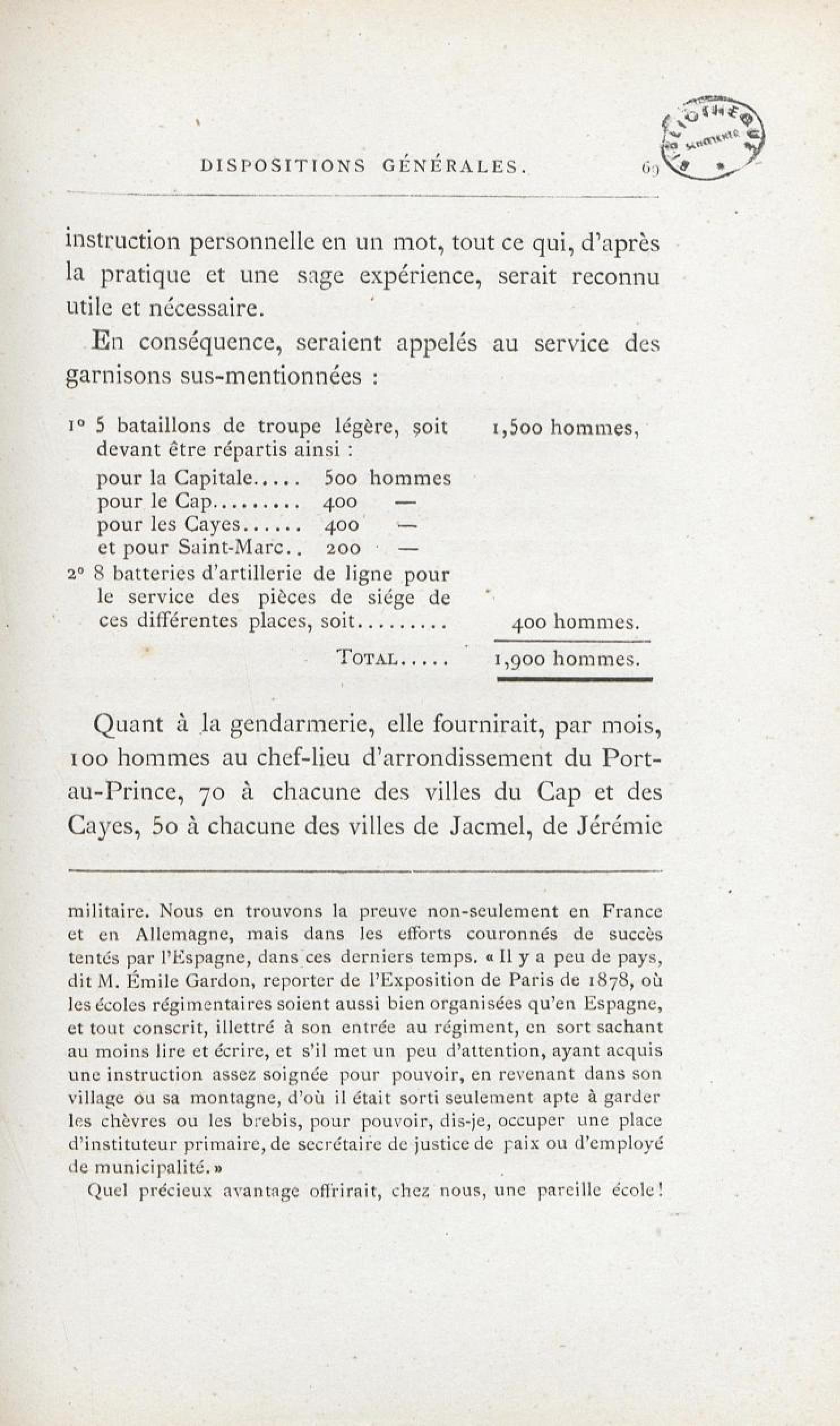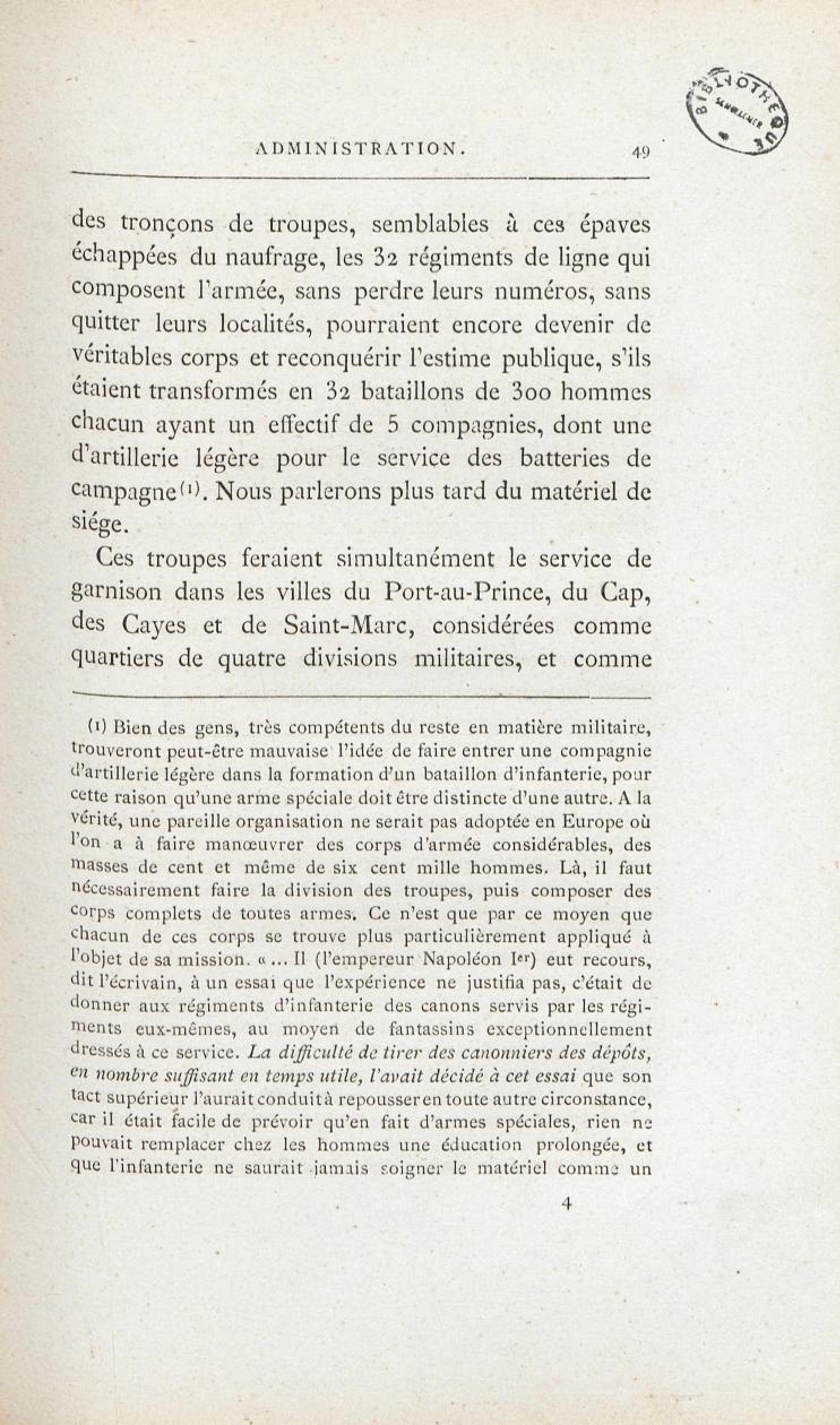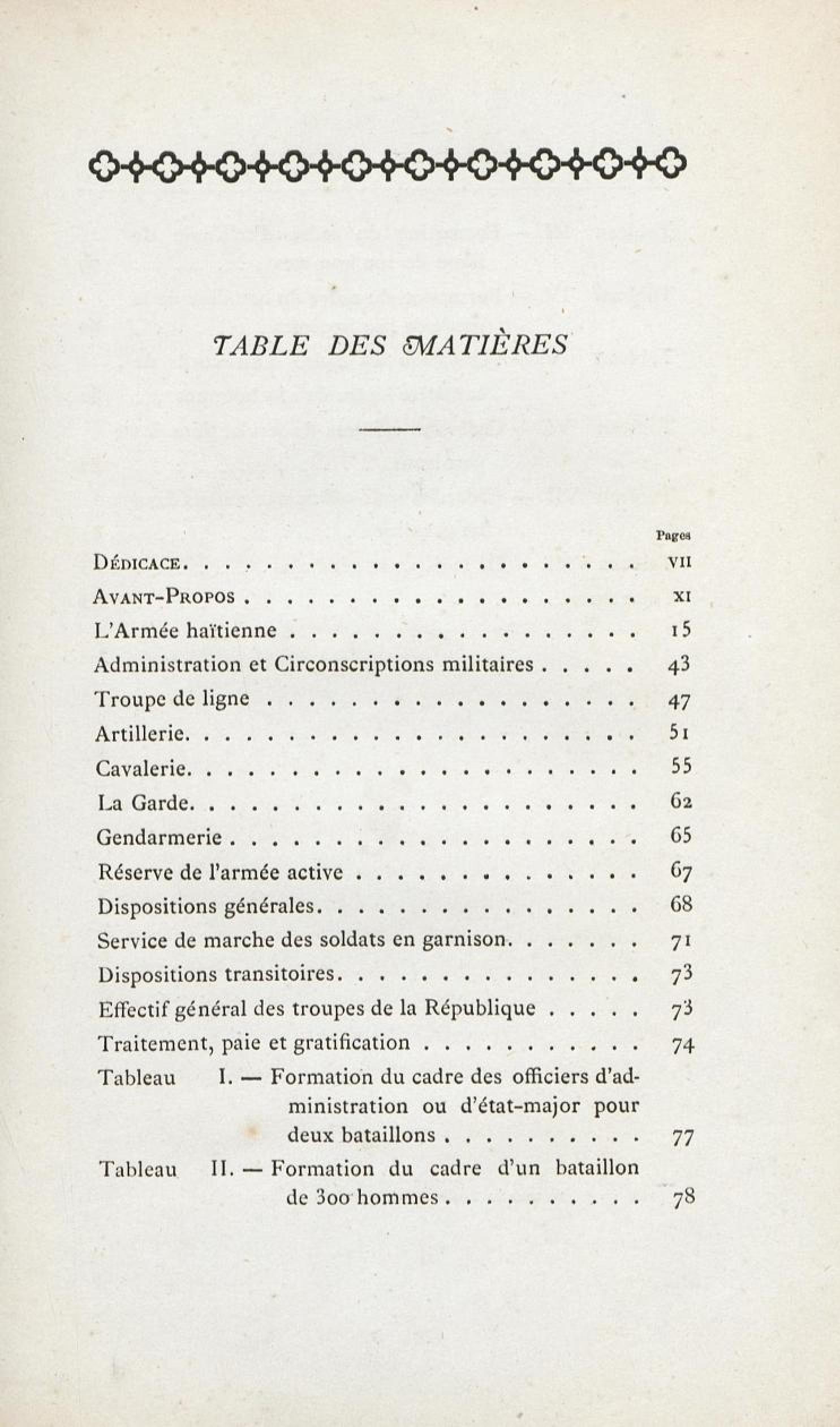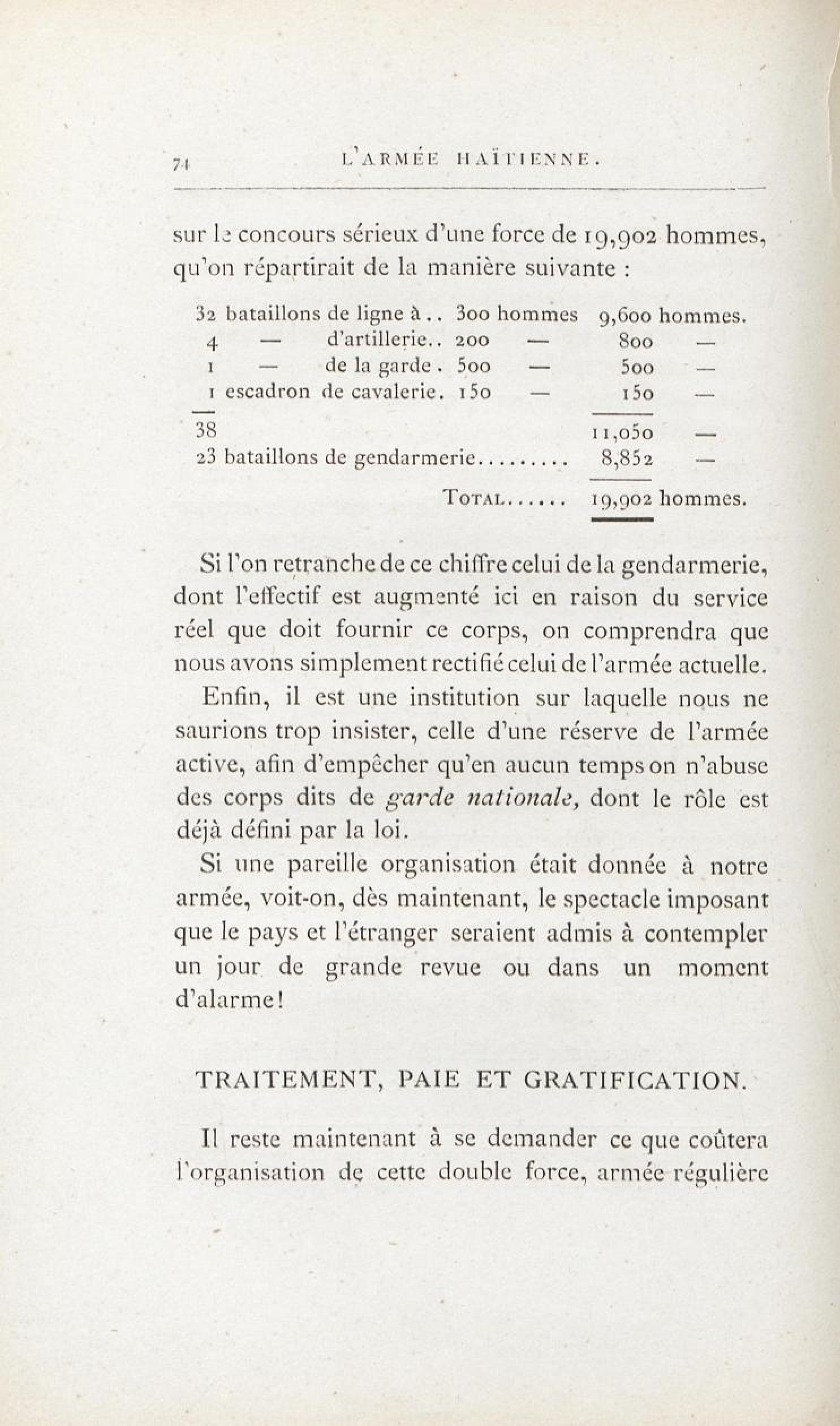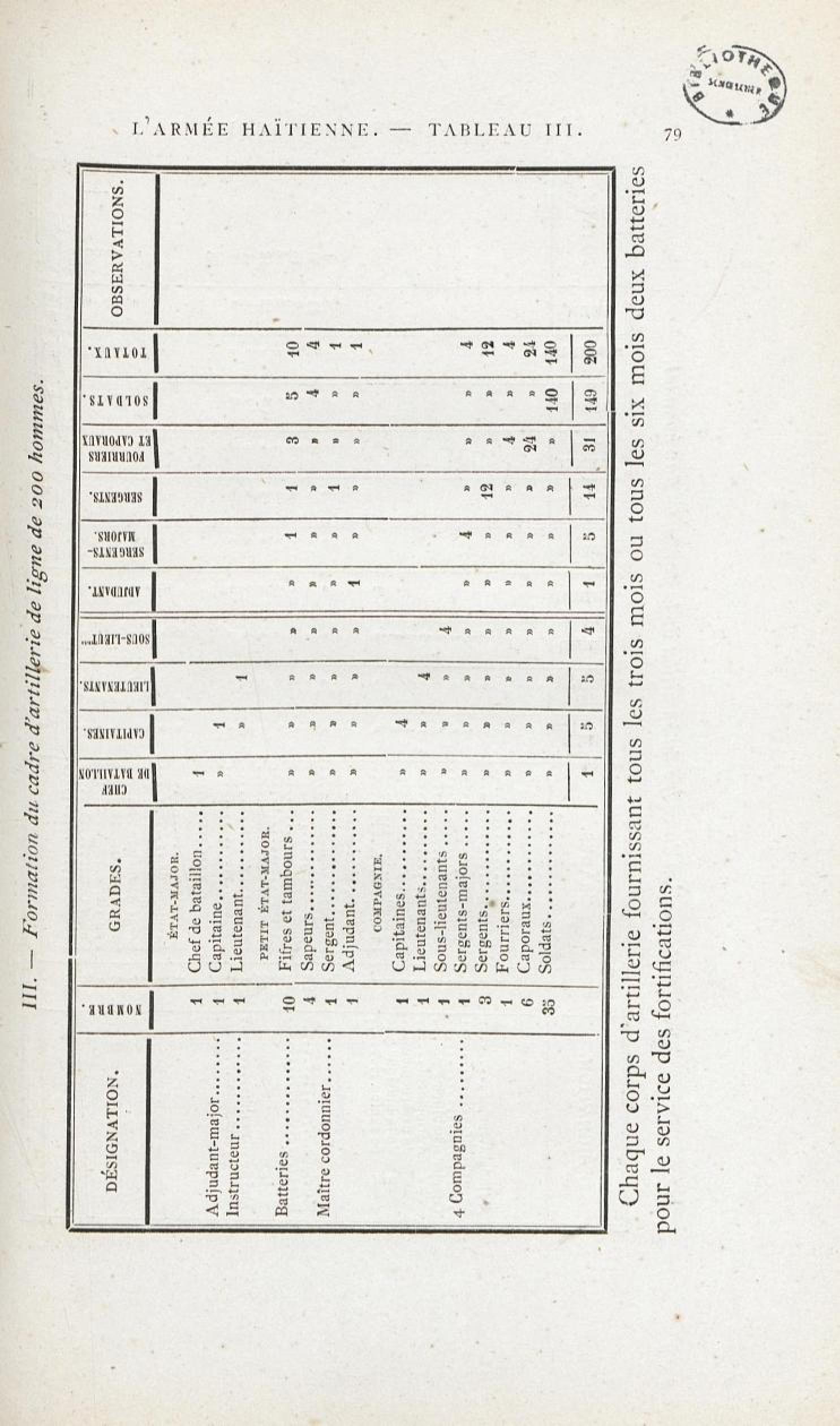 L'armée haïtienne. Tableau III. Formation du cadre d'artillerie de ligne de 200 hommes.