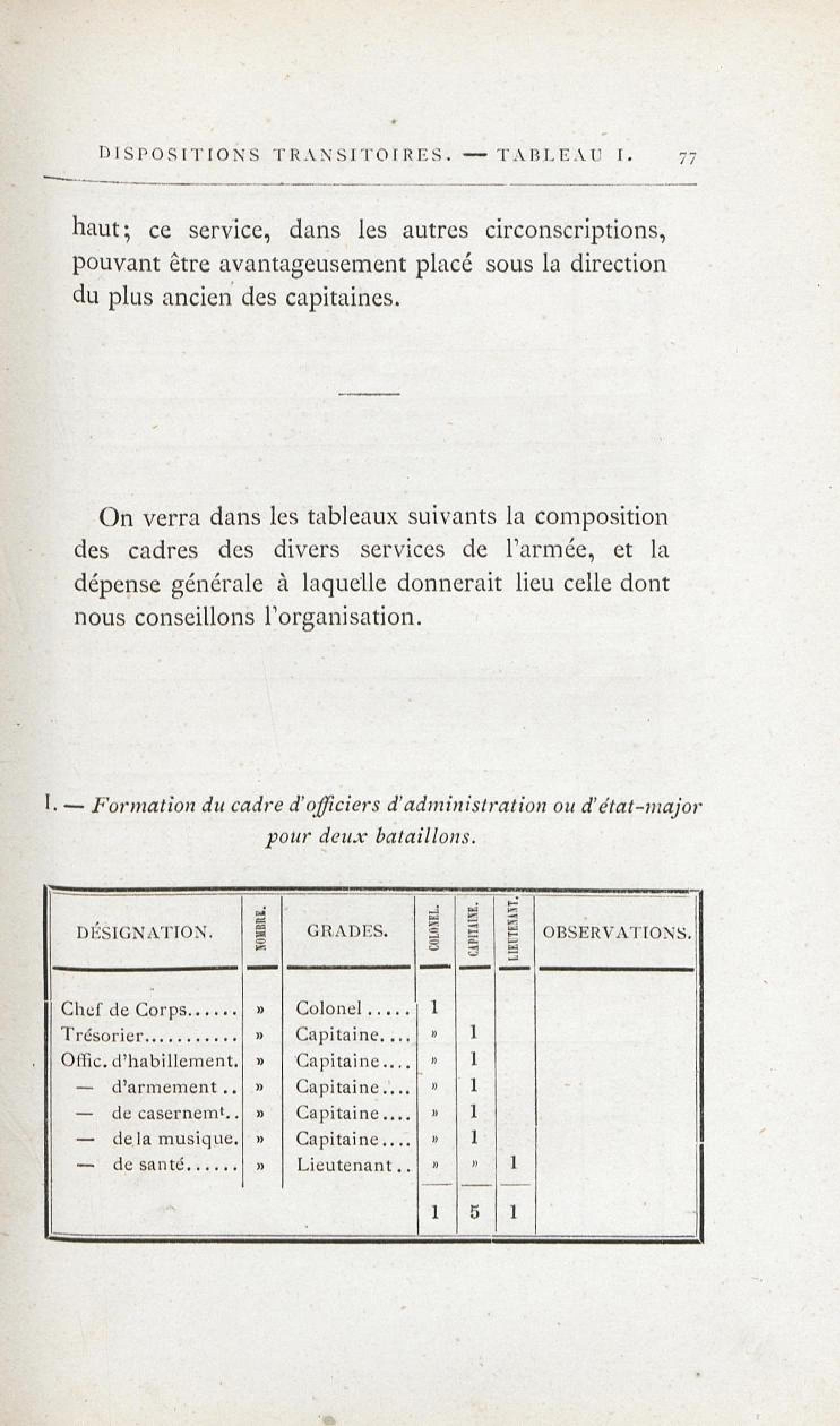Formation du cadre d'officiers d'administration ou d'état-major pour deux bataillons. |