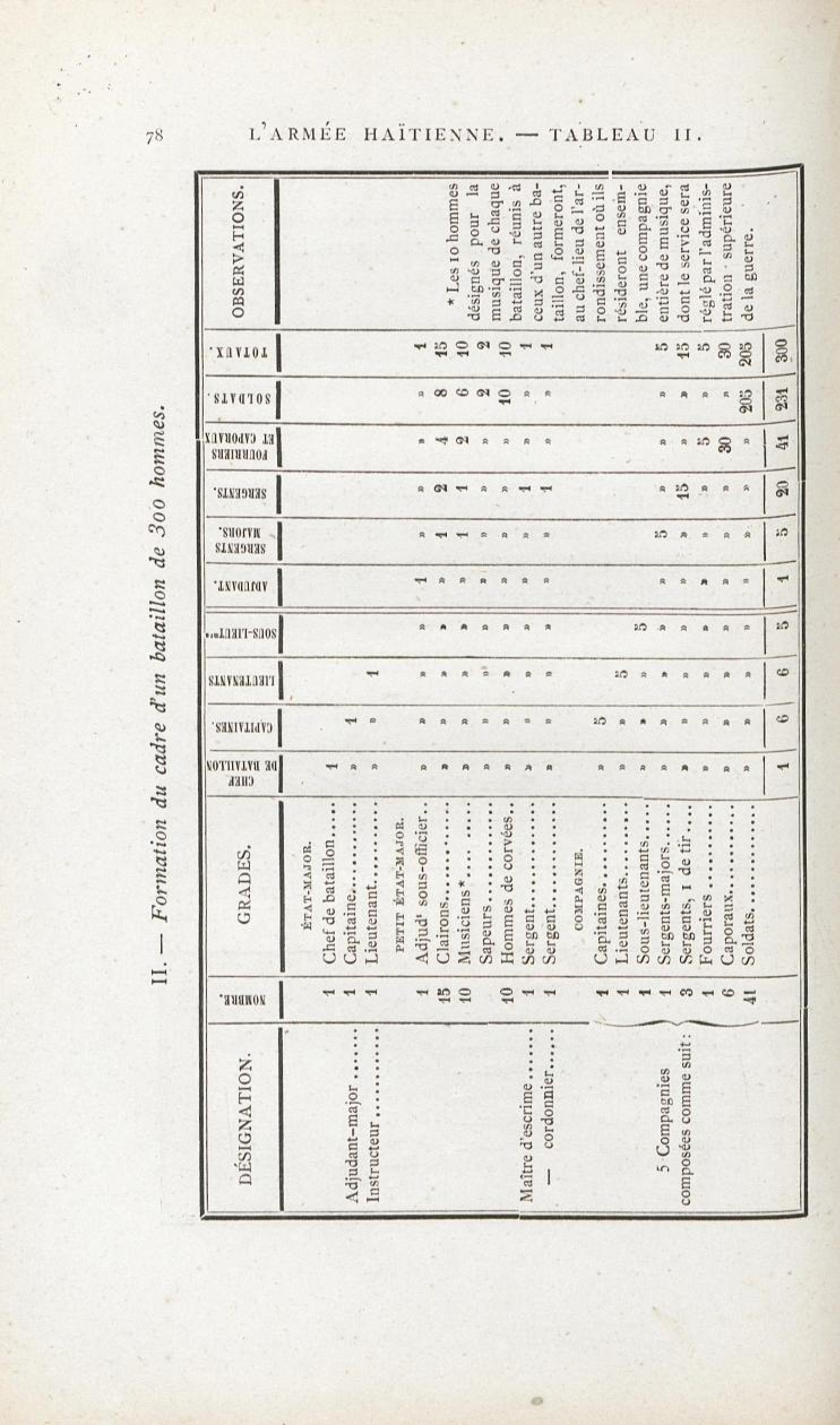 L'armée haïtienne. Tableau II. Formation du cadre d'un bataillon de 300 hommes. |
