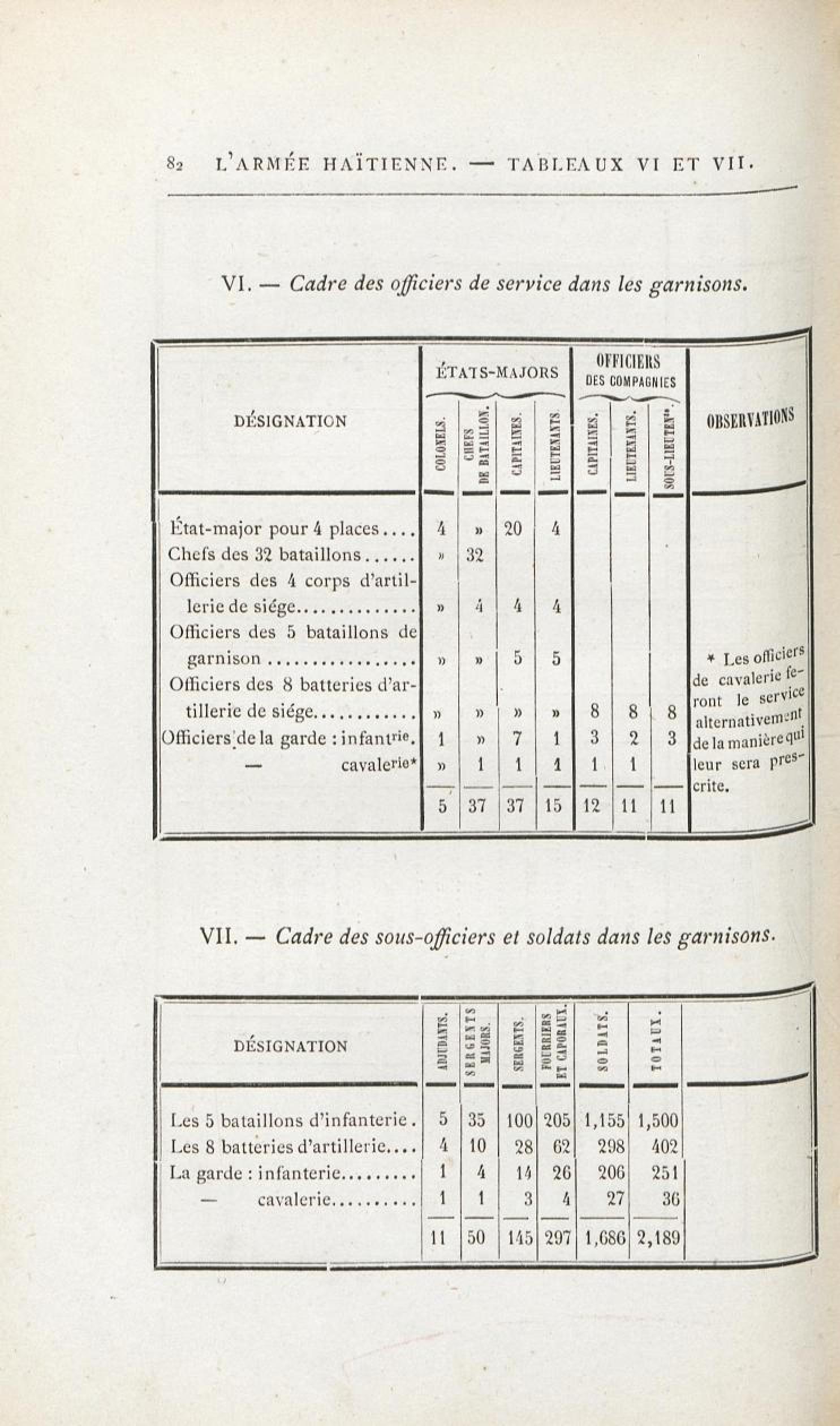 L'armée haïtienne. - Tableau VI et VII. - Cadre des officiers de service dans les garnisons.