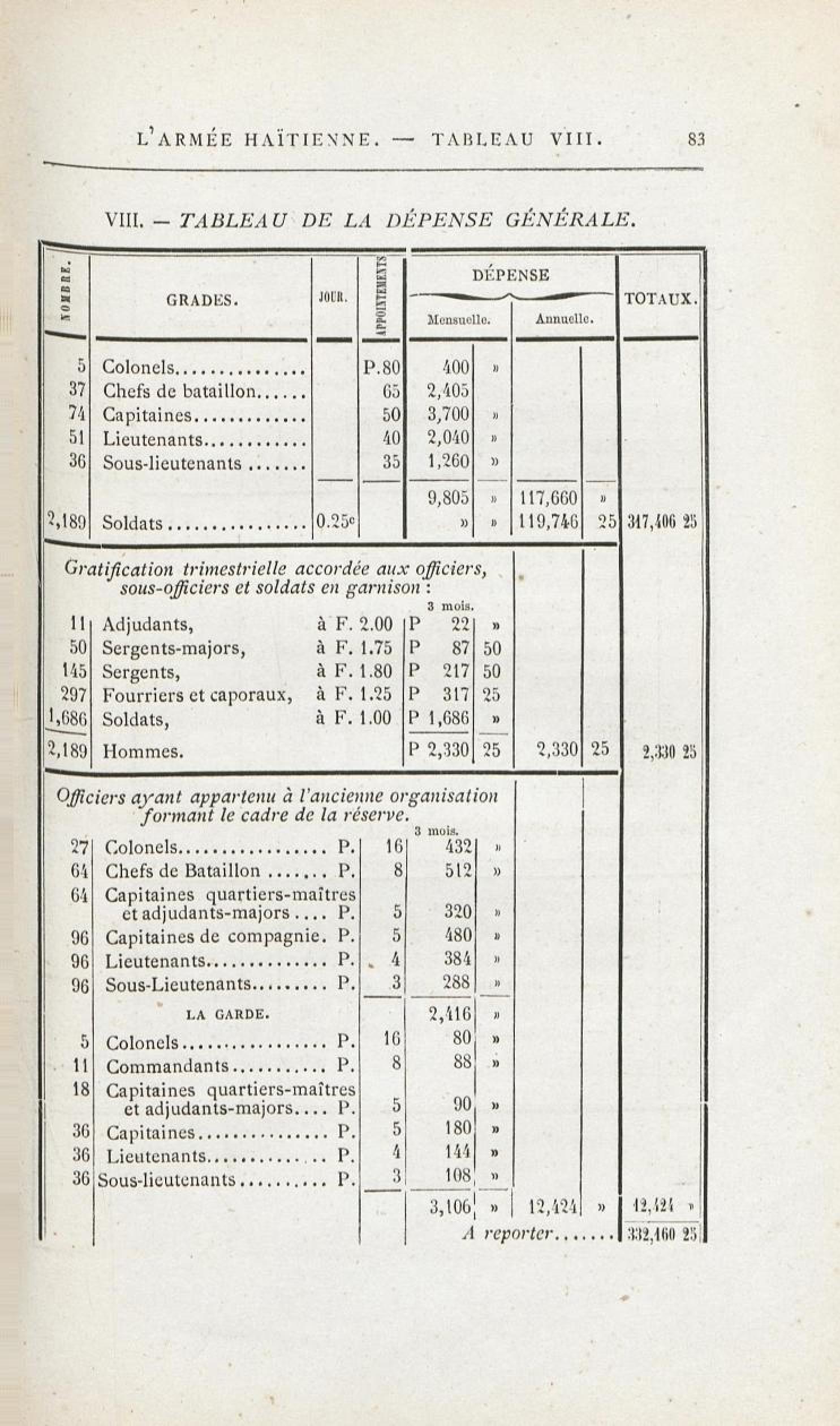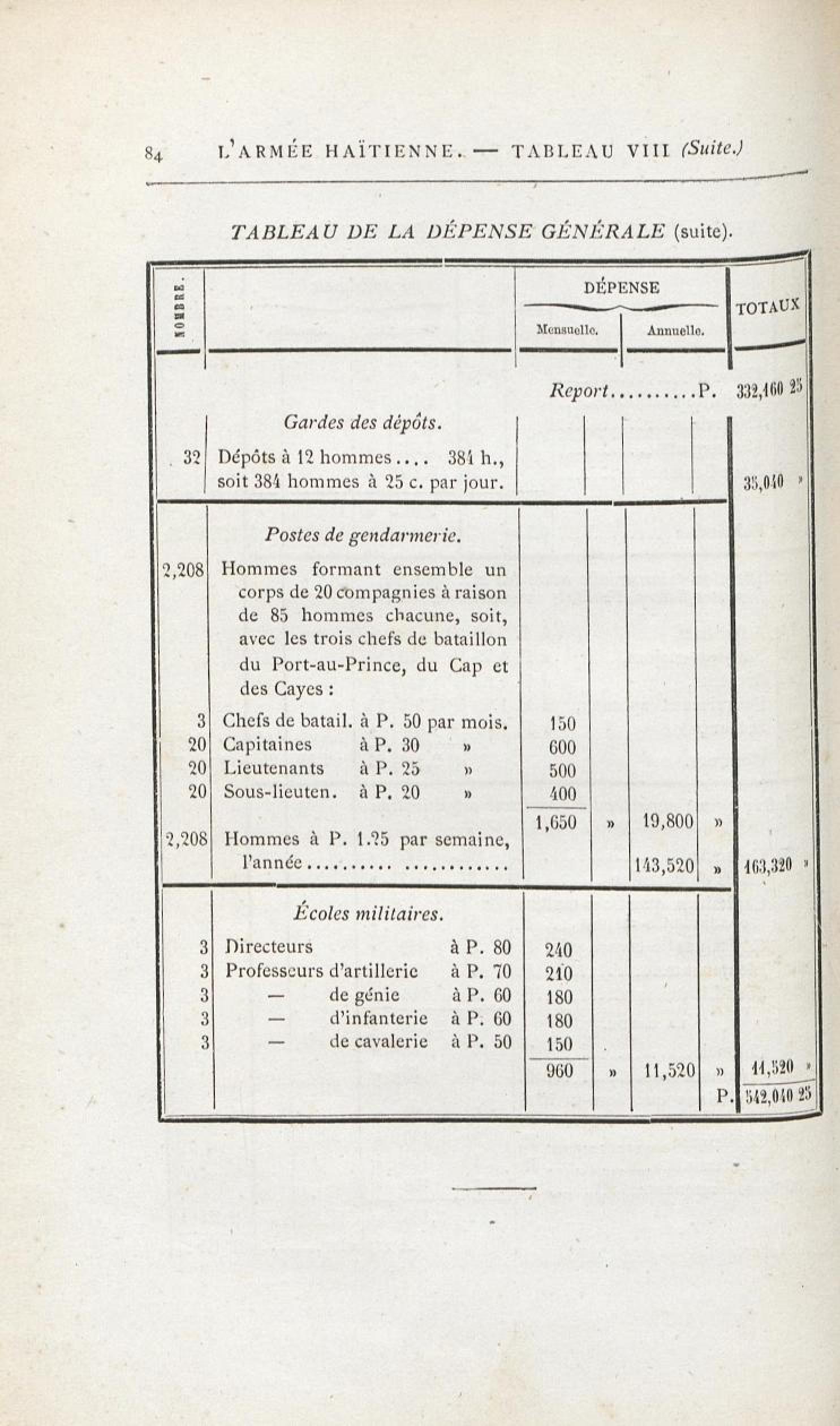L'armée haïtienne. Tableau VIII. - Tableau de la dépense générale. |