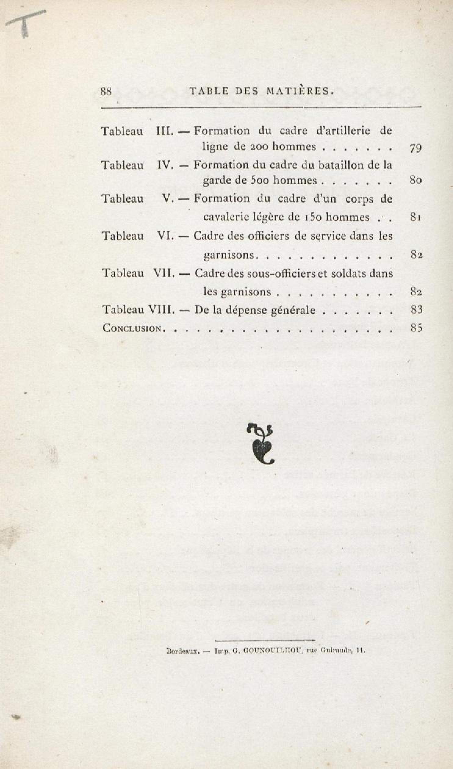 VII. - Cadre des sous-officiers et soldats dans les garnisons.
