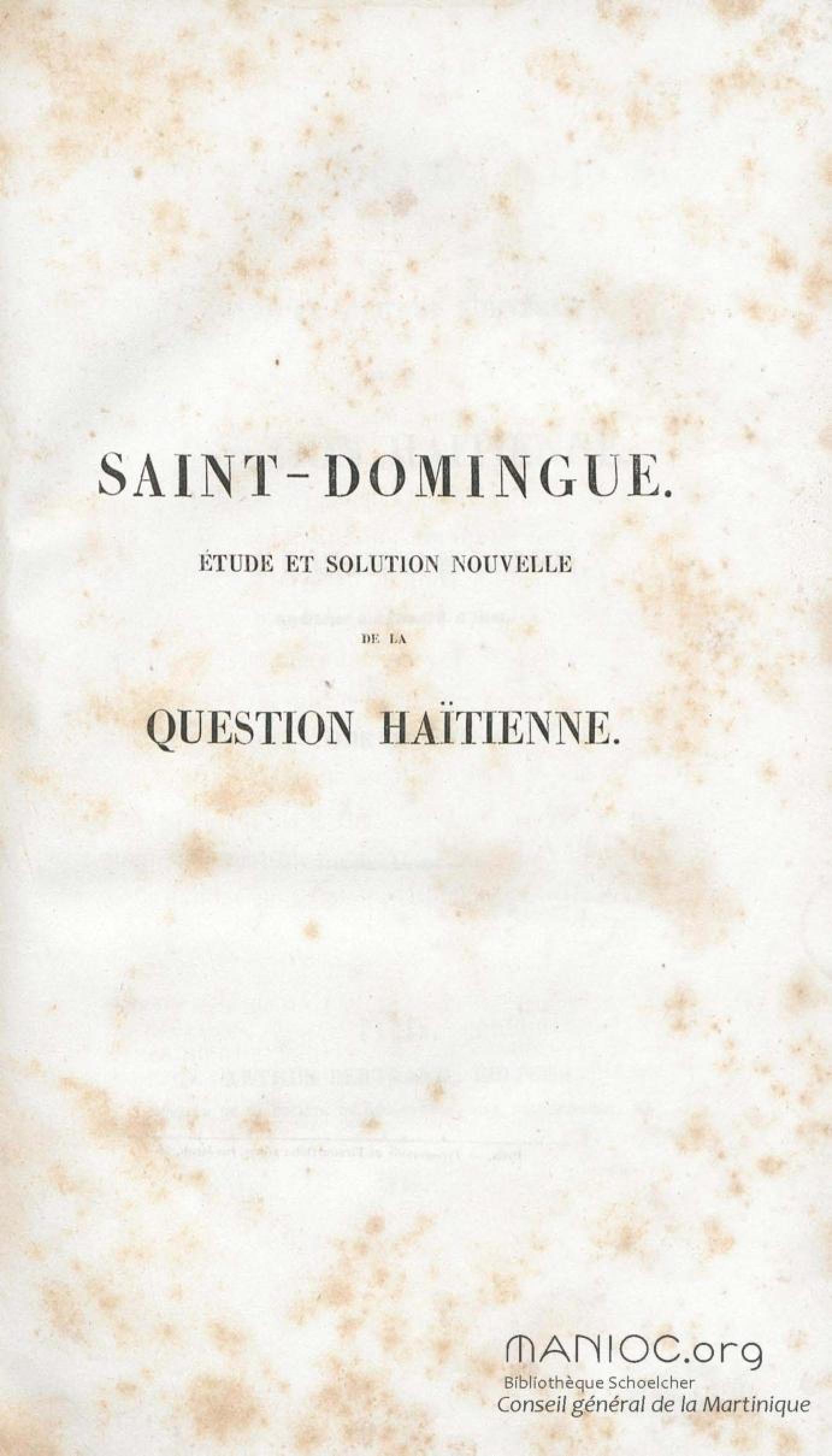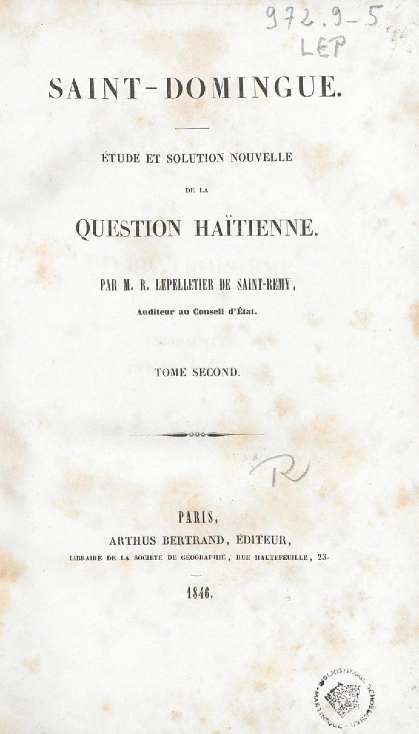 Saint-Domingue : étude et solution nouvelle de la question haïtienne. Tome 2