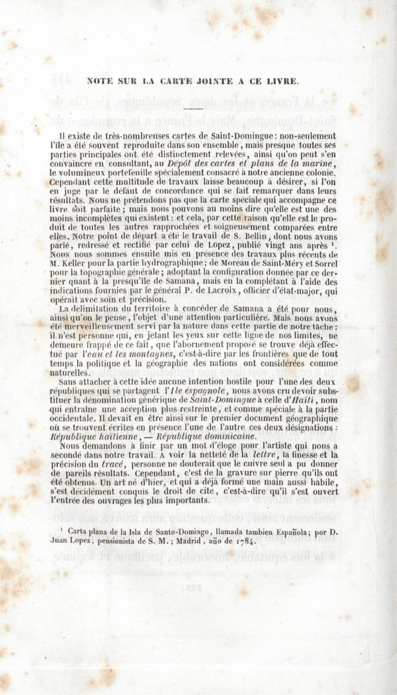 Carte de l'ile de St-Domingue dressée d'après les documents les plus modernes pour accompagner l'ouvrage de M. Lepelletirt de St-Rémy. |