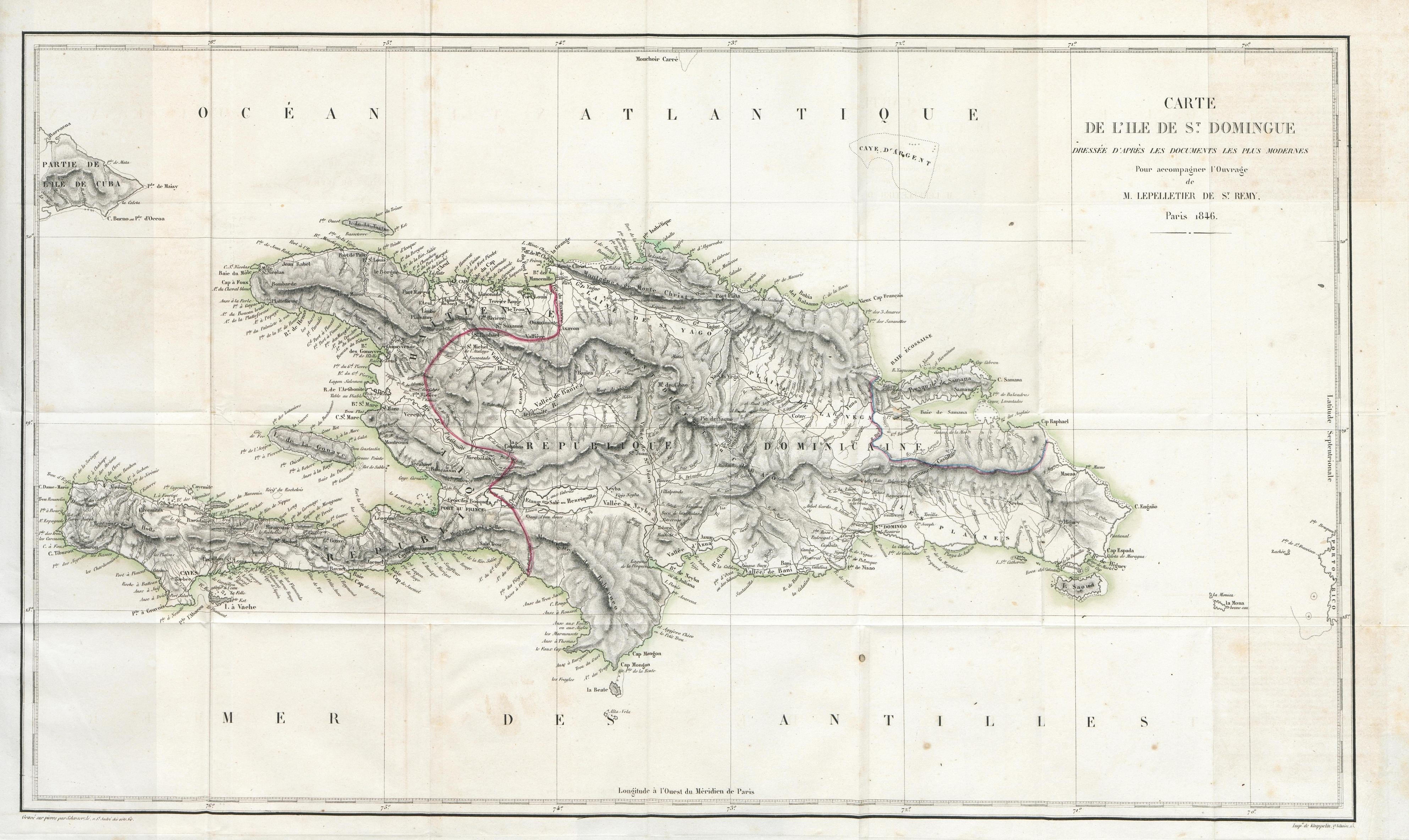 Carte de l'ile de St-Domingue dressée d'après les documents les plus modernes pour accompagner l'ouvrage de M. Lepelletirt de St-Rémy.