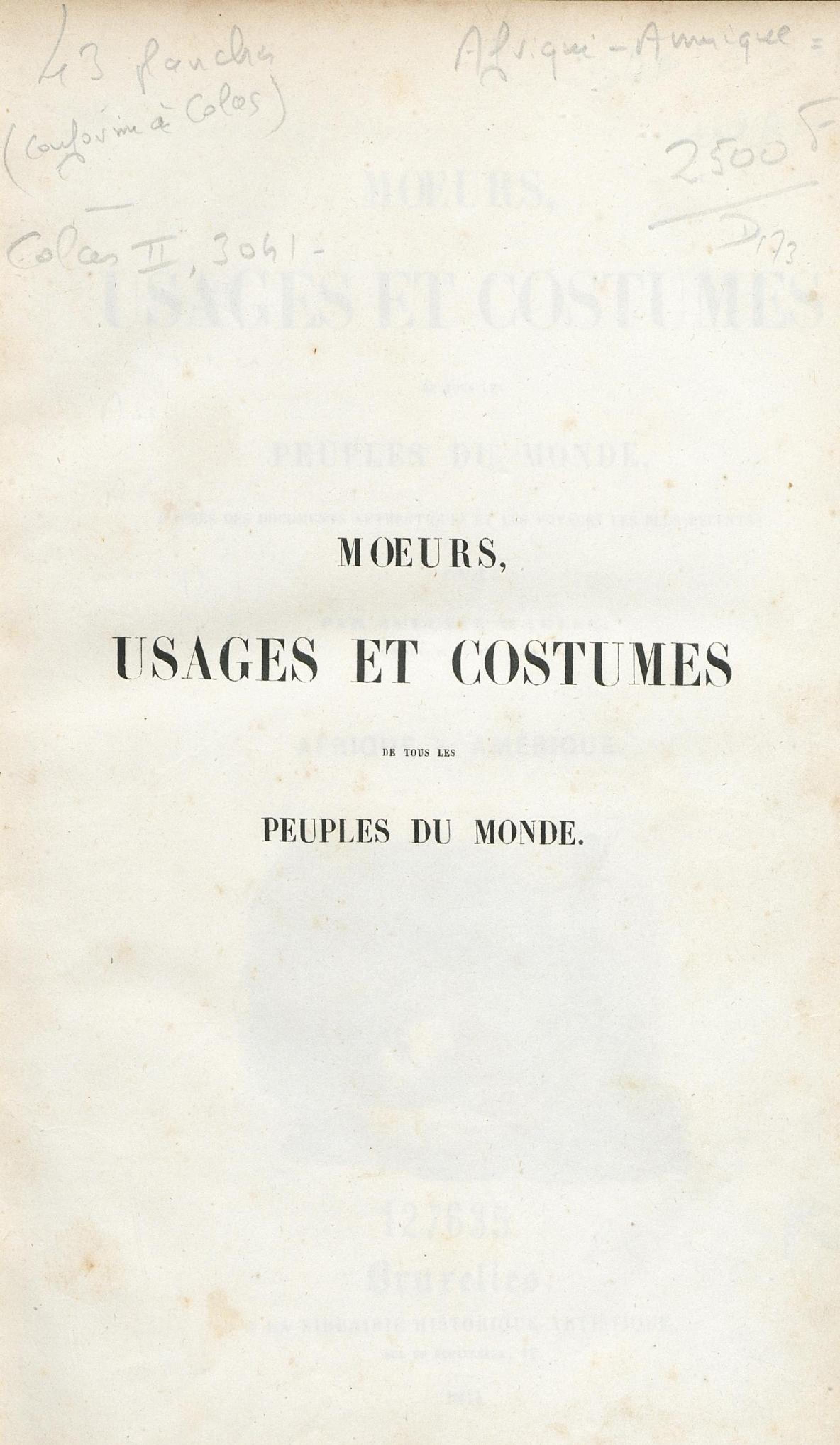 - Moeurs, usages et costumes de tous les peuples du monde, d'après des documents authentiques et les voyages les plus récents : Afrique, Amérique