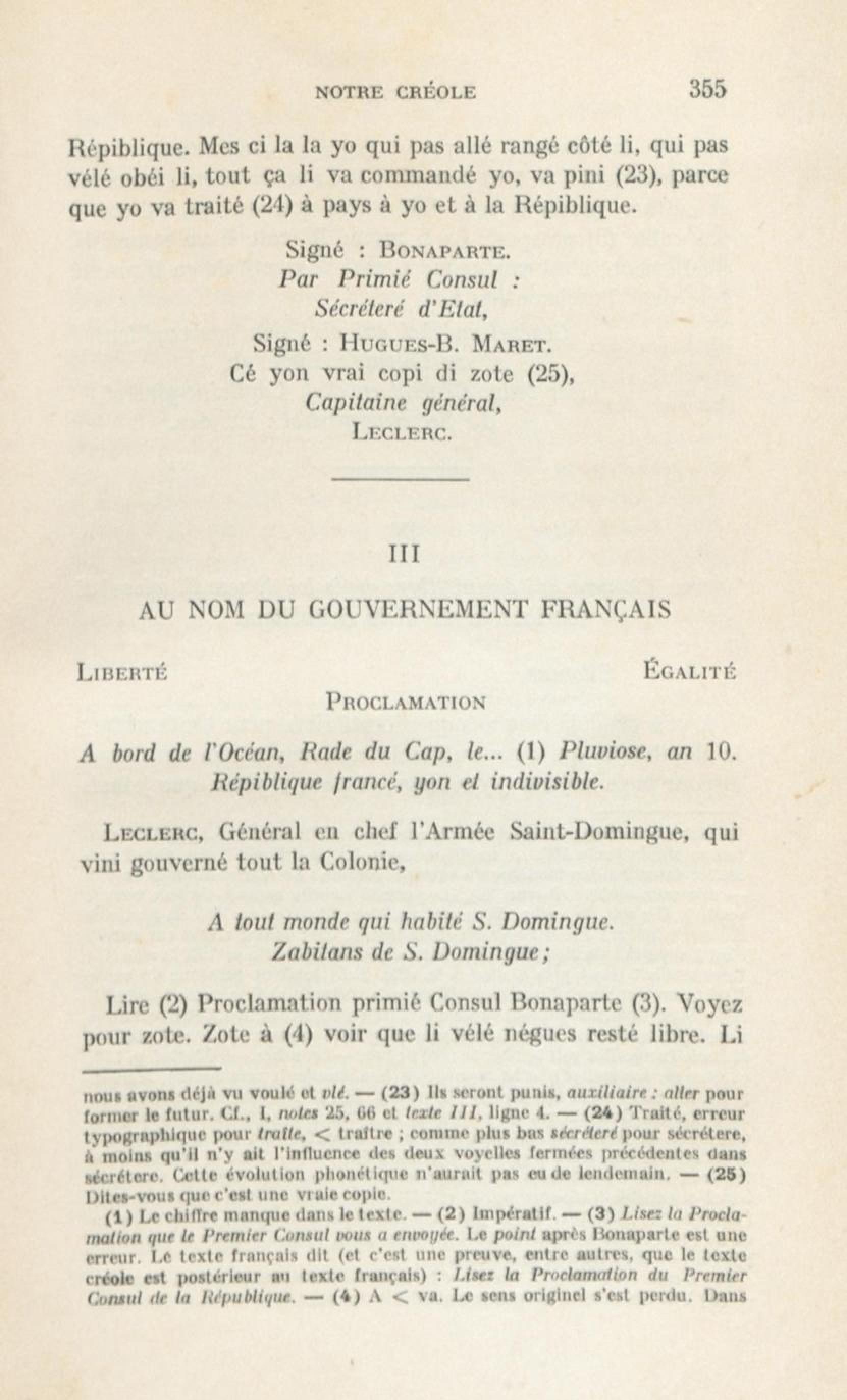 [Proclamation du capitaine-général Leclerc]