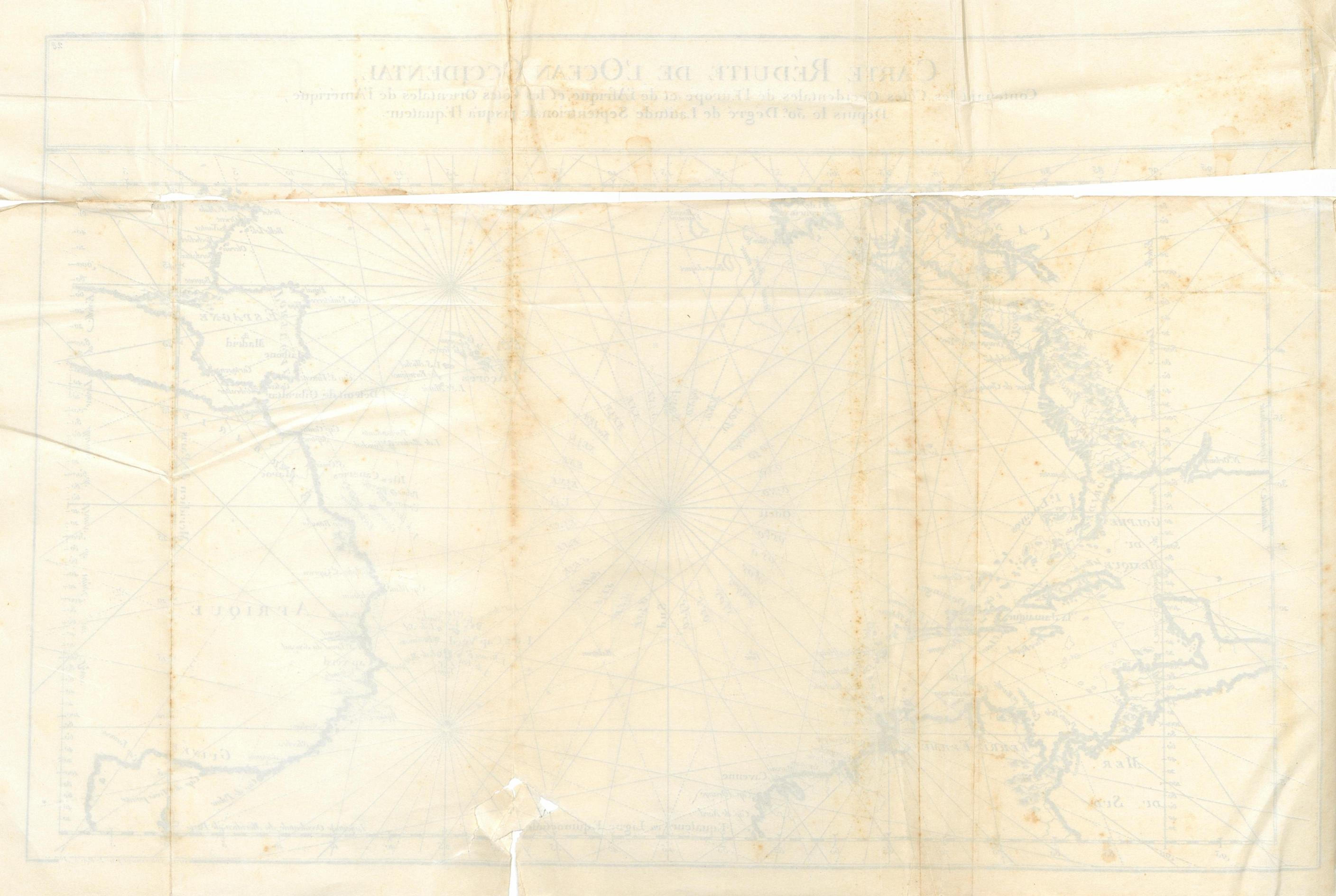 [Carte réduite de l'Océan Occidental contenant les côtes occidentales de l'Europe et de l'Afrique et les côtes orientales de l'Amérique, depuis le 50e degré de latitude septentrionale jusqu'à l'Equateur] |
