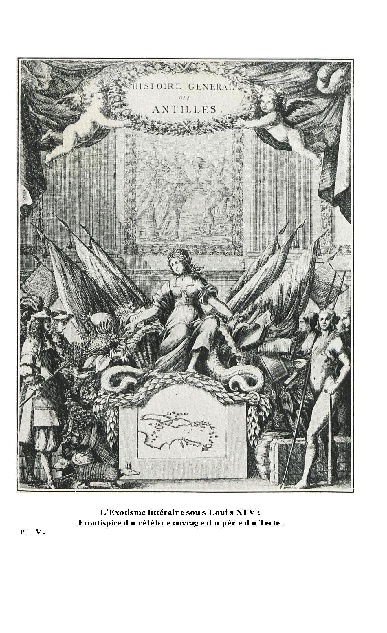 L'exotisme littéraire sous Louis XIV : frontispice du célèbre ouvrage du père du Tertre ( Histoire générale des Antilles )