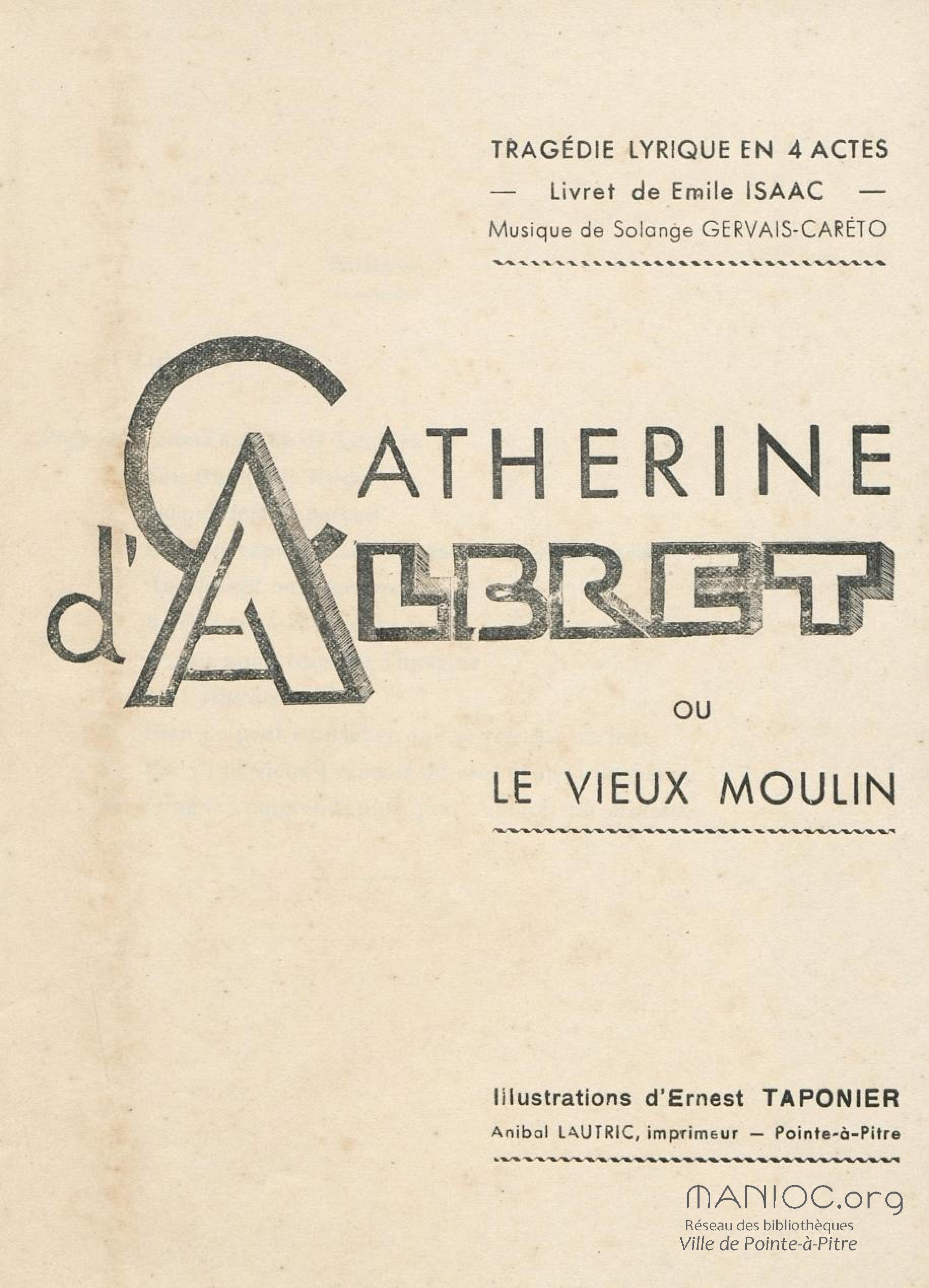 - Catherine d'Albret ou Le vieux moulin : tragédie lyrique en 4 actes