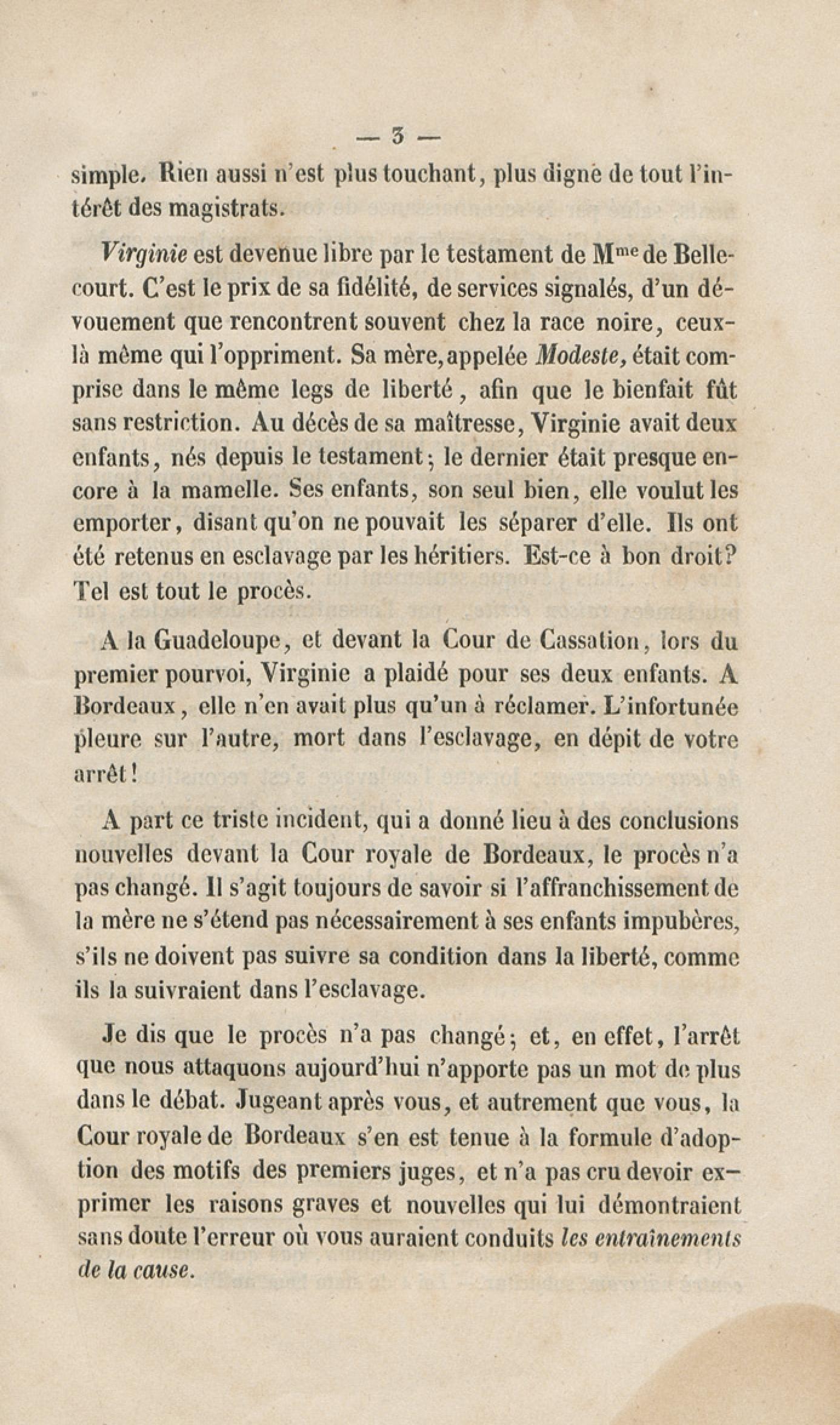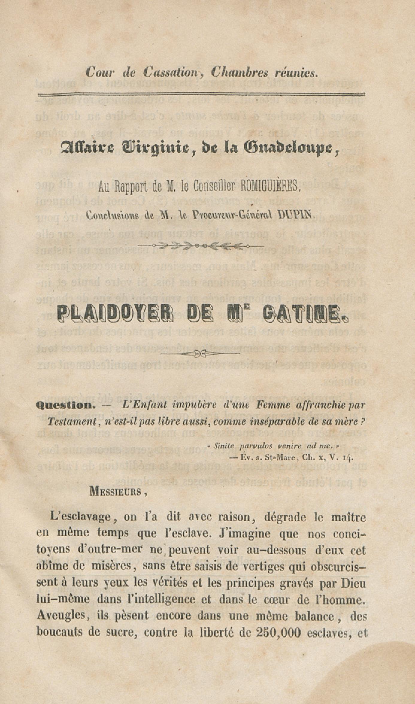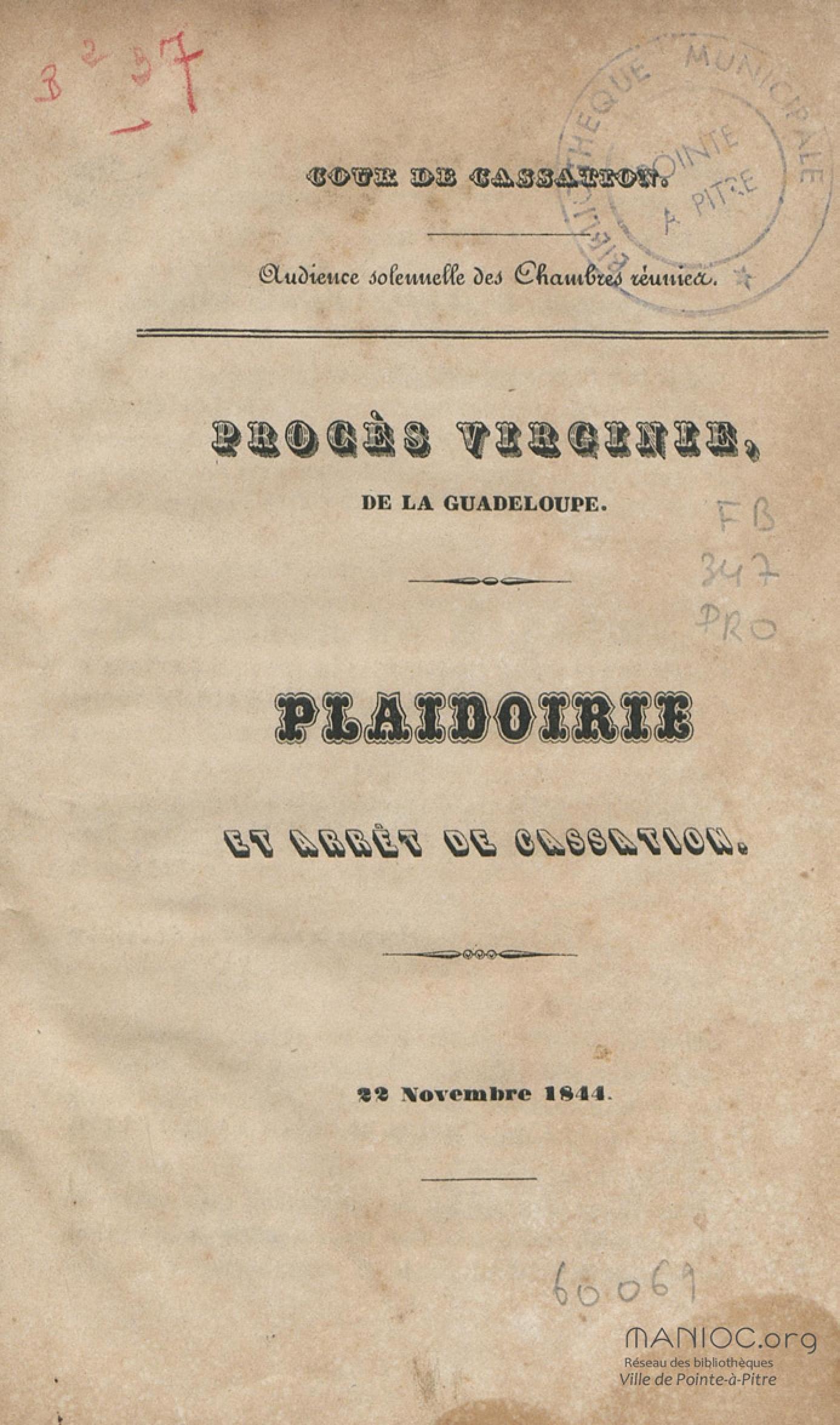 - Procès Virginie, de la Guadeloupe : plaidoirie et arrêt de cassation : 22 novembre 1844