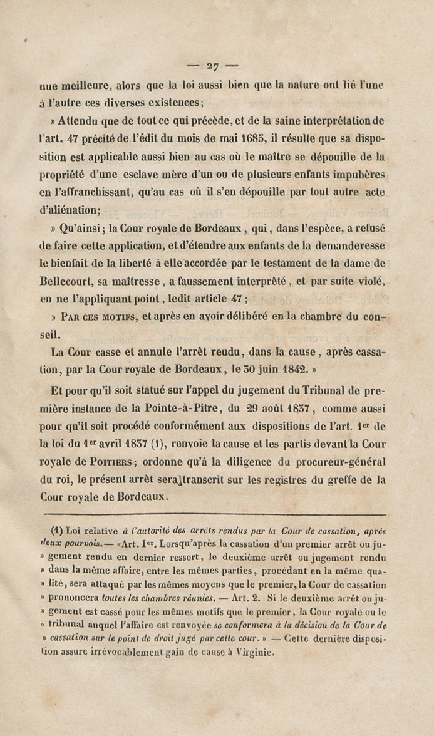 Procès Virginie, de la Guadeloupe : plaidoirie et arrêt de cassation : 22 novembre 1844