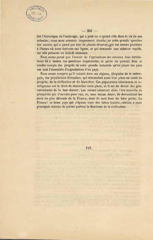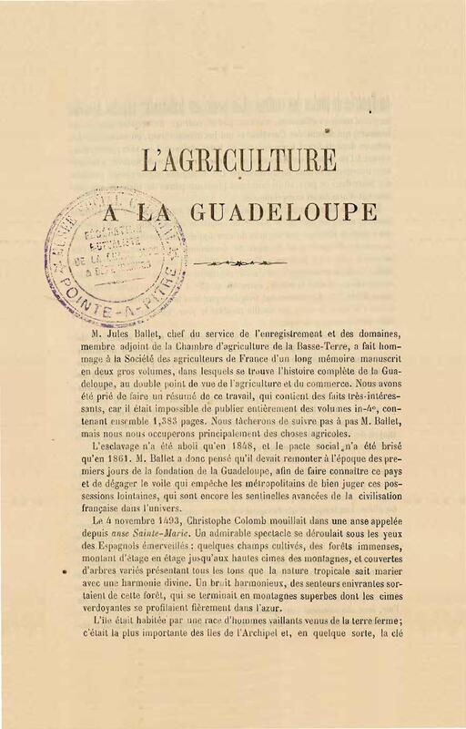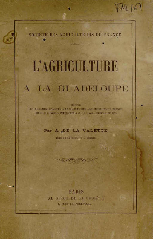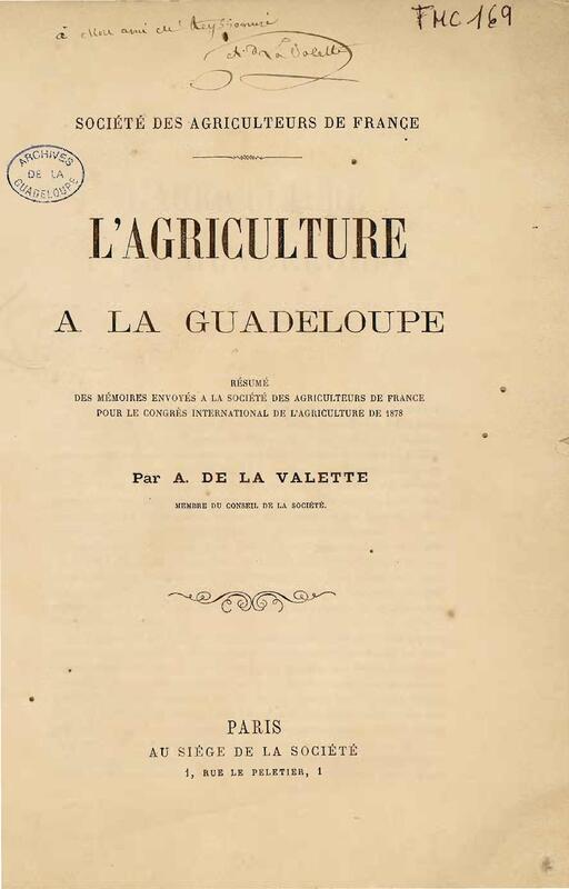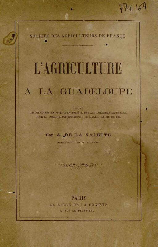 - L'agriculture à la Guadeloupe : résumé des mémoires envoyés à la Société des agriculteurs de France pour le congrès international de l'agriculture de 1878
