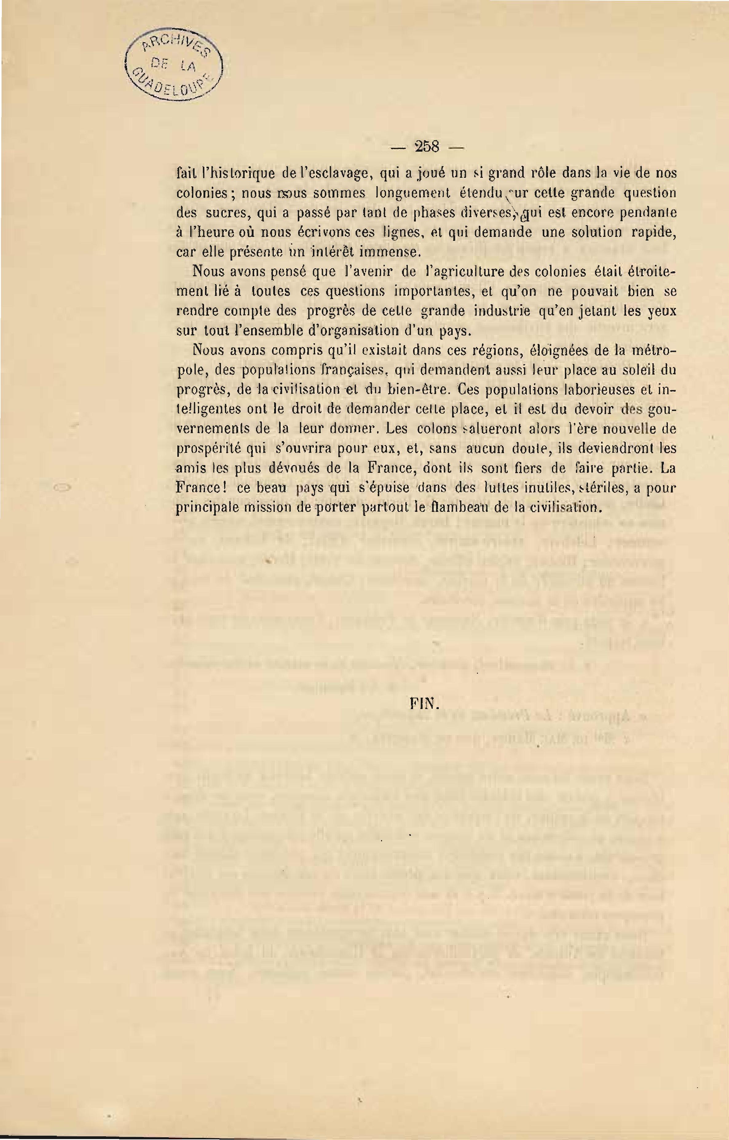 L'agriculture à la Guadeloupe : résumé des mémoires envoyés à la Société des agriculteurs de France pour le congrès international de l'agriculture de 1878