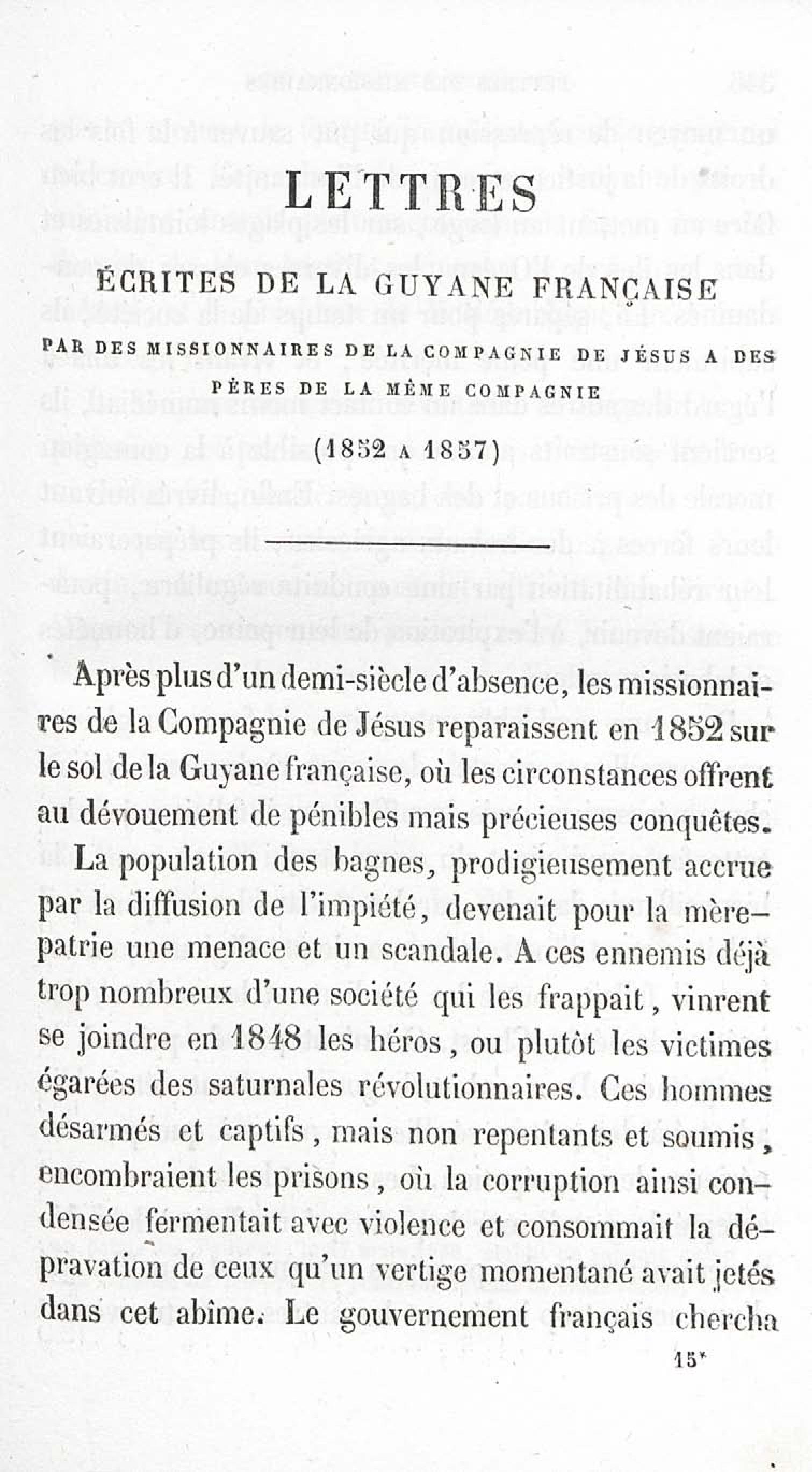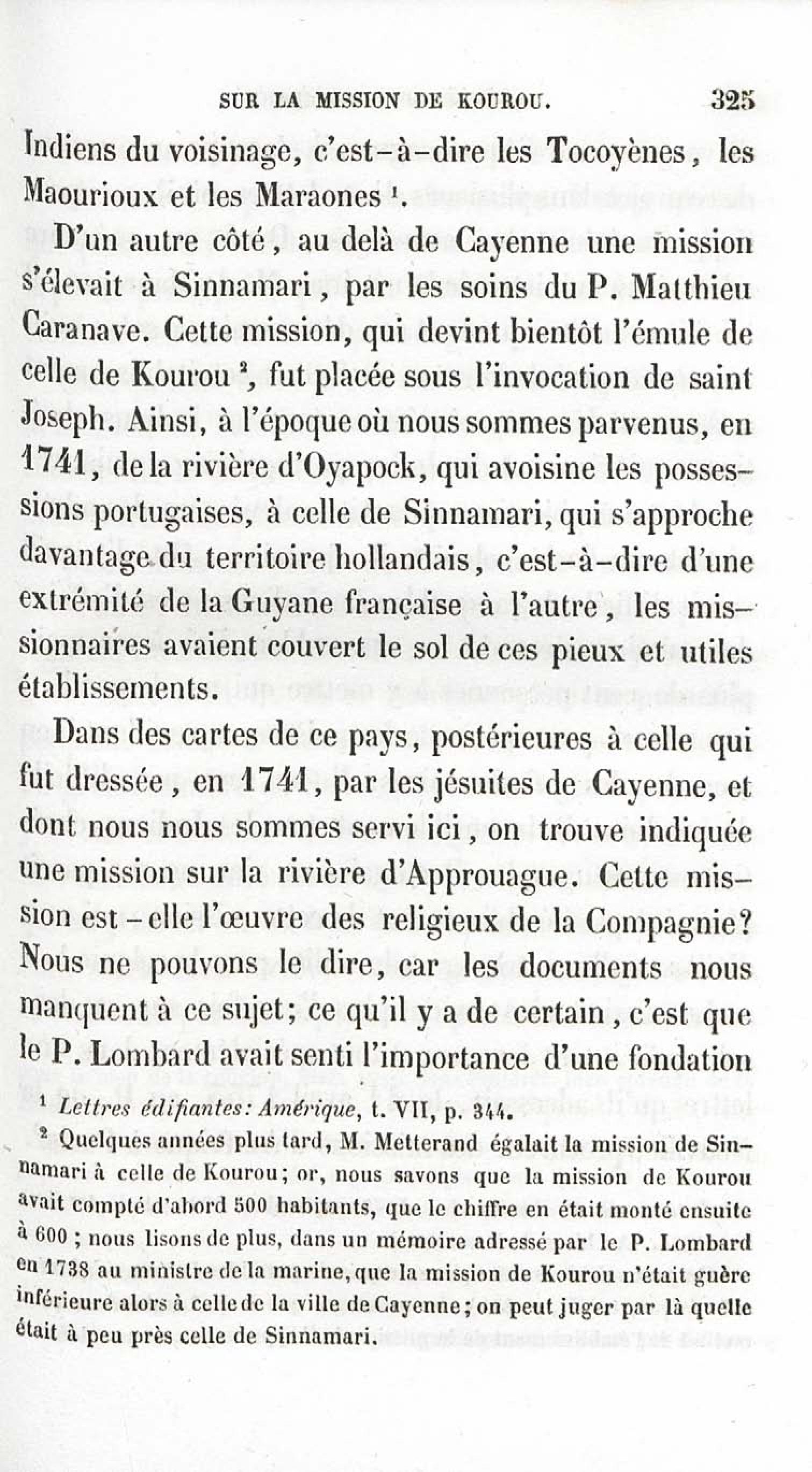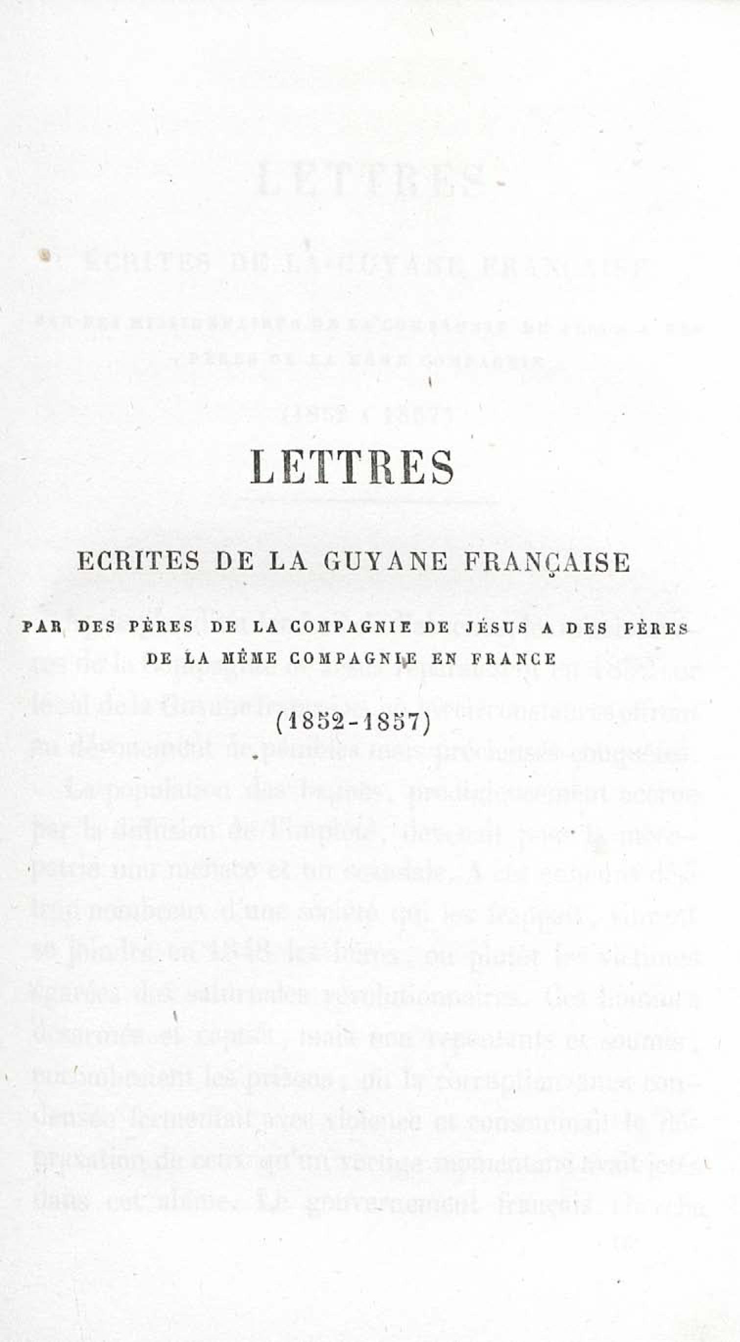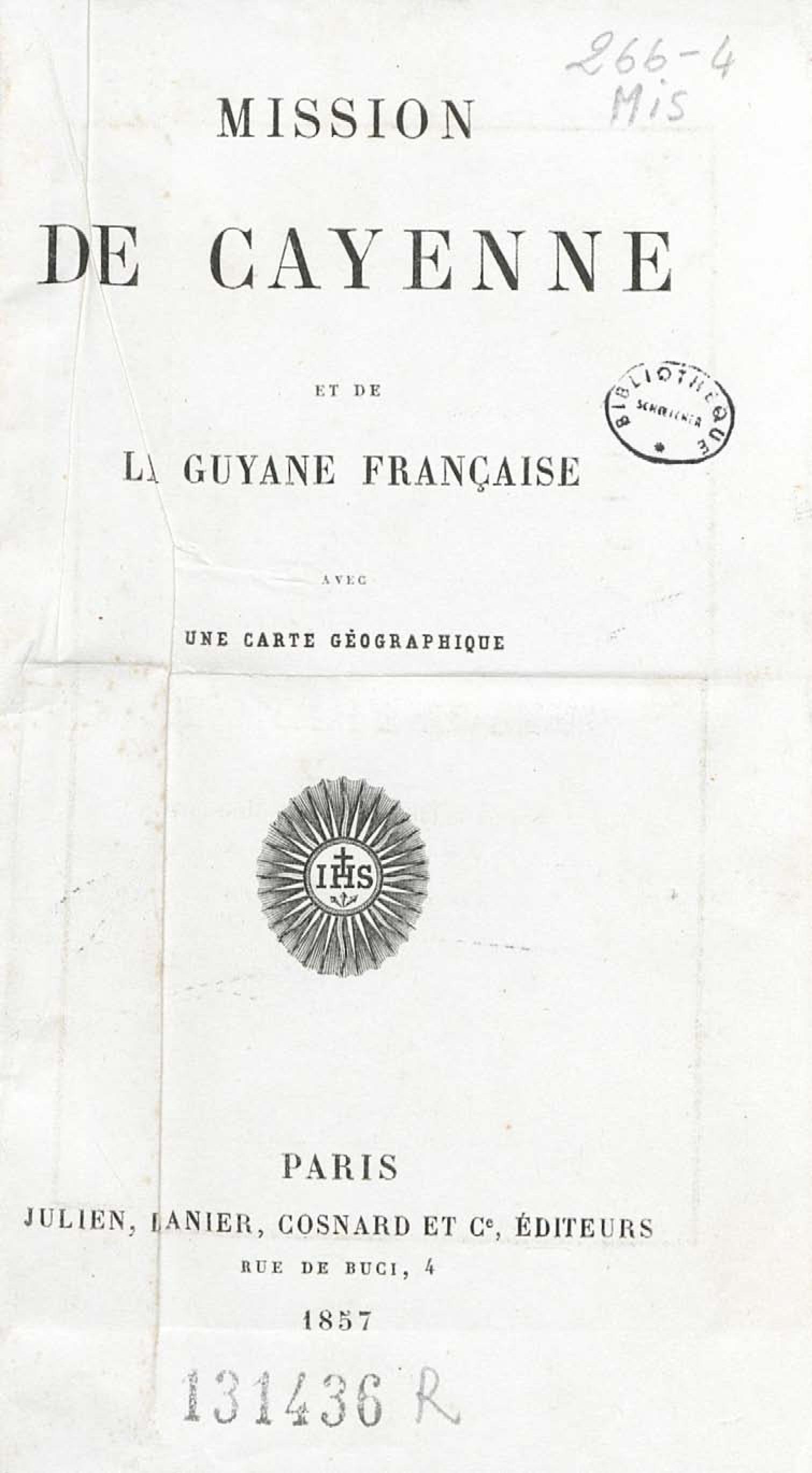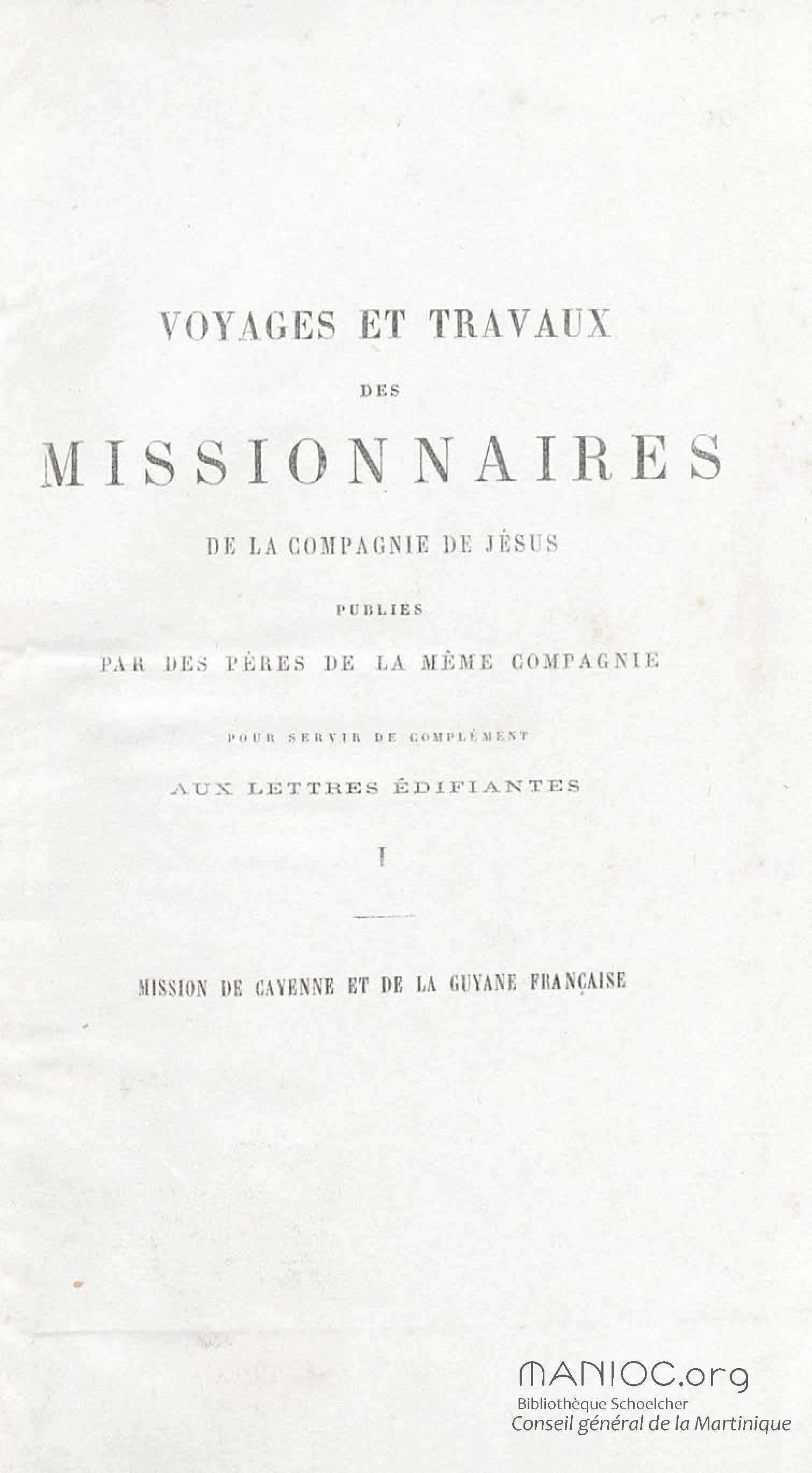 - Voyages et travaux des missionnaires de la Compagnie de Jésus pour servir de complément aux lettres édifiantes. I. Mission de Cayenne et de la Guyane française avec une carte géographique