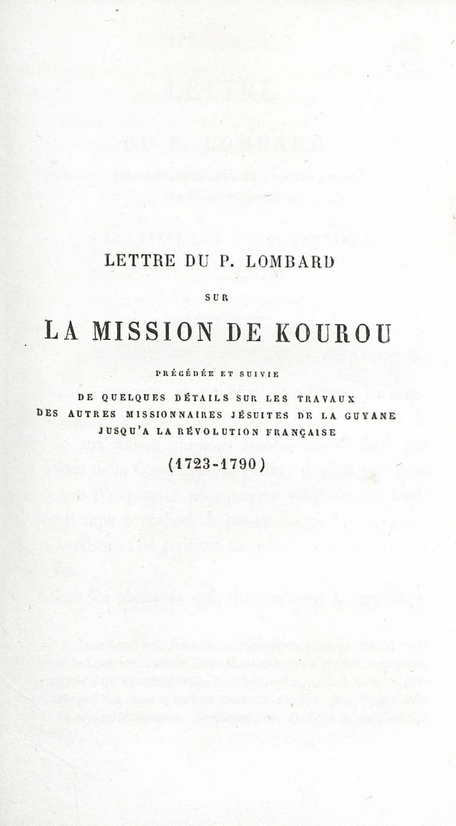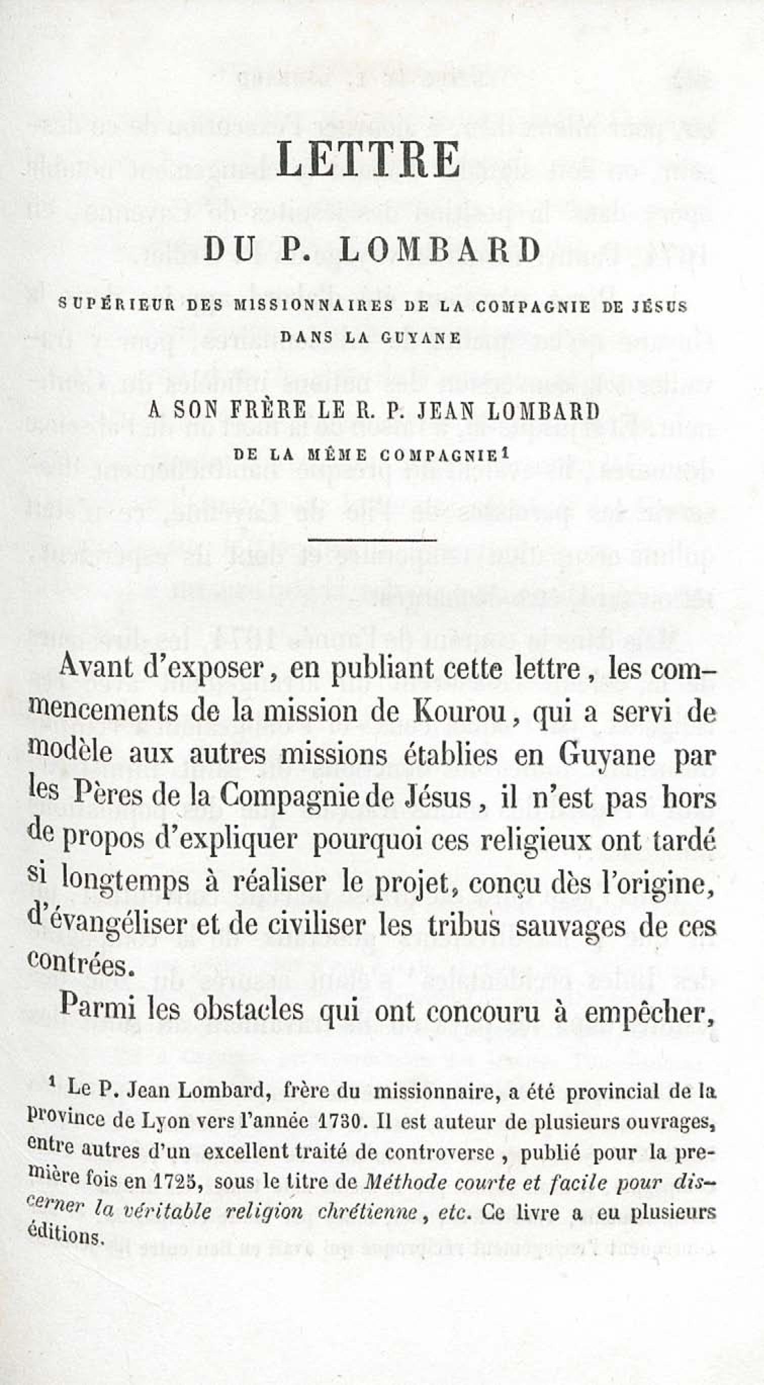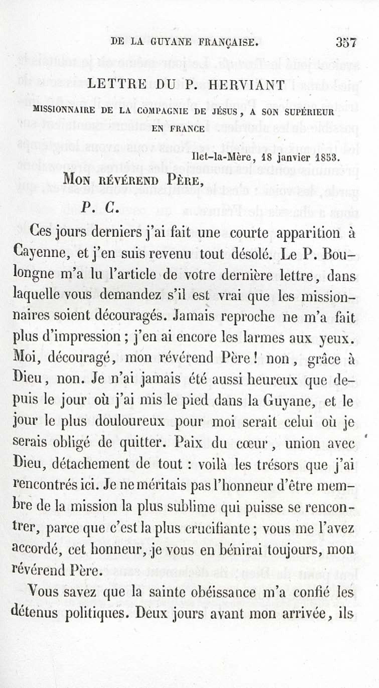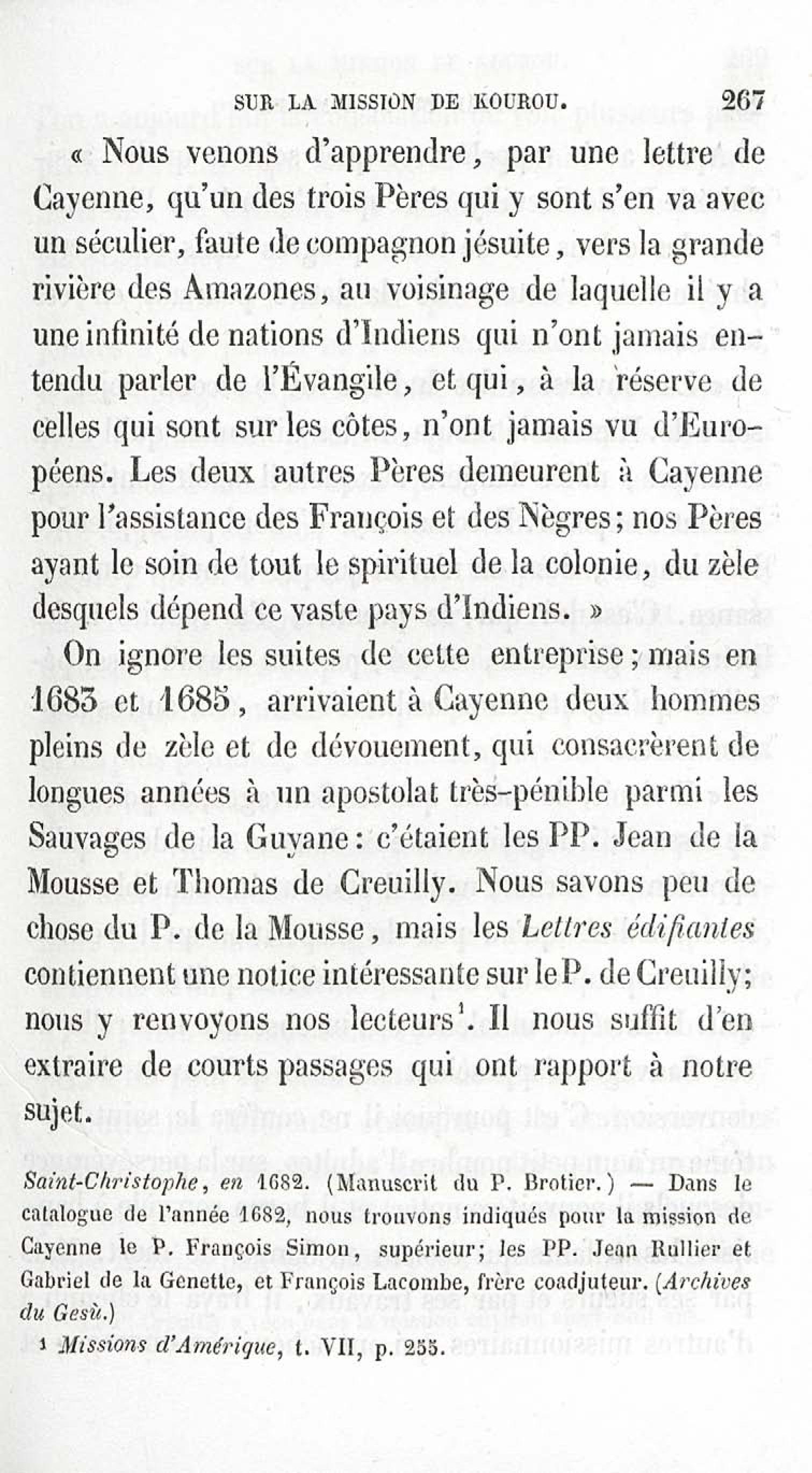 - Voyages et travaux des missionnaires de la Compagnie de Jésus pour servir de complément aux lettres édifiantes. I. Mission de Cayenne et de la Guyane française avec une carte géographique