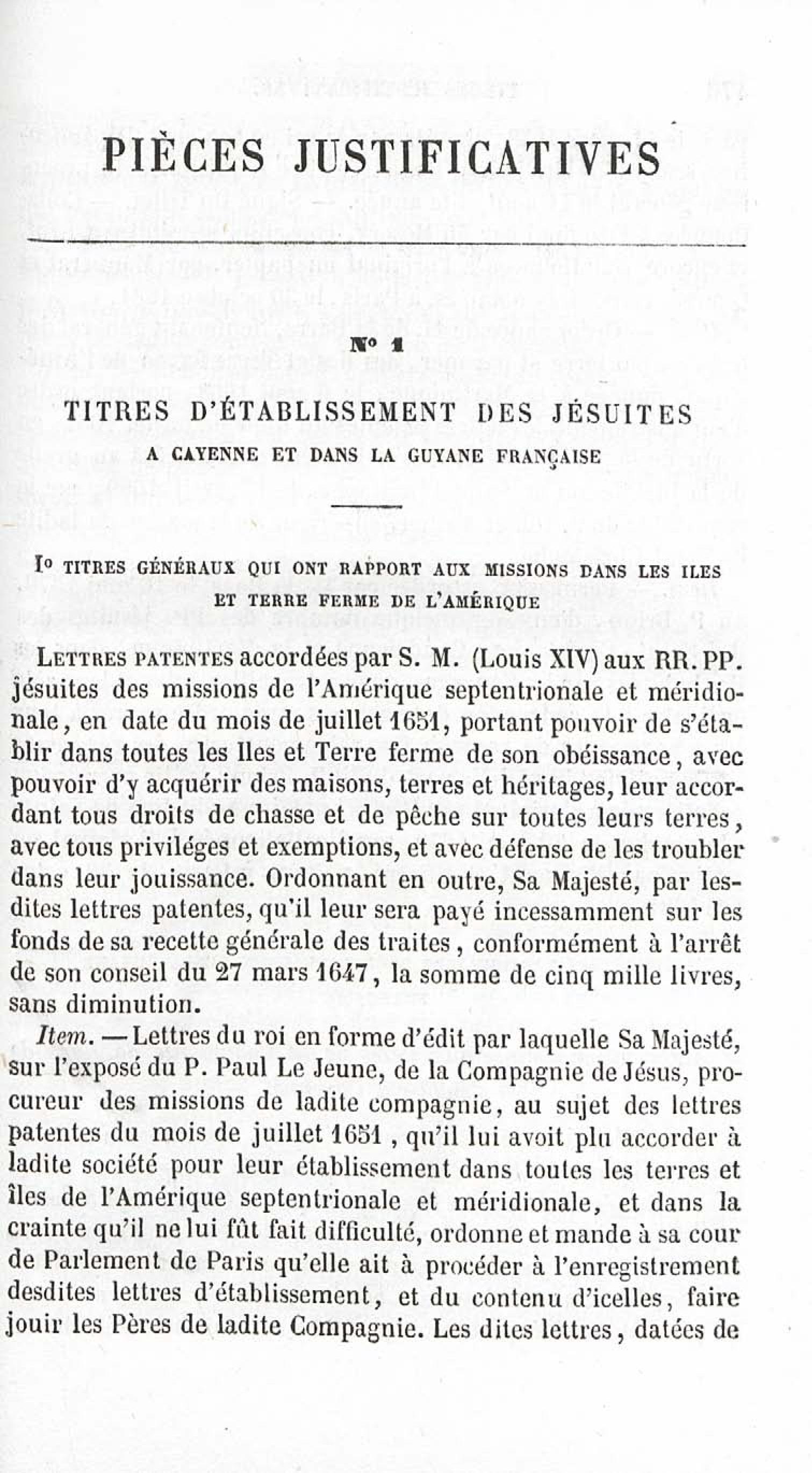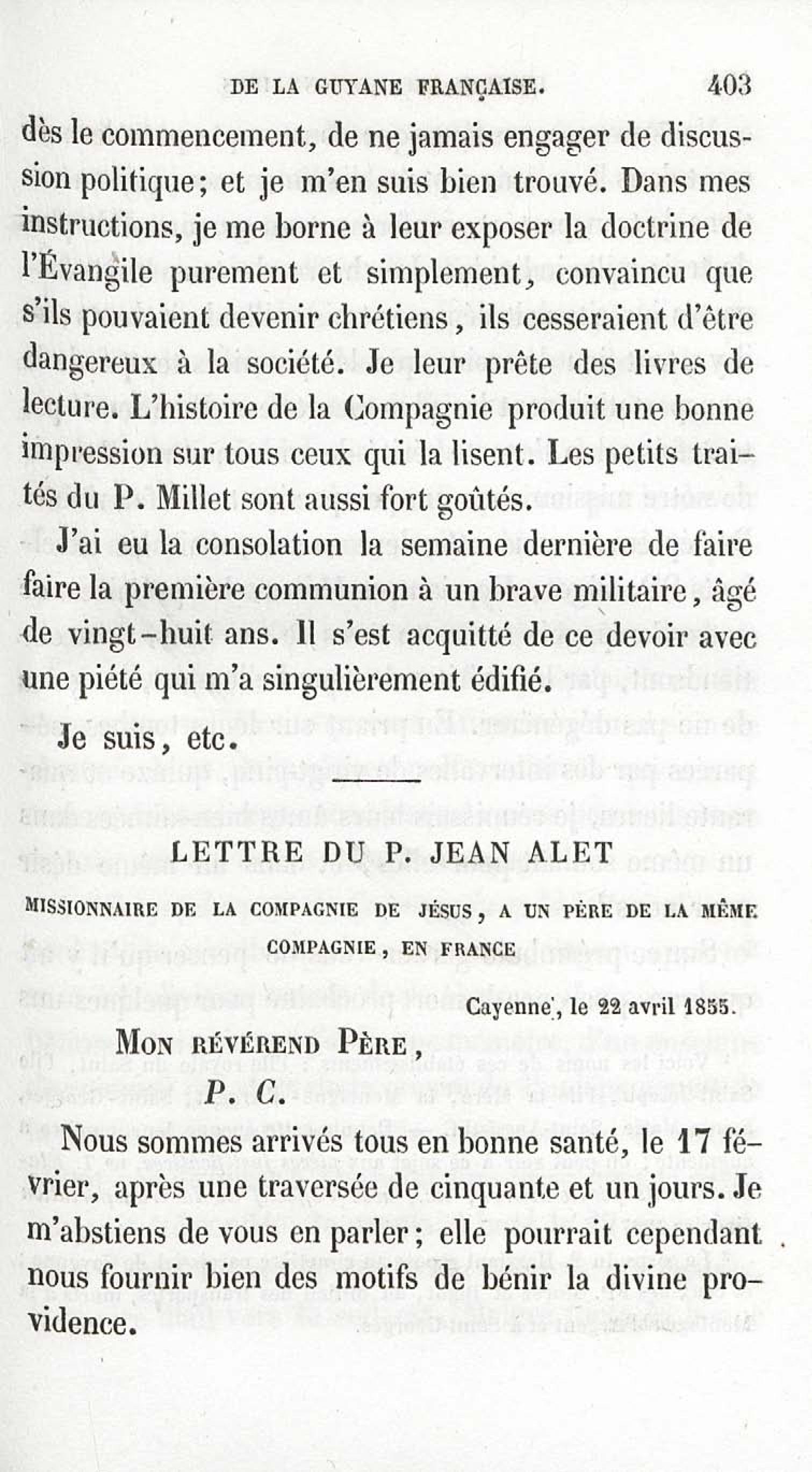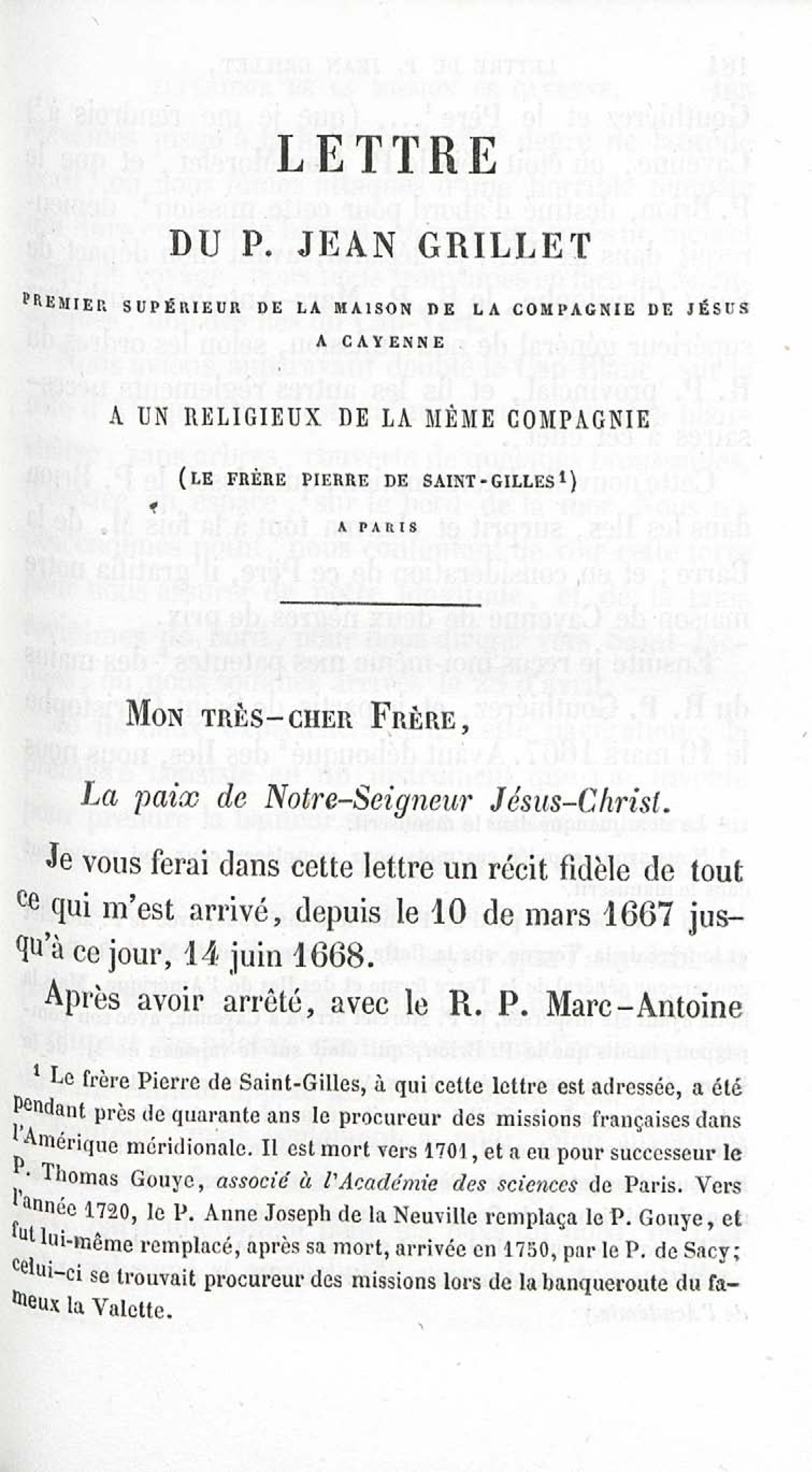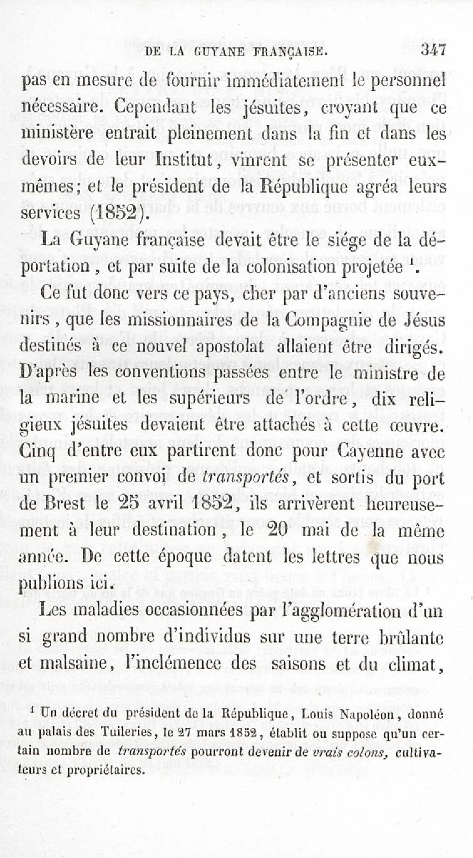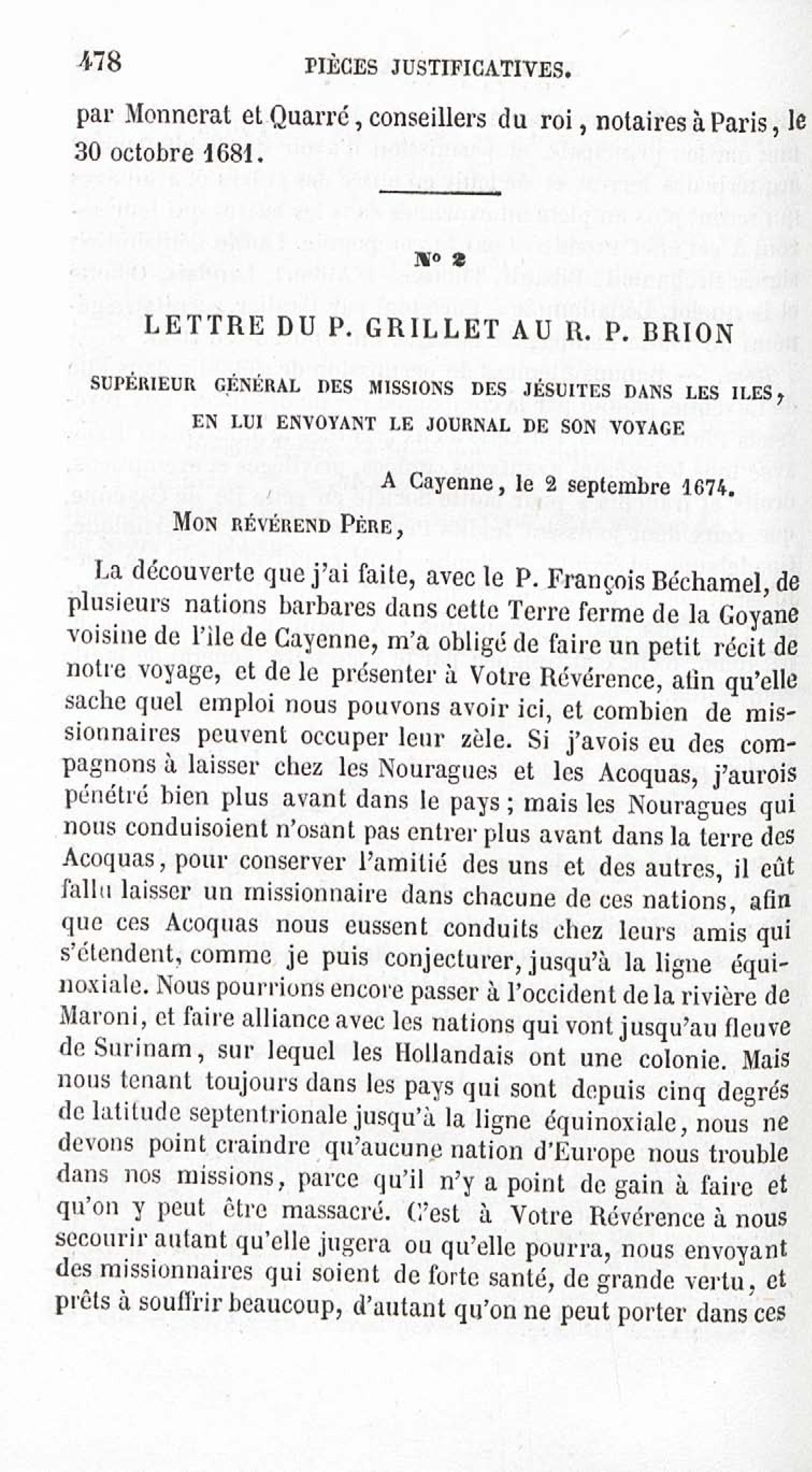 - Voyages et travaux des missionnaires de la Compagnie de Jésus pour servir de complément aux lettres édifiantes. I. Mission de Cayenne et de la Guyane française avec une carte géographique