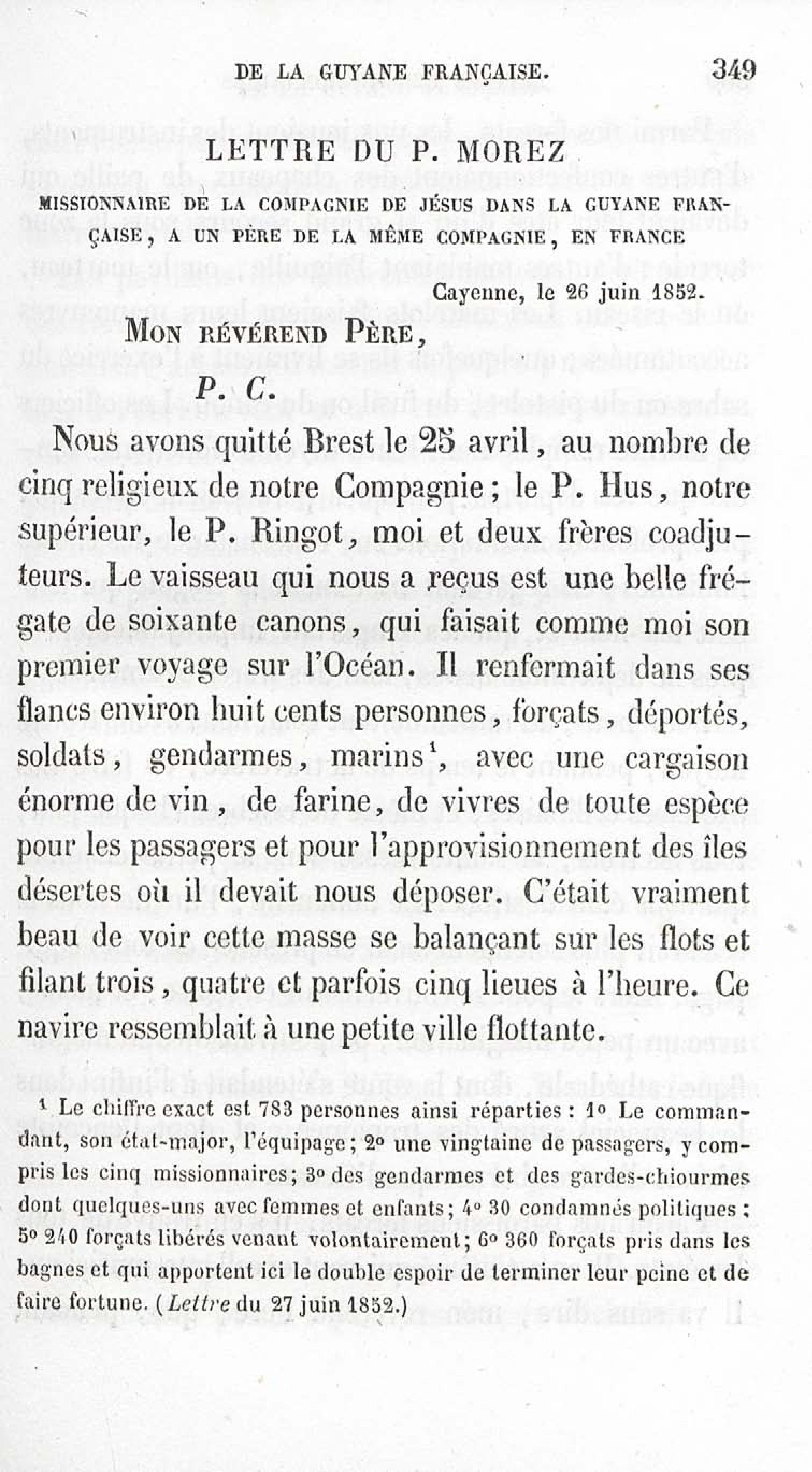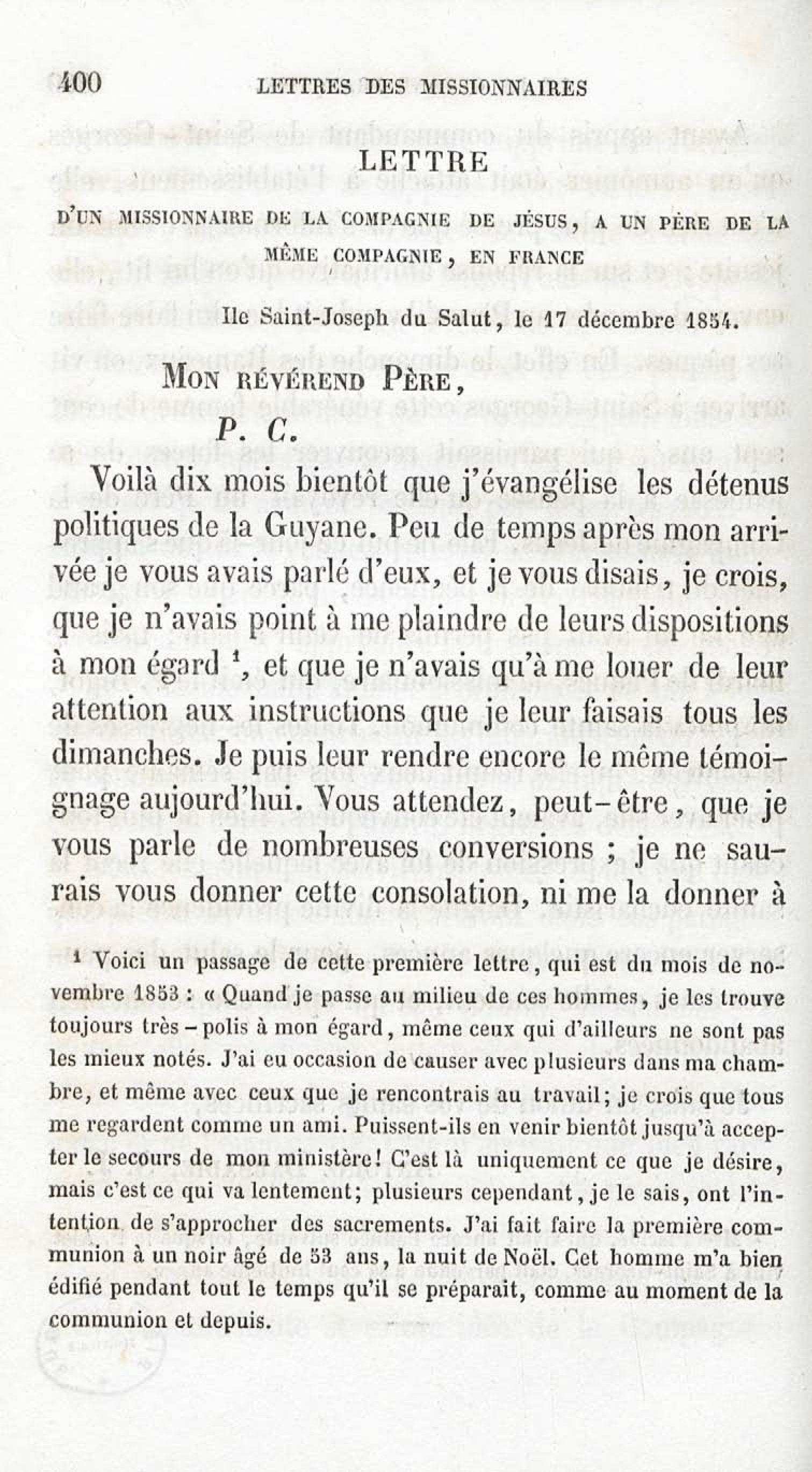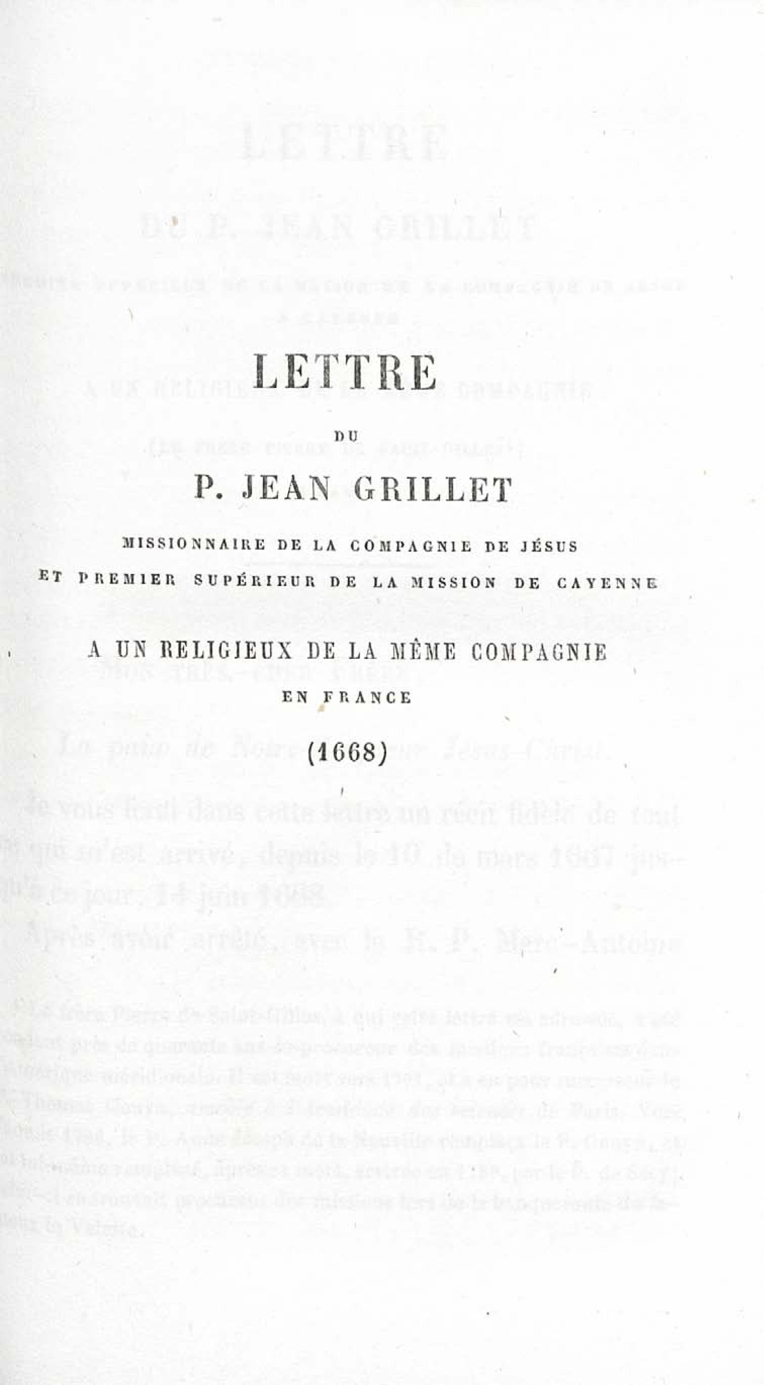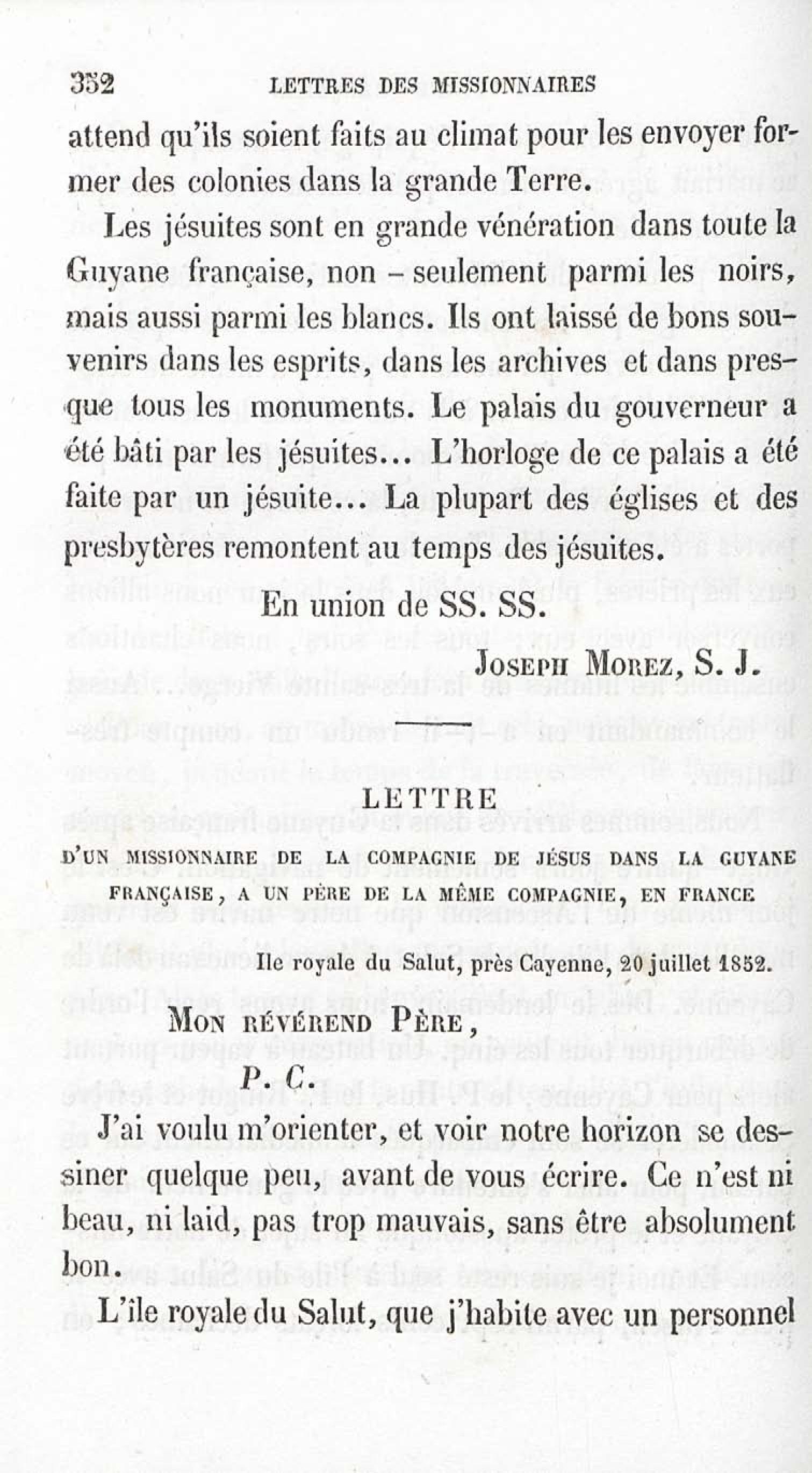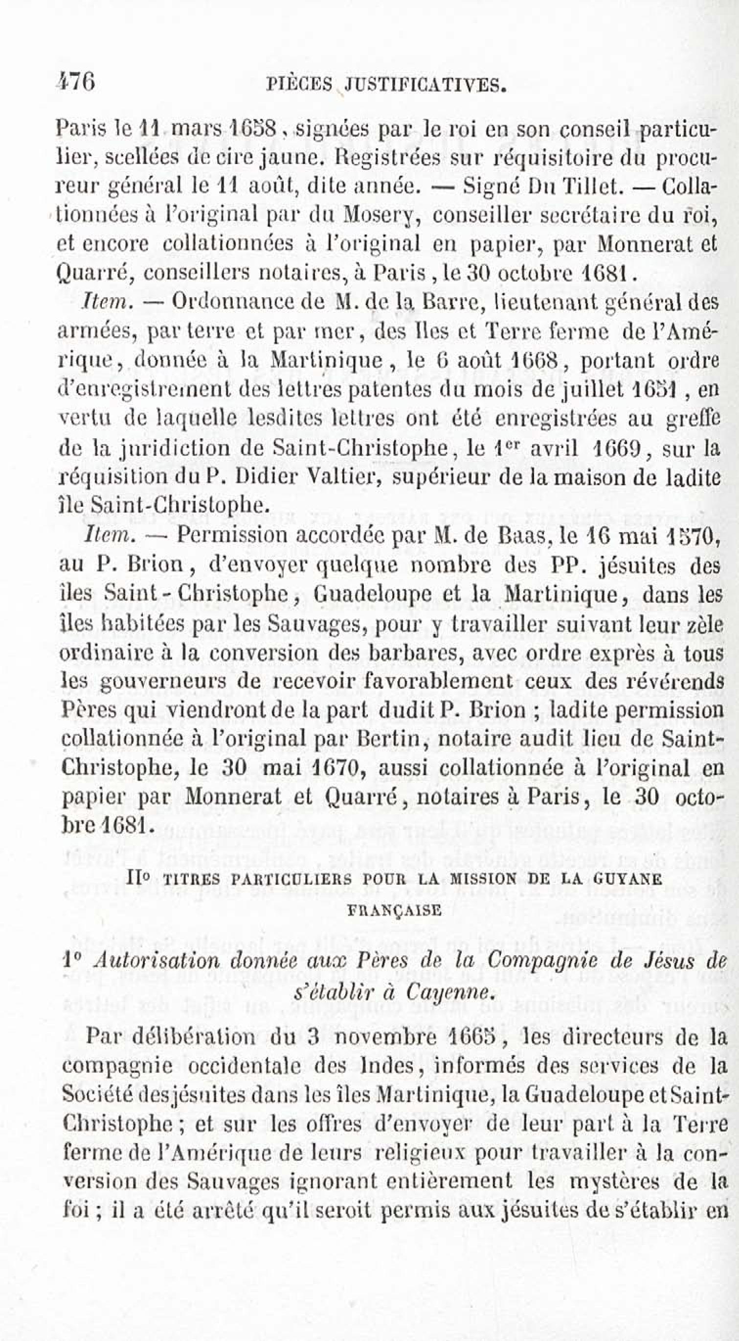 - Voyages et travaux des missionnaires de la Compagnie de Jésus pour servir de complément aux lettres édifiantes. I. Mission de Cayenne et de la Guyane française avec une carte géographique