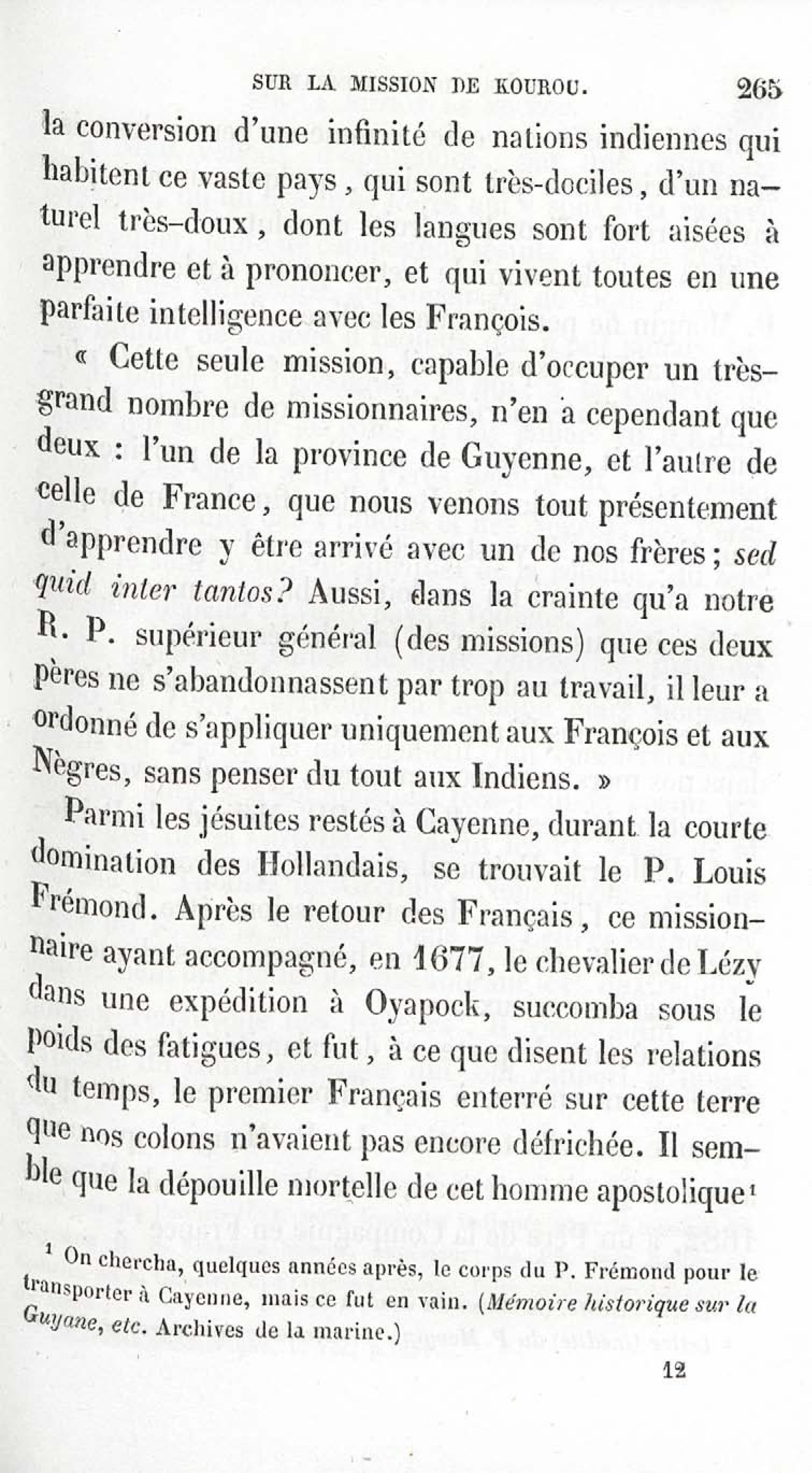 Voyages et travaux des missionnaires de la Compagnie de Jésus pour servir de complément aux lettres édifiantes. I. Mission de Cayenne et de la Guyane française avec une carte géographique