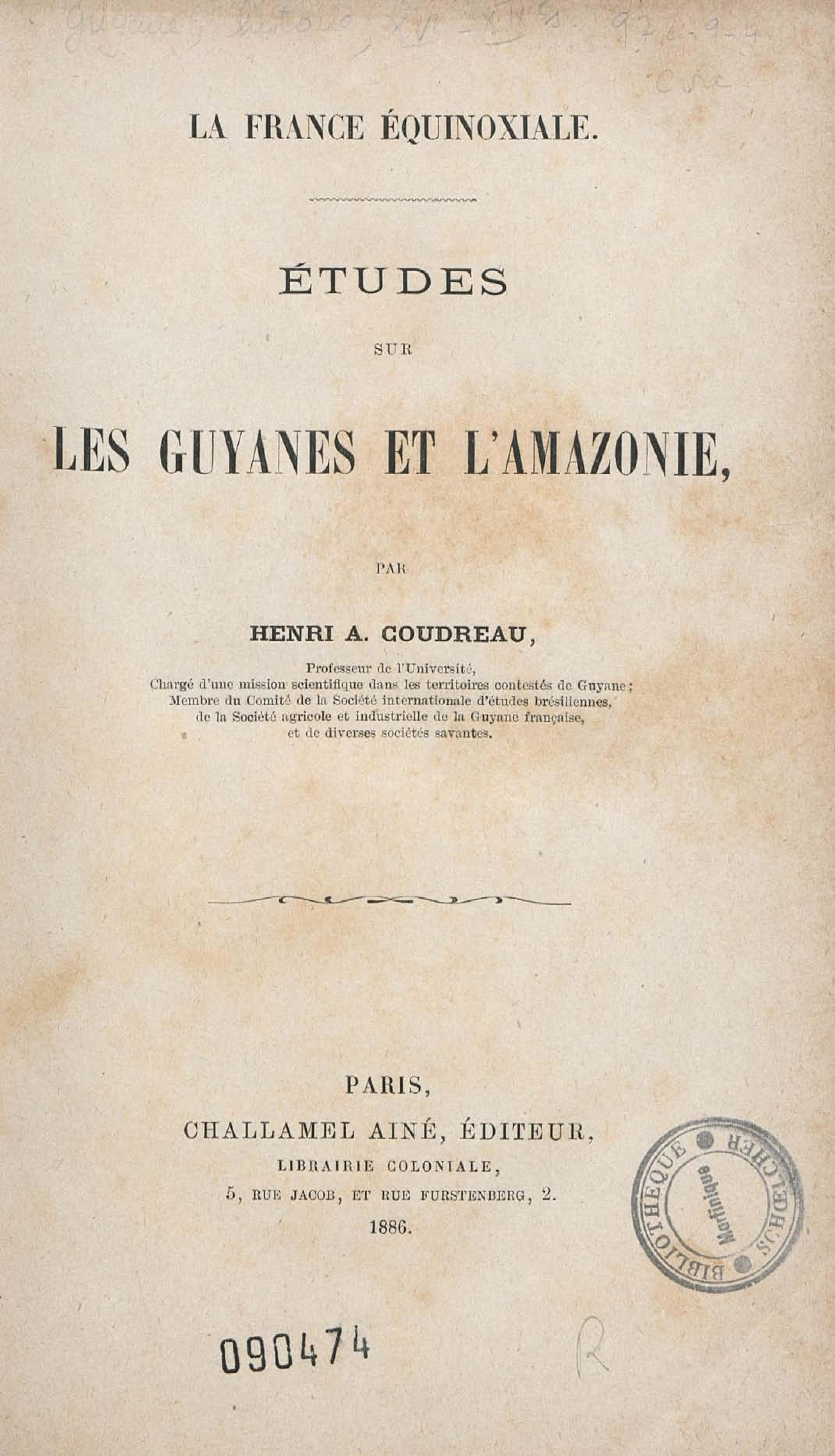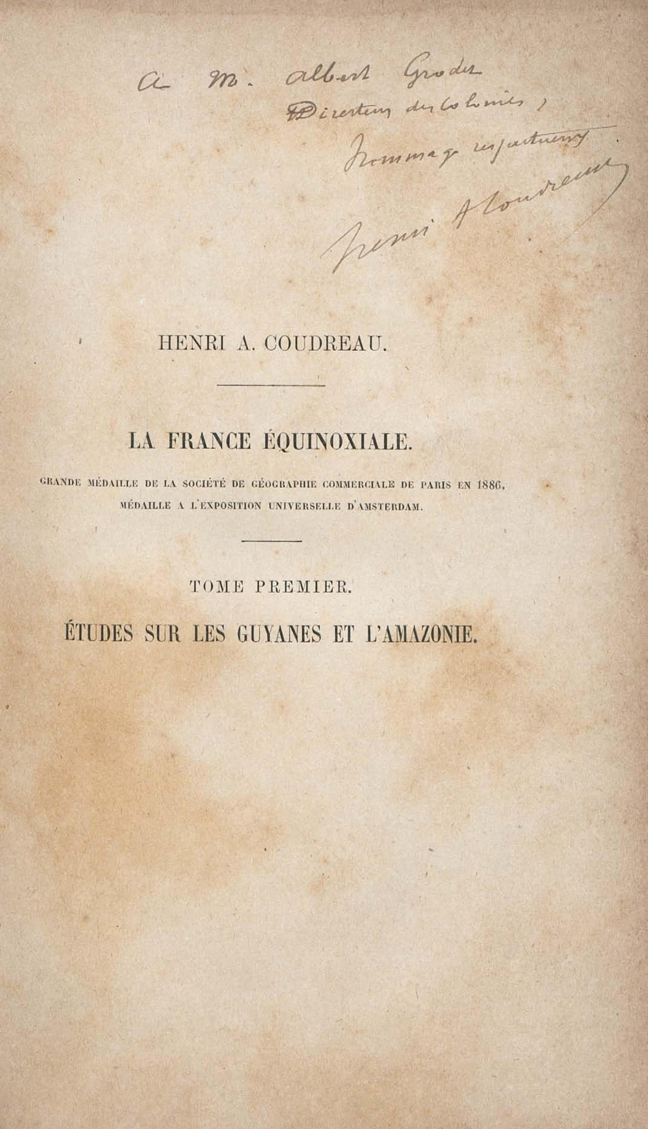 - La France équinoxiale. Tome 1, Etudes sur les Guyanes et l'Amazonie