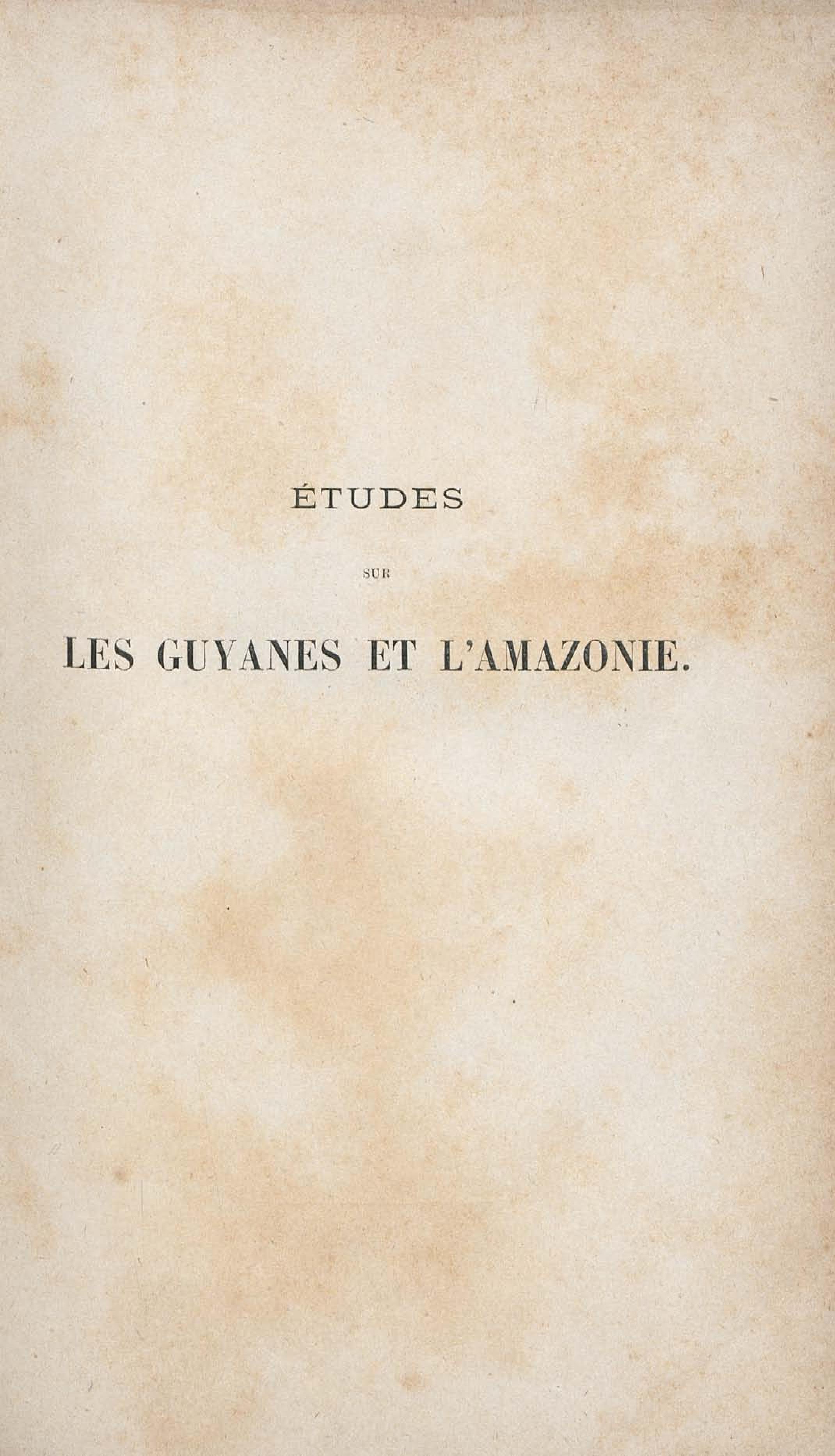 La France équinoxiale. Tome 1, Etudes sur les Guyanes et l'Amazonie