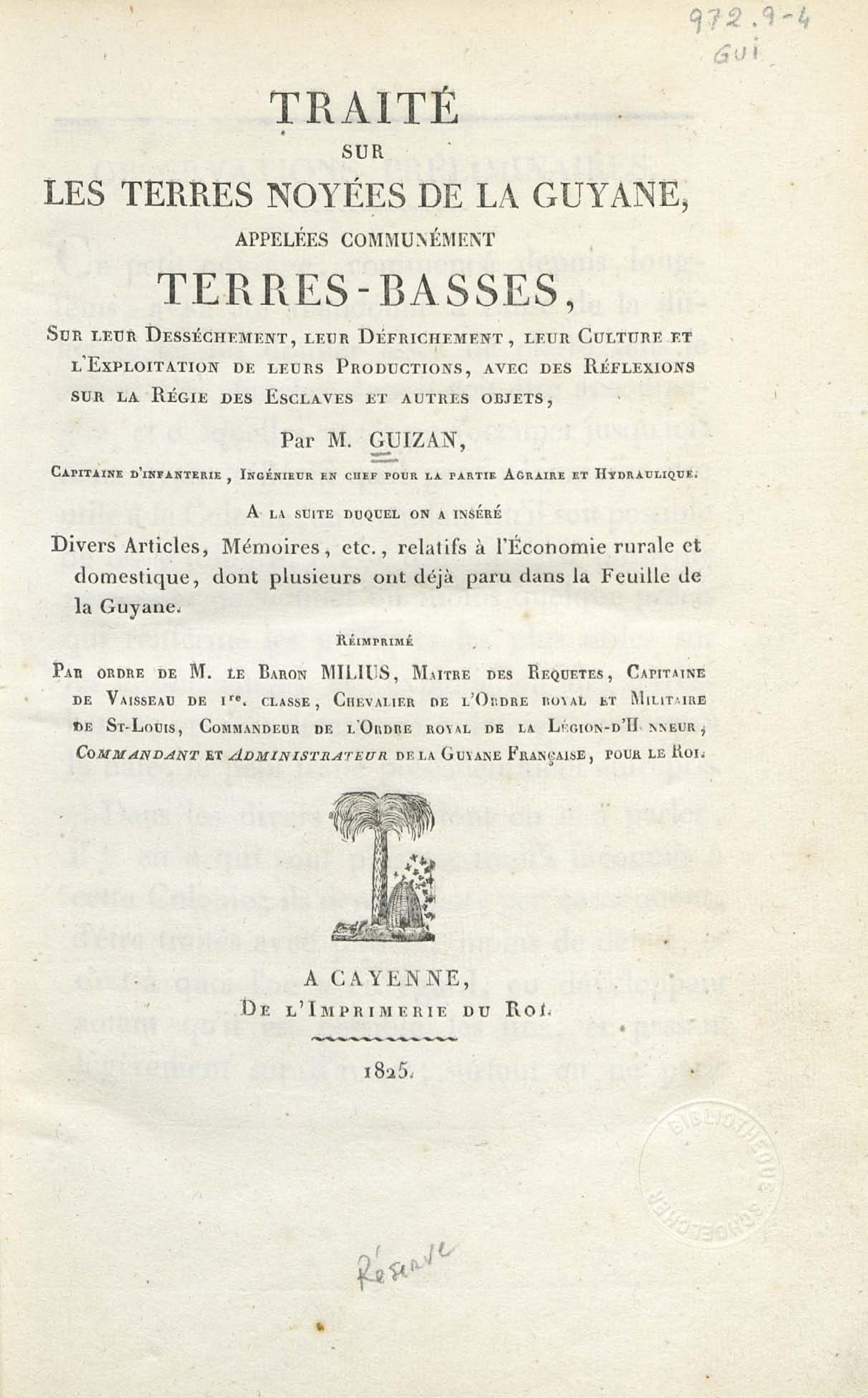 - Traité sur les terres noyées de la Guiane, appelées communément Terres-Basses, sur leur dessèchement, leur défrichement, leur culture et l'exploitation de leurs productions...
