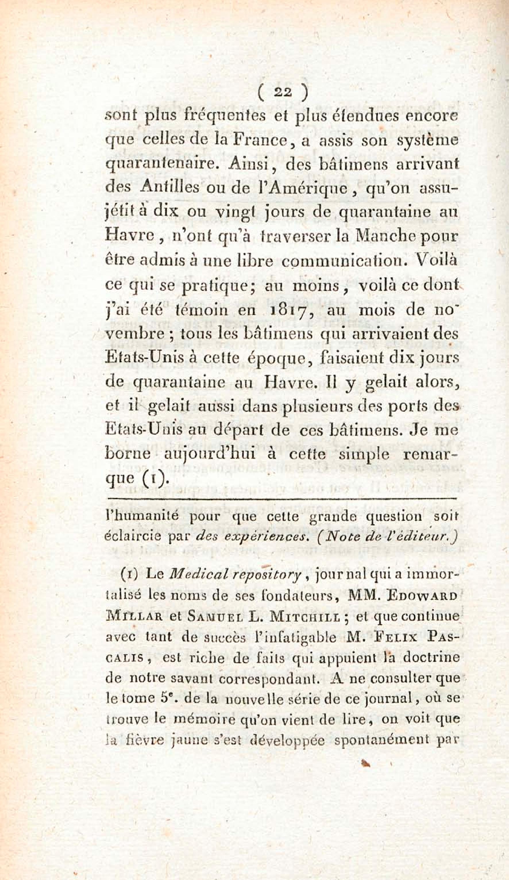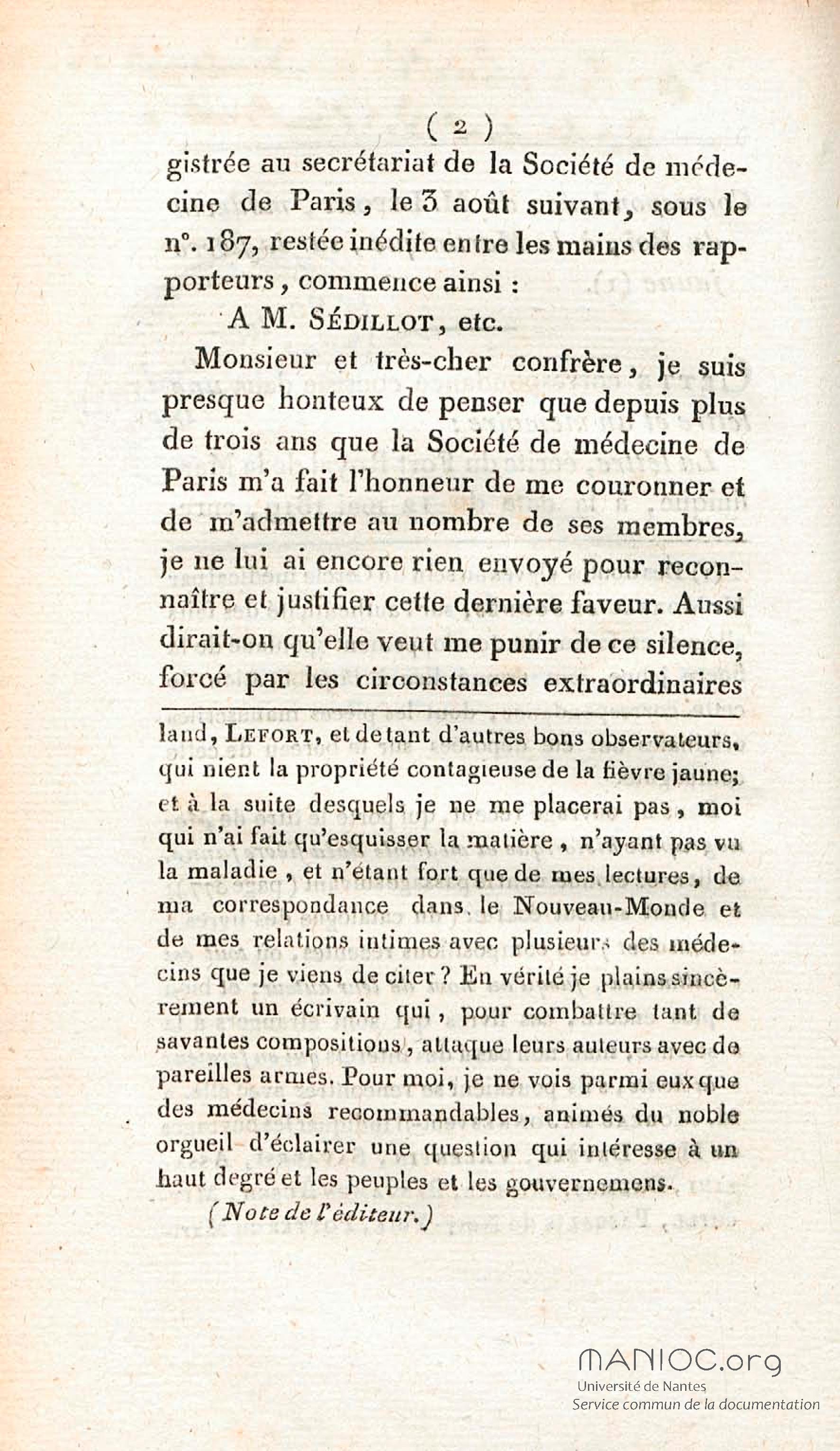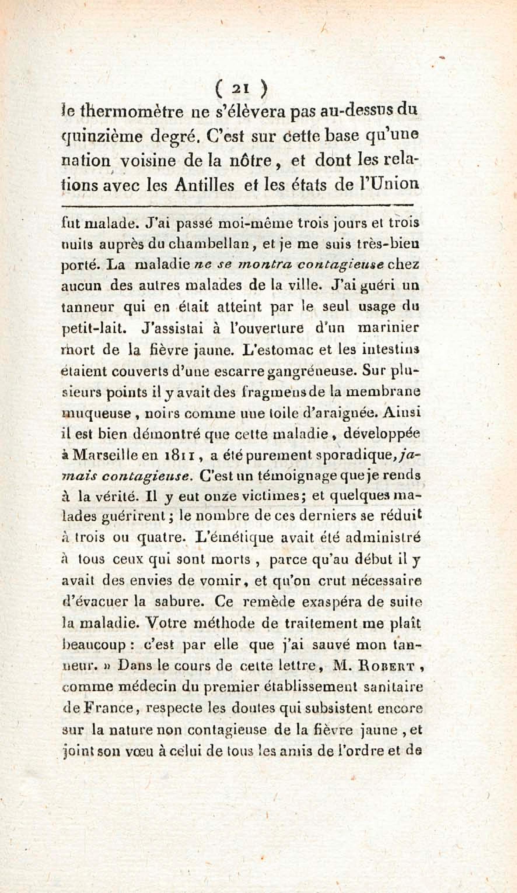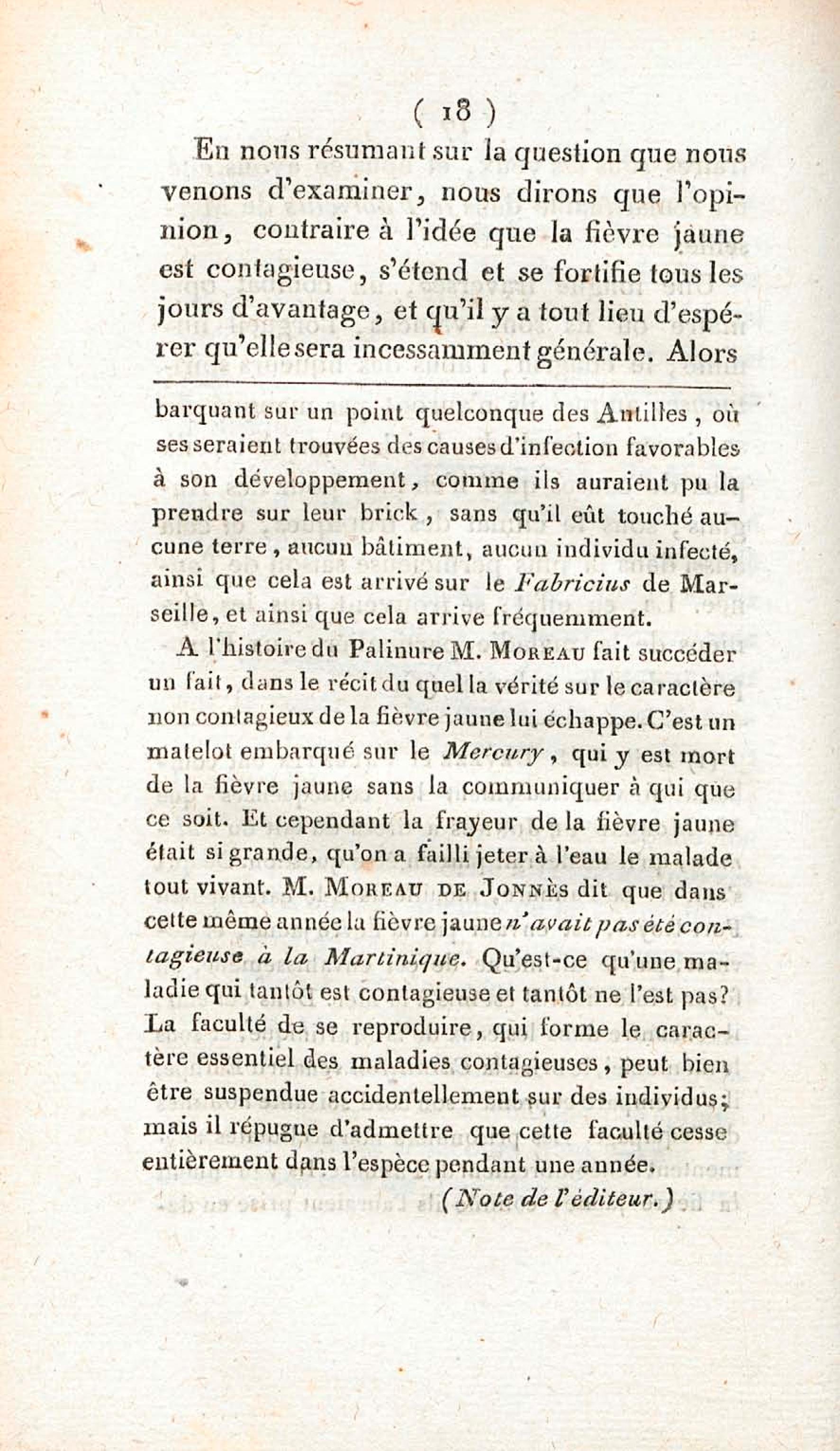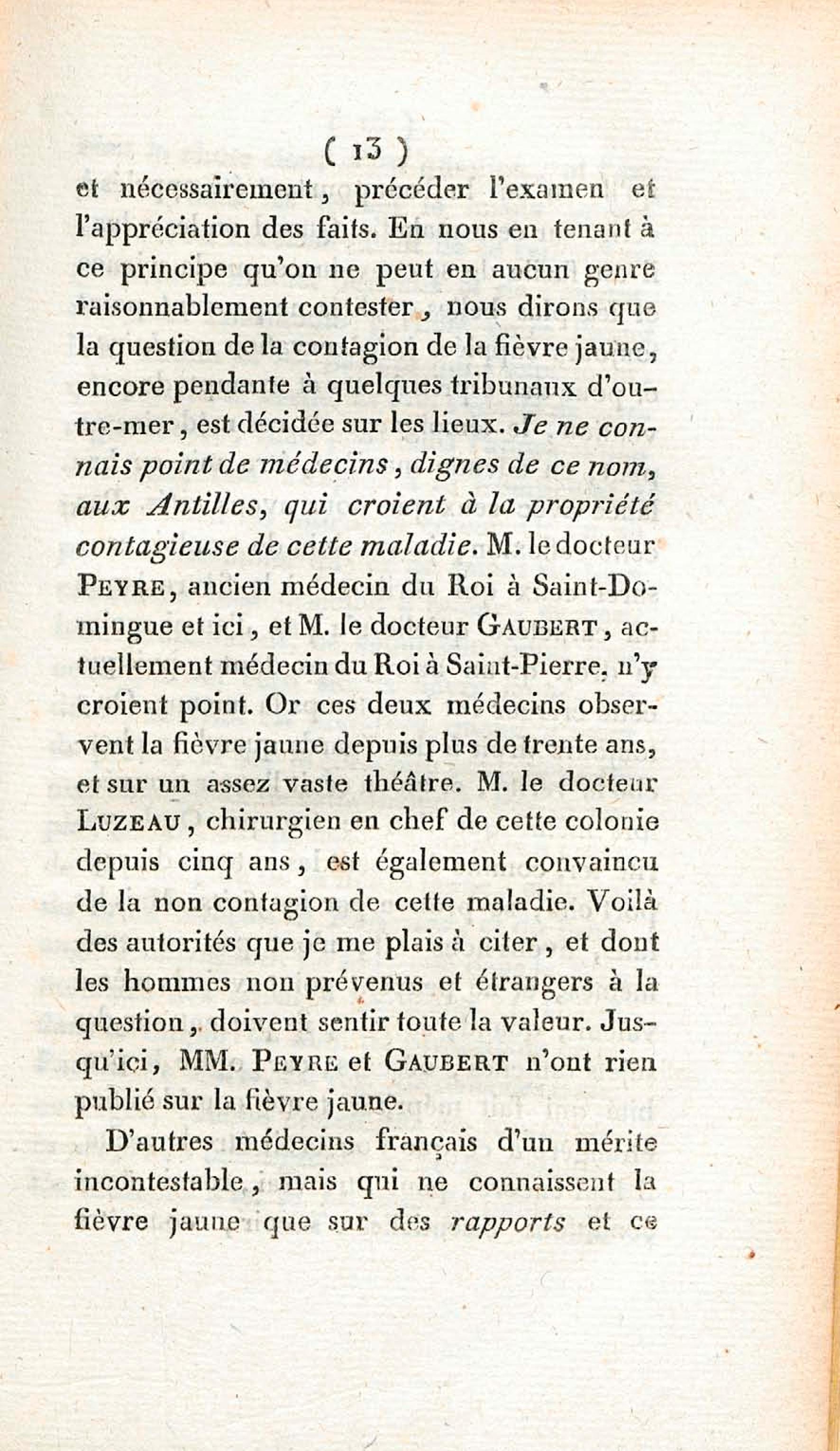 Opinion de M. Lefort, médecin du roi à la Martinique, sur la non contagion et non importation de la fièvre jaune
