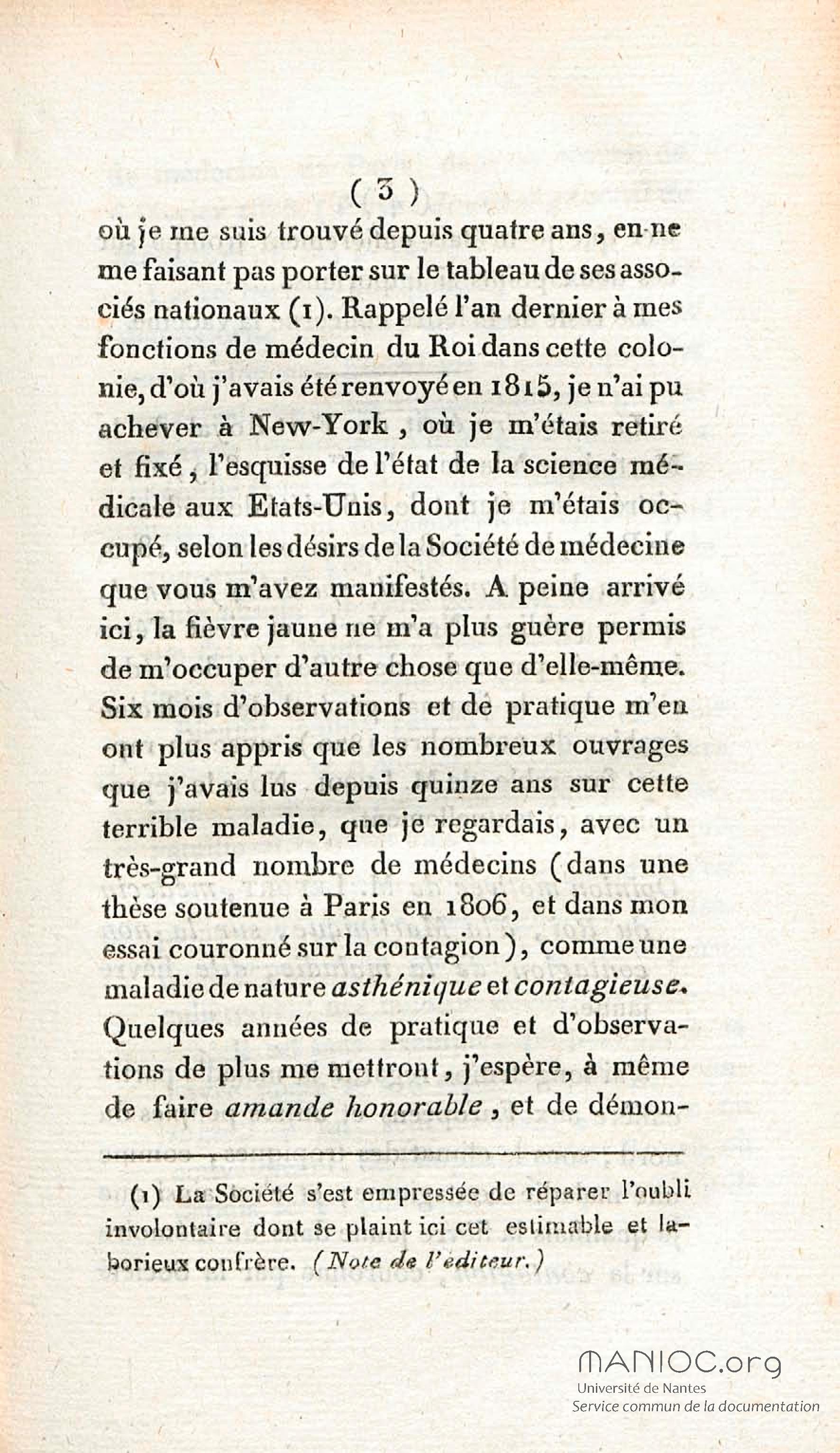 "Document inclus dans un recueil. La page de titre du recueil porte "Dissertation sur le typhus amaril"