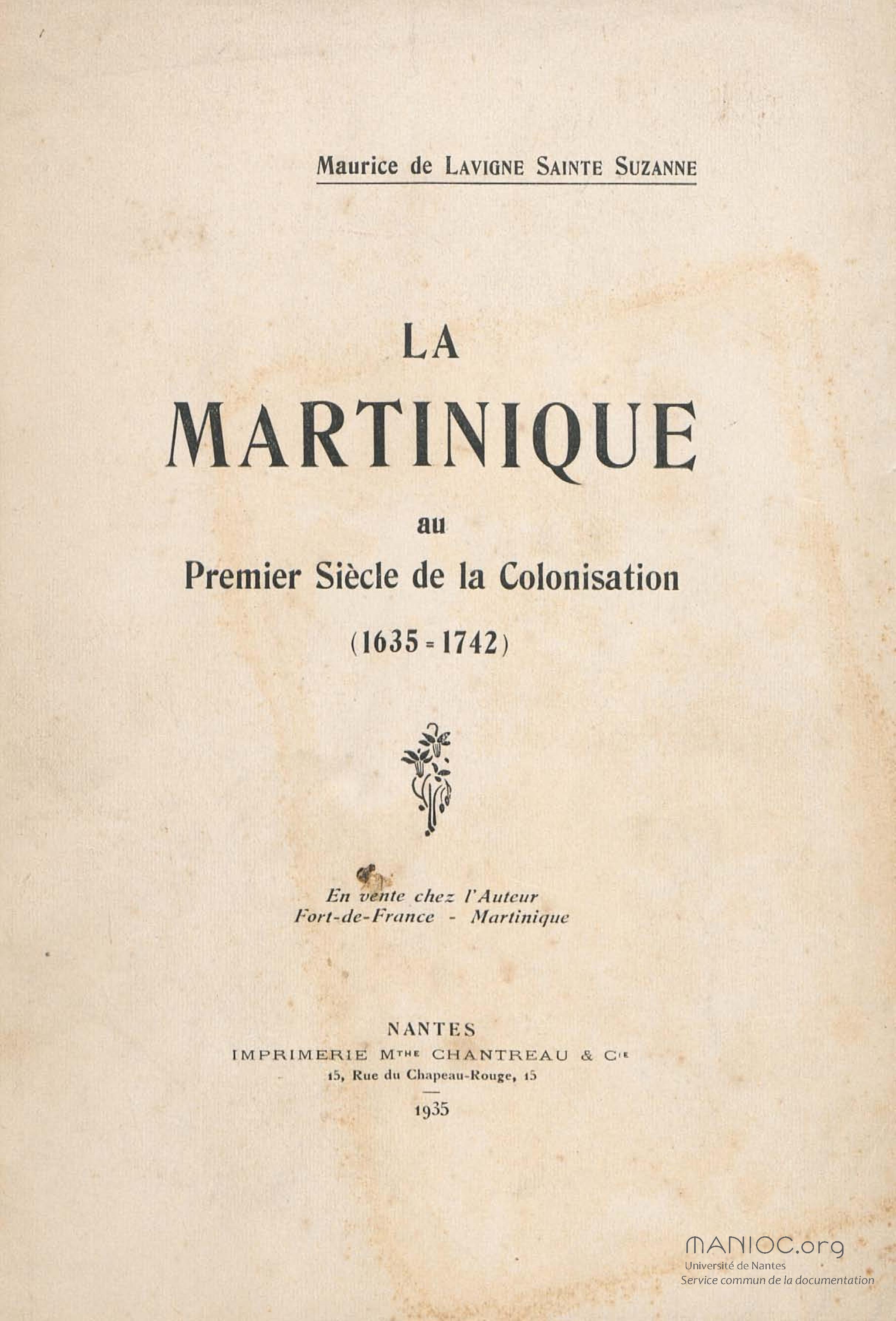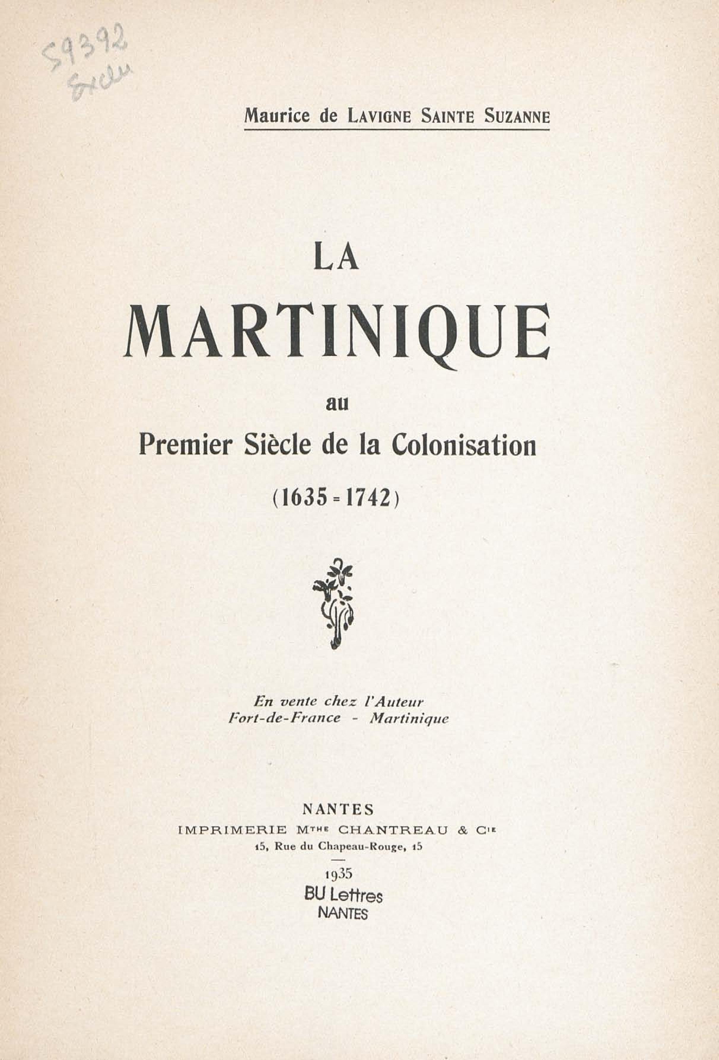 - La Martinique au premier siècle de la colonisation : 1635-1742