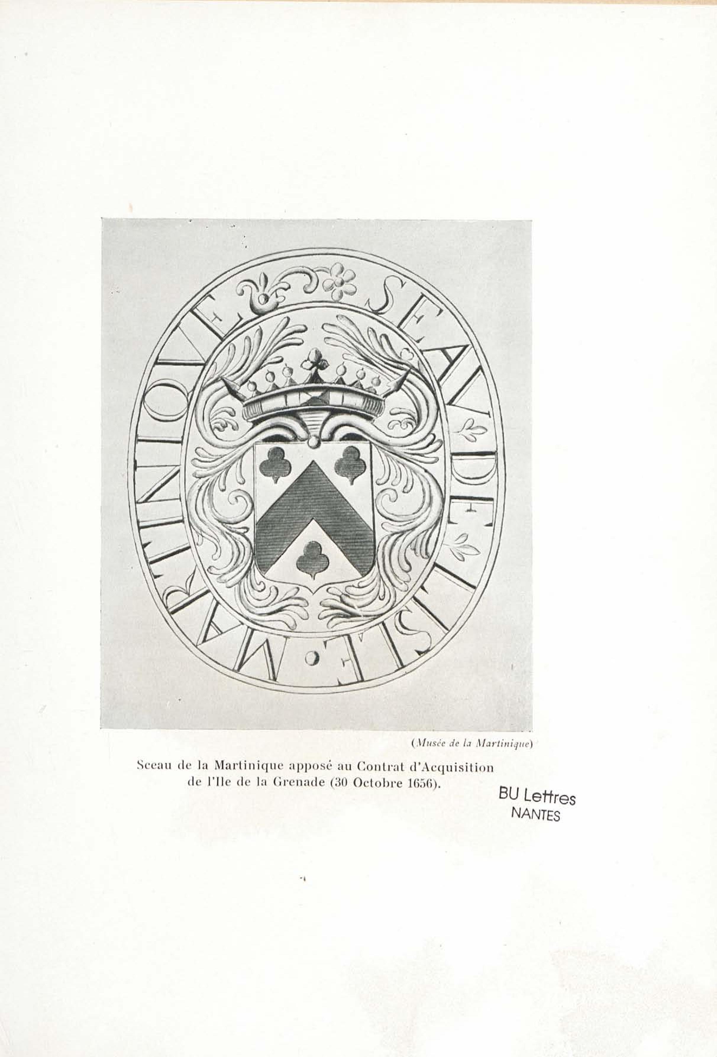 Sceau de la Martinique apposé au Contrat d'Acquisition de l'Ile de la Grenade (30 Octobre 1656). |