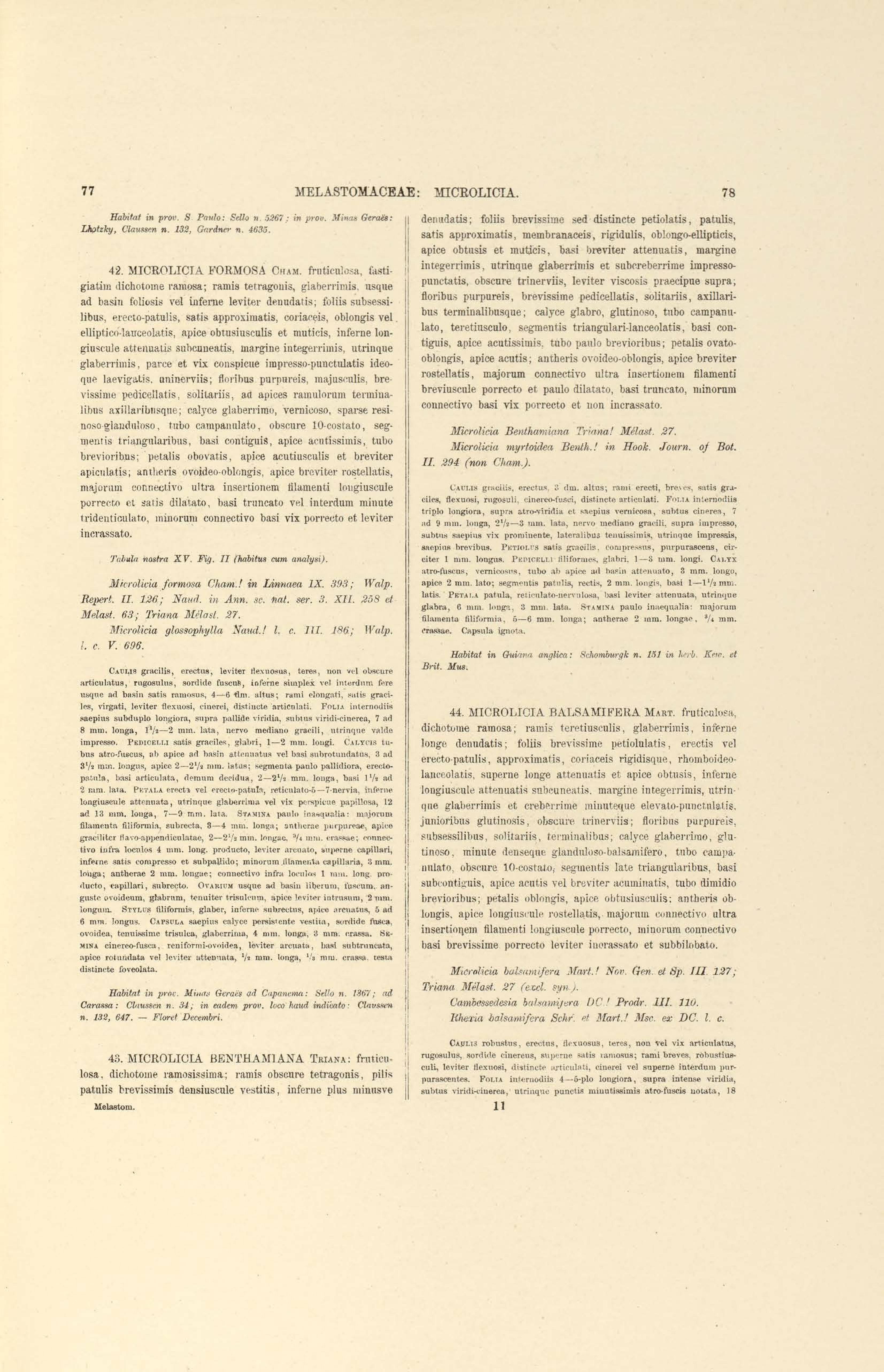 Fait partie de Flora brasiliensis : enumeratio plantarum in Brasilia hactenus detectarum quas suis aliorumque botanicorum studiis descriptas et methodo naturali digestas partim icone illustratas. Volumen XIV, Pars III, Melastomaceae : Tribus I, Microlicieae, Tribus II, Tibouchineae
