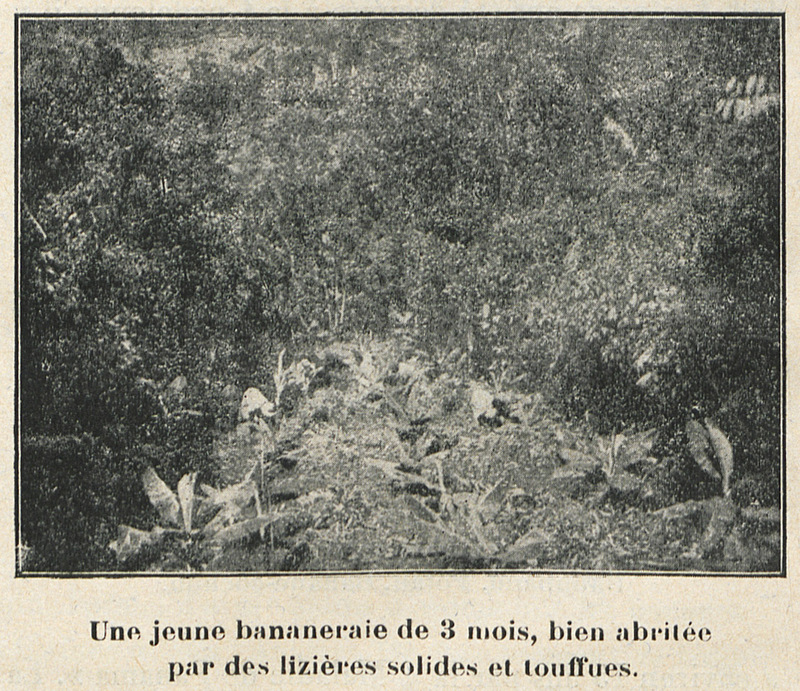 - Une jeune bananeraie de 3 mois, bien abritée par des lizières solides et touffues.