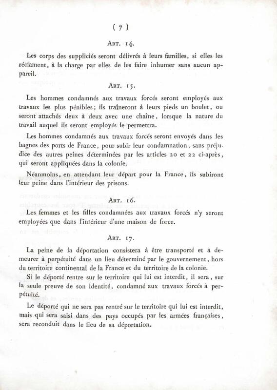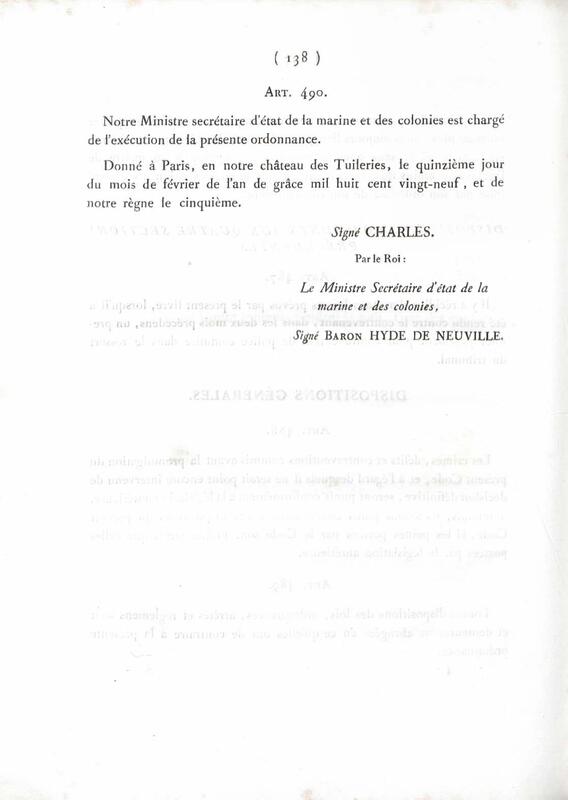- Ordonnance du roi portant application du code pénal à la Guiane [sic] française