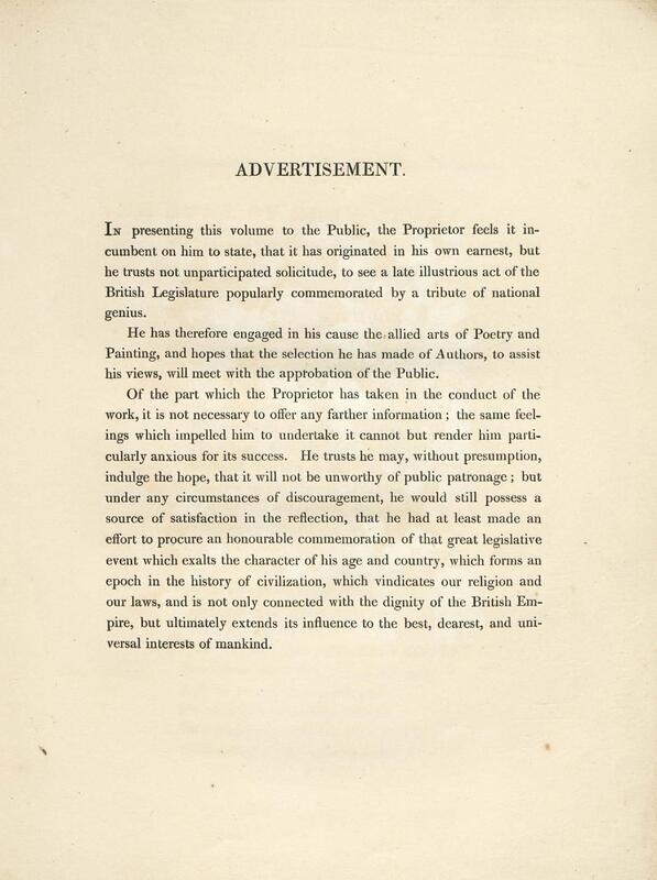 [Gravure illustrant « A poem, occasioned by the abolition of the slave trade, in 1806.», poème de E. Benger]