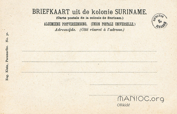- français Carte postale éditée par Eug. Klein, Paramaribo. N°30.