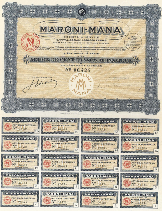 - Maroni-Mana. Action de 100 francs
