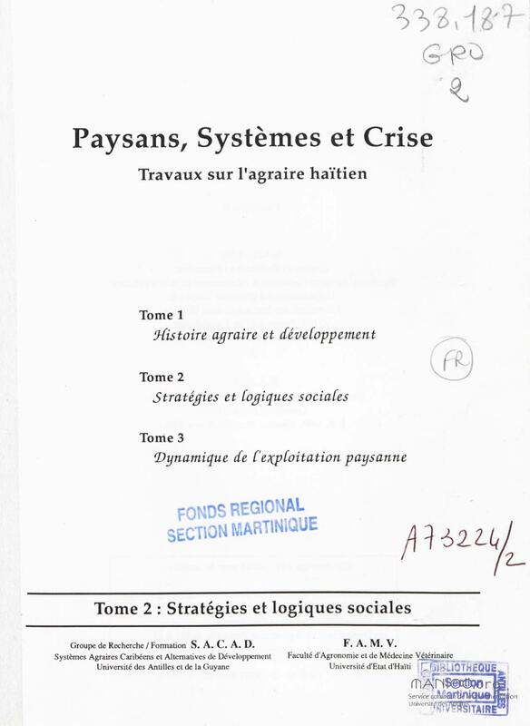 - Paysans, systèmes et crise : travaux sur l'agraire haïtien. Tome 2. Stratégies et logiques sociales