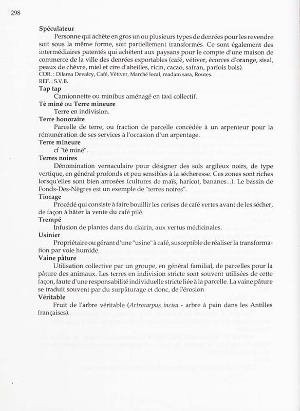 - Ce deuxième tome présente les conditions économiques et sociales de la production agricole en Haïti et aborde les questions suivantes : accès à la terre (foncier), circuits de distribution des productions, revenus, main d’œuvre, types d'organisation et de coopération (coumbites, djanns, escouade, corvées). Une partie est également consacrée aux métiers de l'artisanat.