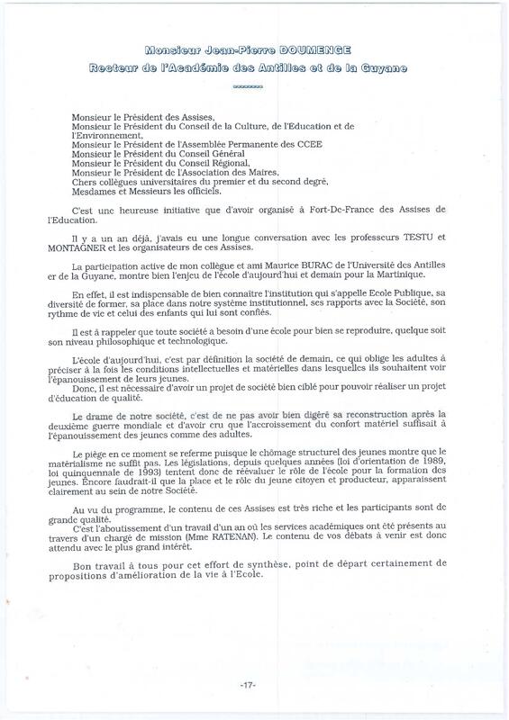 - Recueil des actes des premières assises de l'éducation à la Martinique