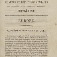 Collection des constitutions, chartes et lois fondamentales des peuples de l'Europe et des deux Amériques : avec des précis offrant l'histoire des libertés et des institutions politiques chez les nations modernes, et une table alphabétique raisonnée des matières. Supplément, Confédération germanique, Prusse, Portugal, Turquie, Grèce, Suisse, États-Unis, Mexique, Guatemala, Brésil, Colombie, Pérou, Bolivia, La Plata, Chili, France
