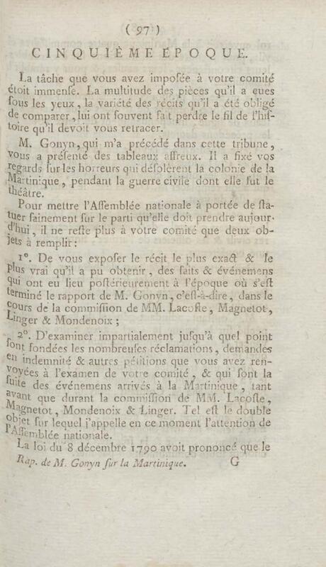 - Rapport fait à l'Assemblée nationale, au nom du comité colonial, sur les troubles de la Martinique : le 2 mai 1792