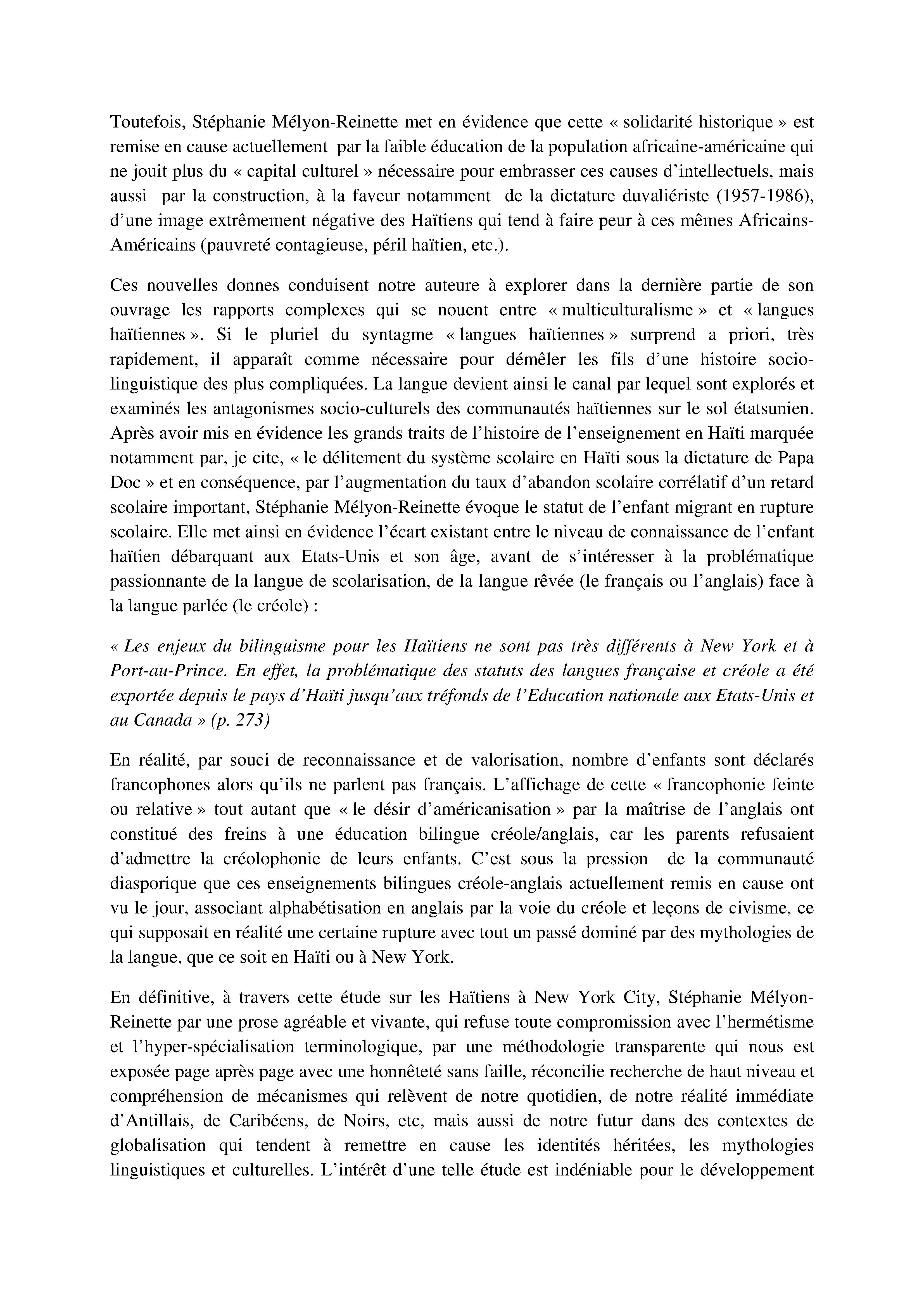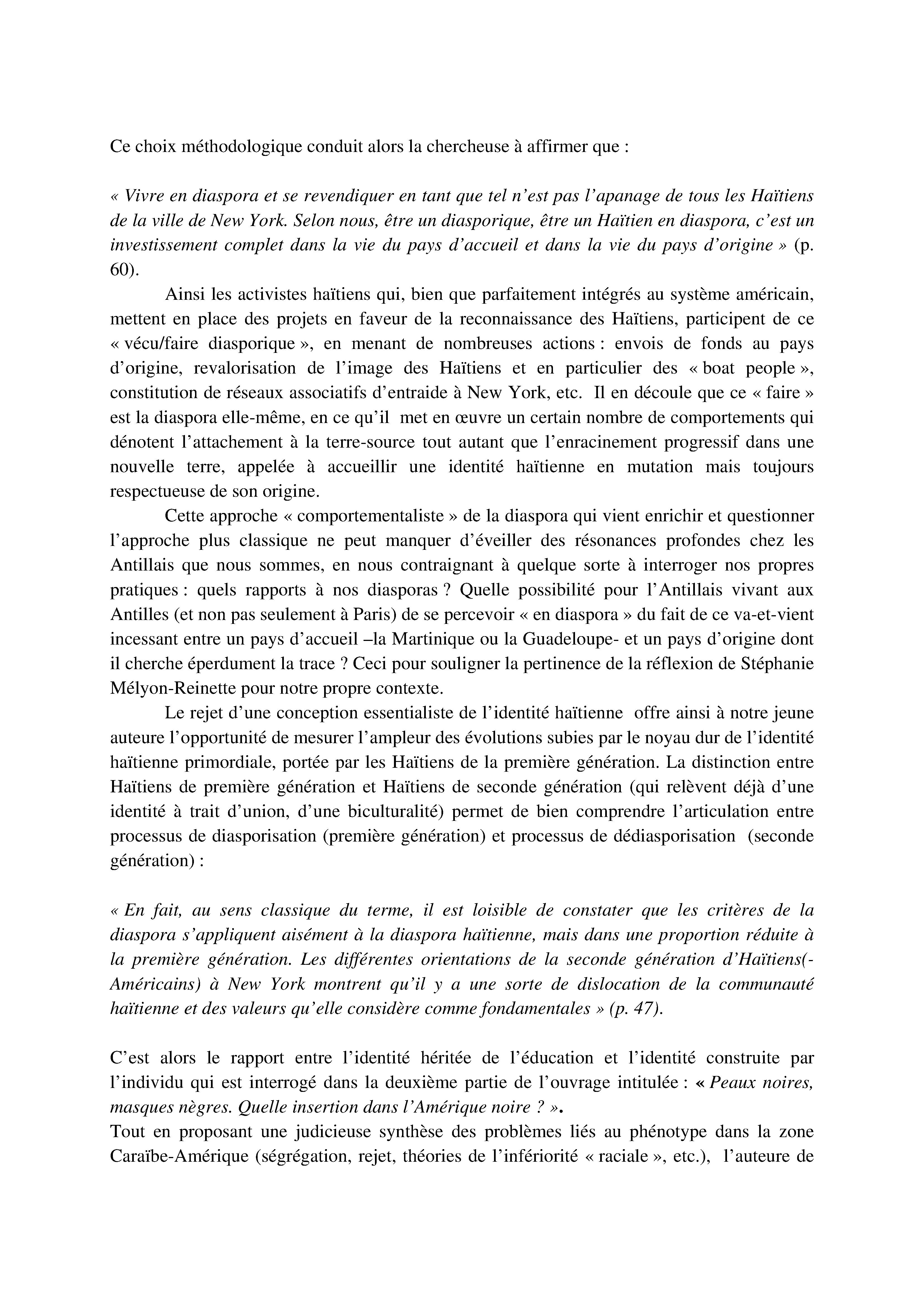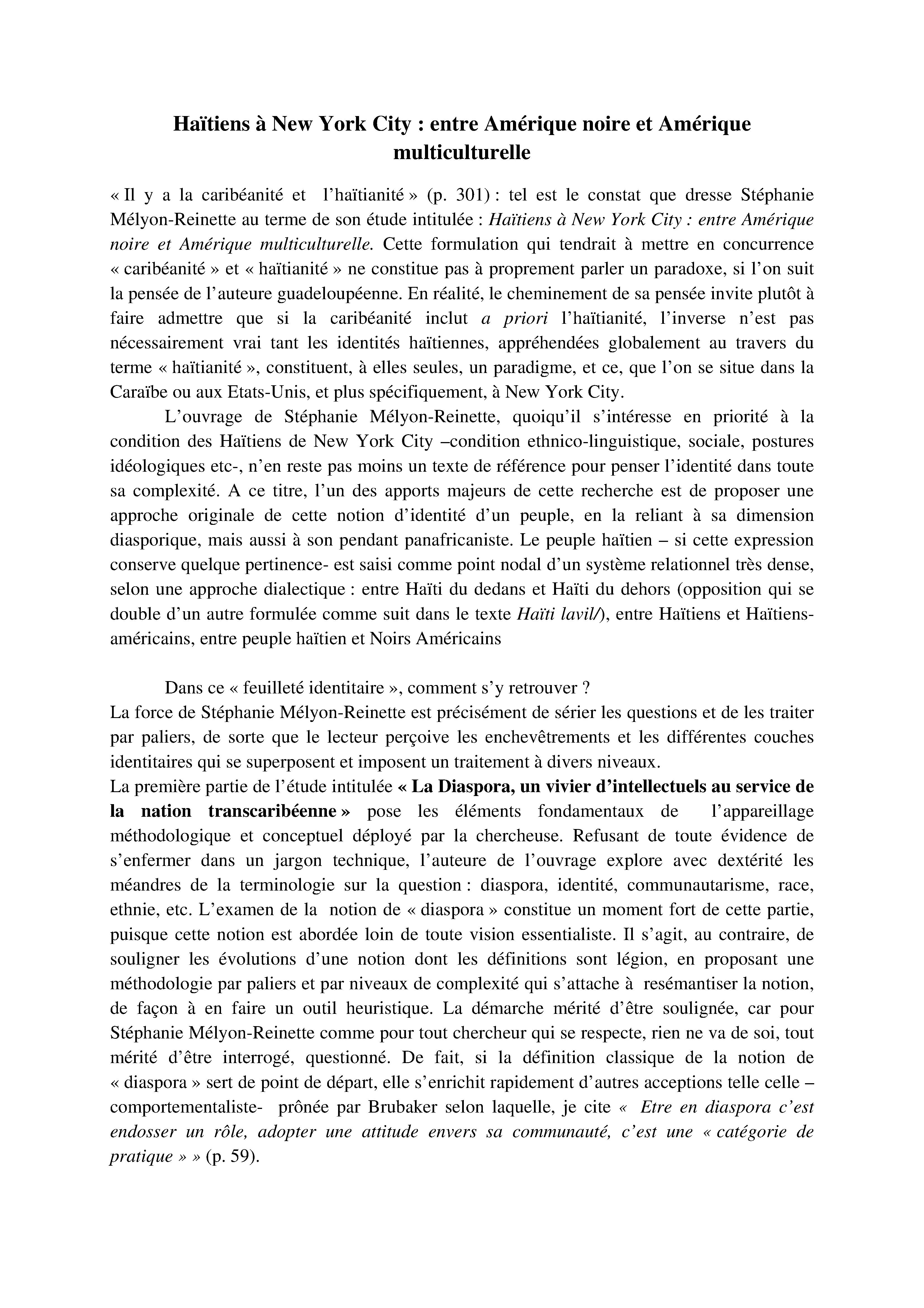 Analyse de l'étude de Stéphanie Mélyon-Reinette : Haïtiens à New York City : entre Amérique noire et Amérique multiculturelle