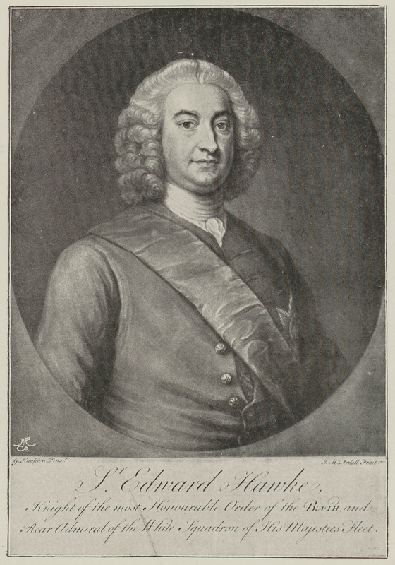 Portrait of Lord Hawke. Sir Edward Hawke, Knight of the most Honourable Order of the Bath, and rear admiral of the White Squadron of His Majesties Fleet