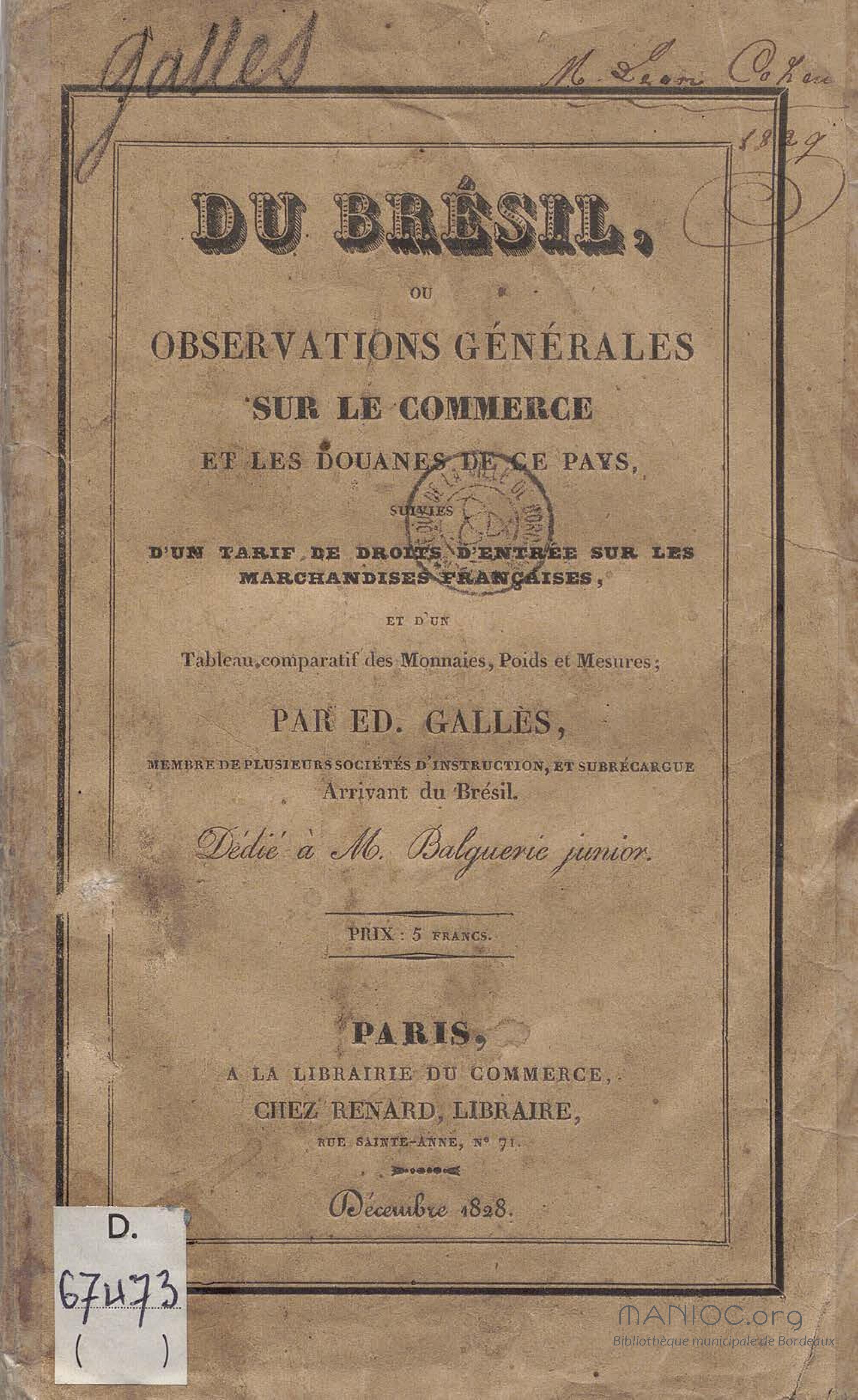 Du Brésil, ou Observations générales sur le commerce et les douanes de ce pays