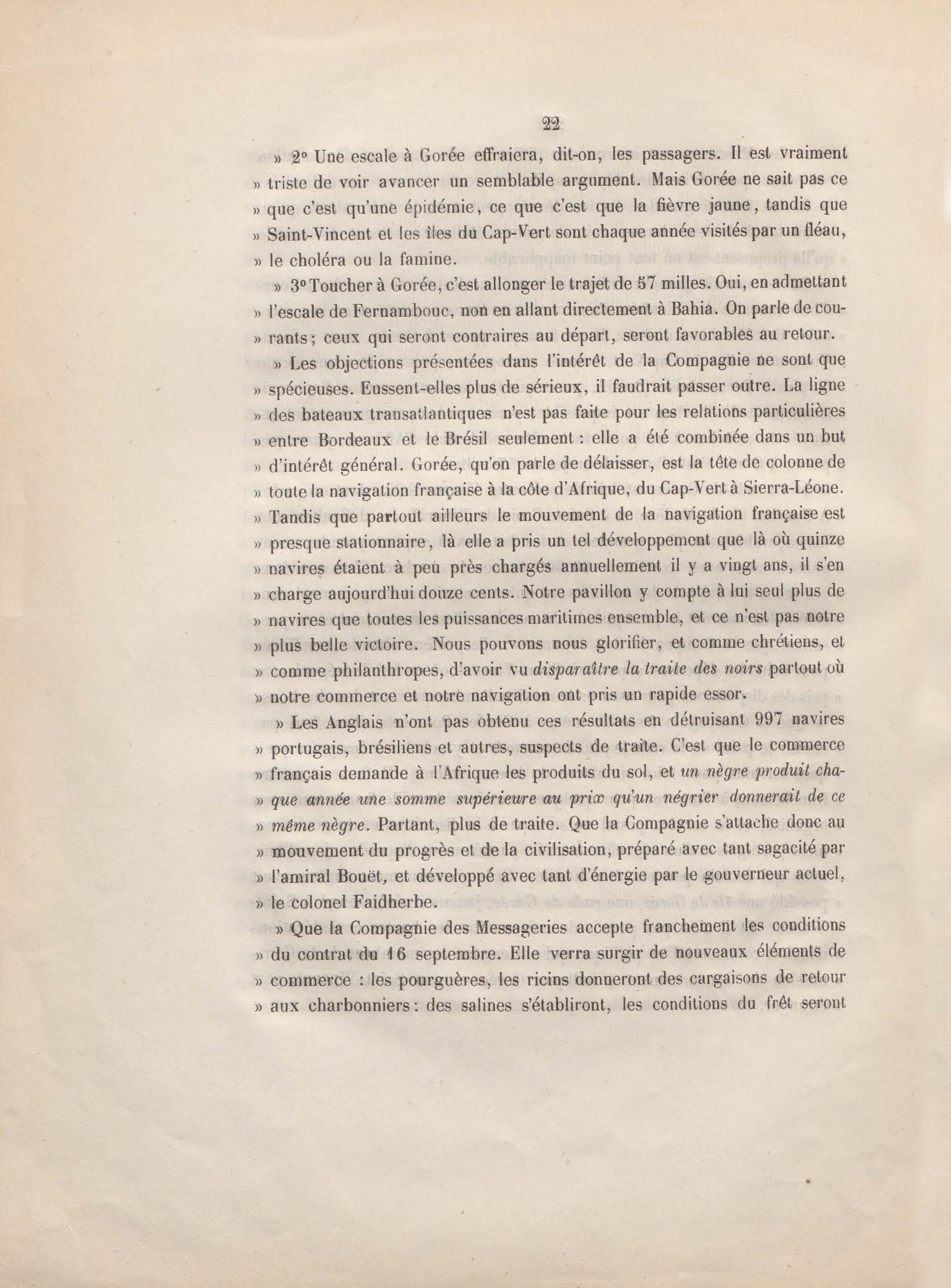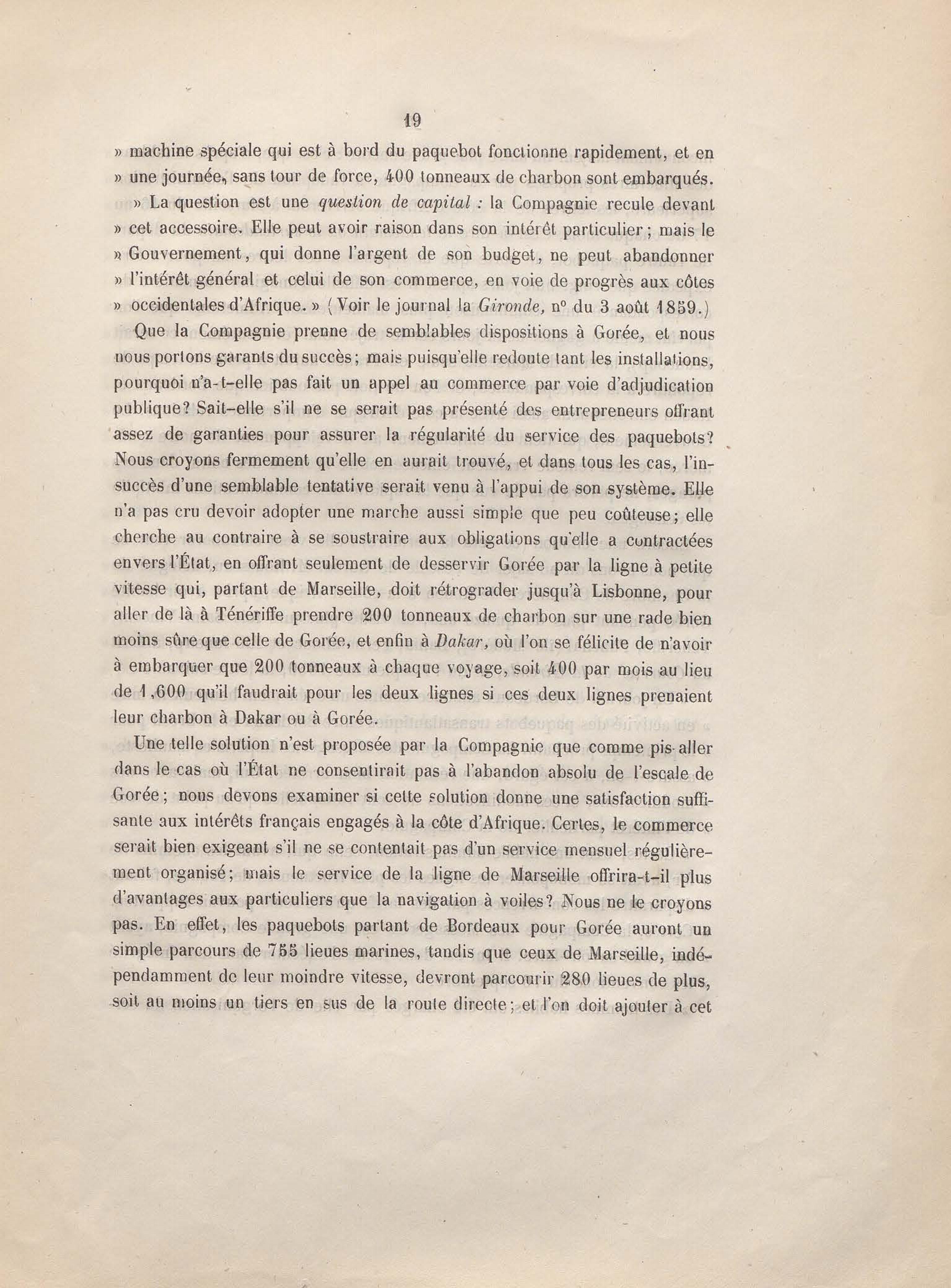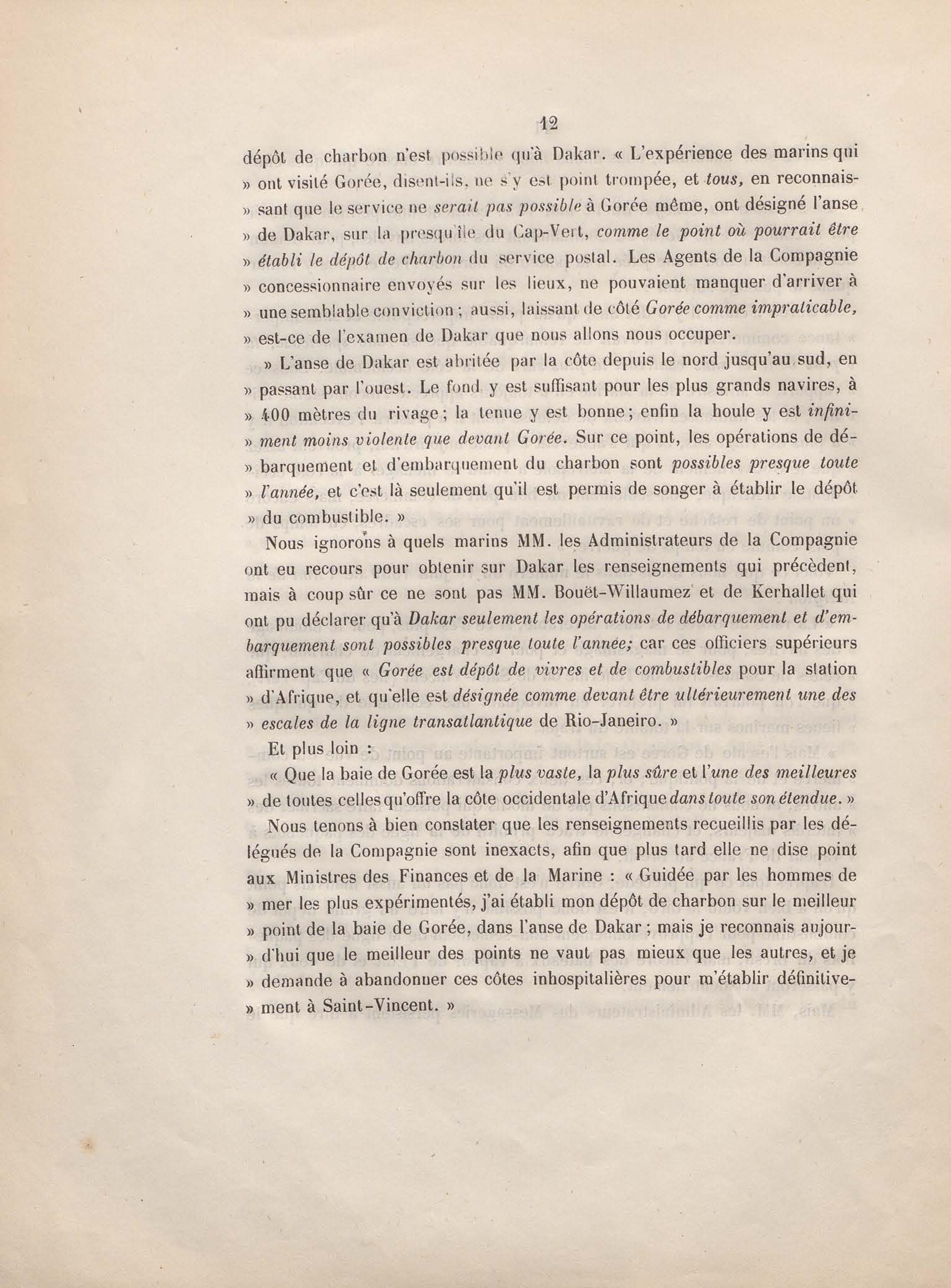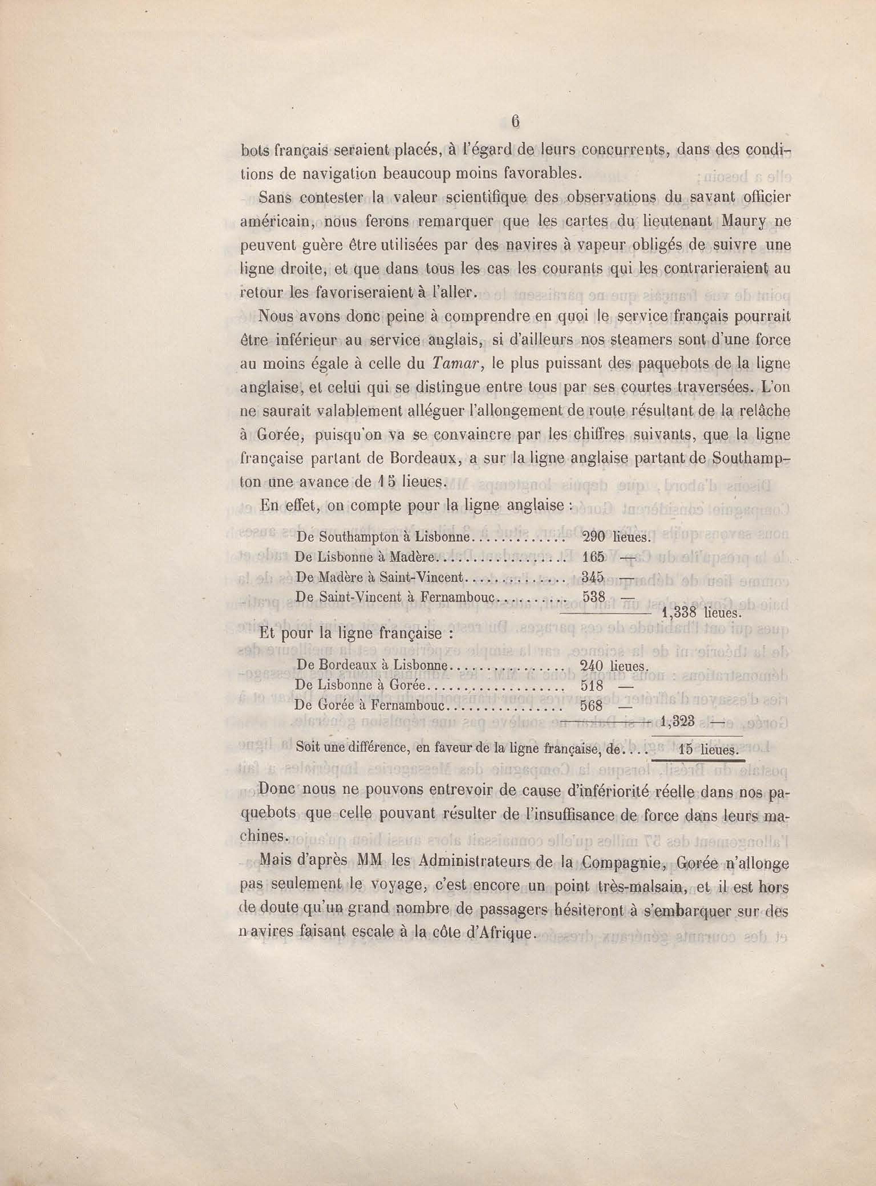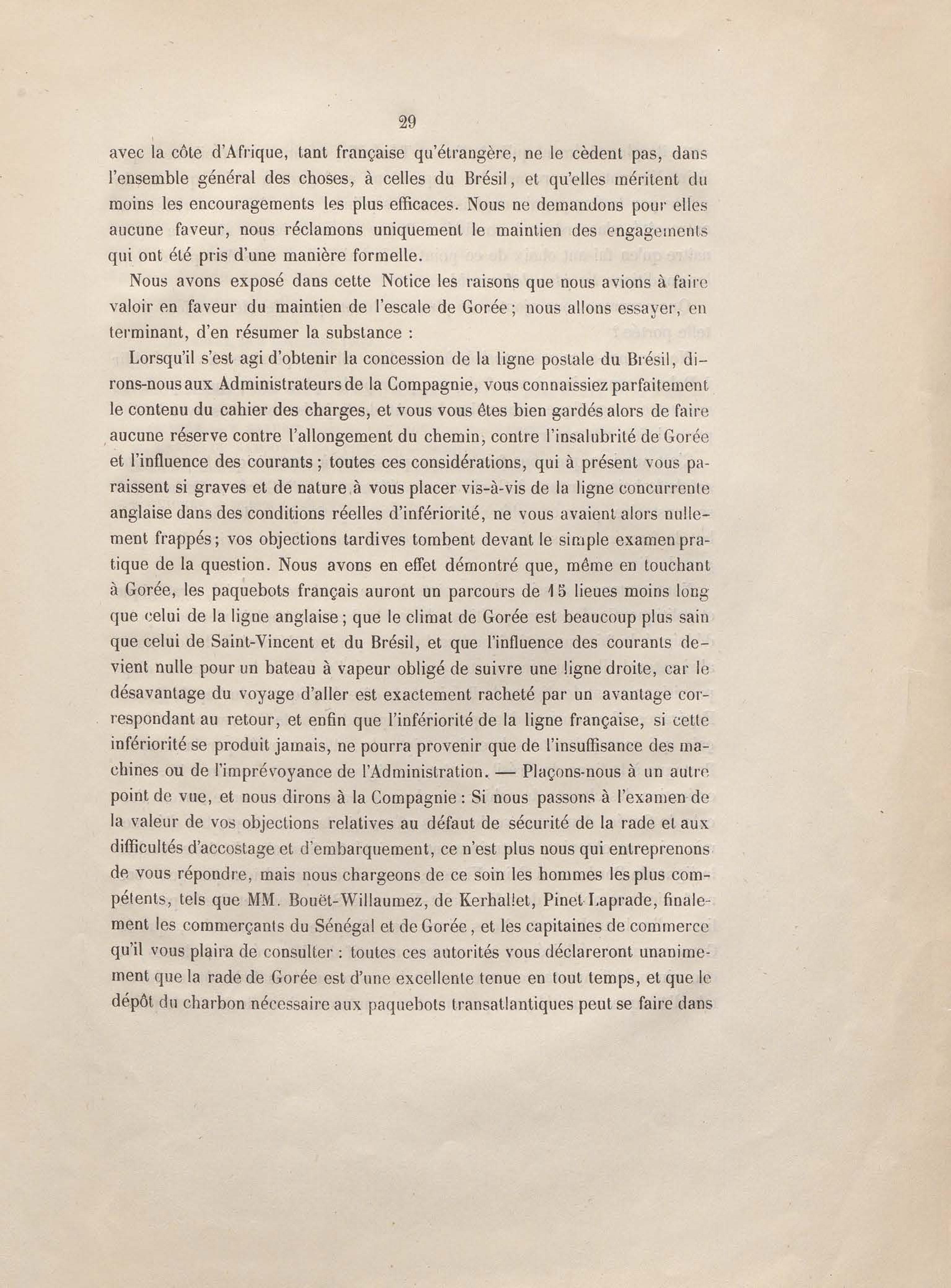 Réponse en ce qui touche l'escale de Gorée au mémoire sur les itinéraires à adopter pour le service de la double ligne de navigation à vapeur entre la France et le Brésil