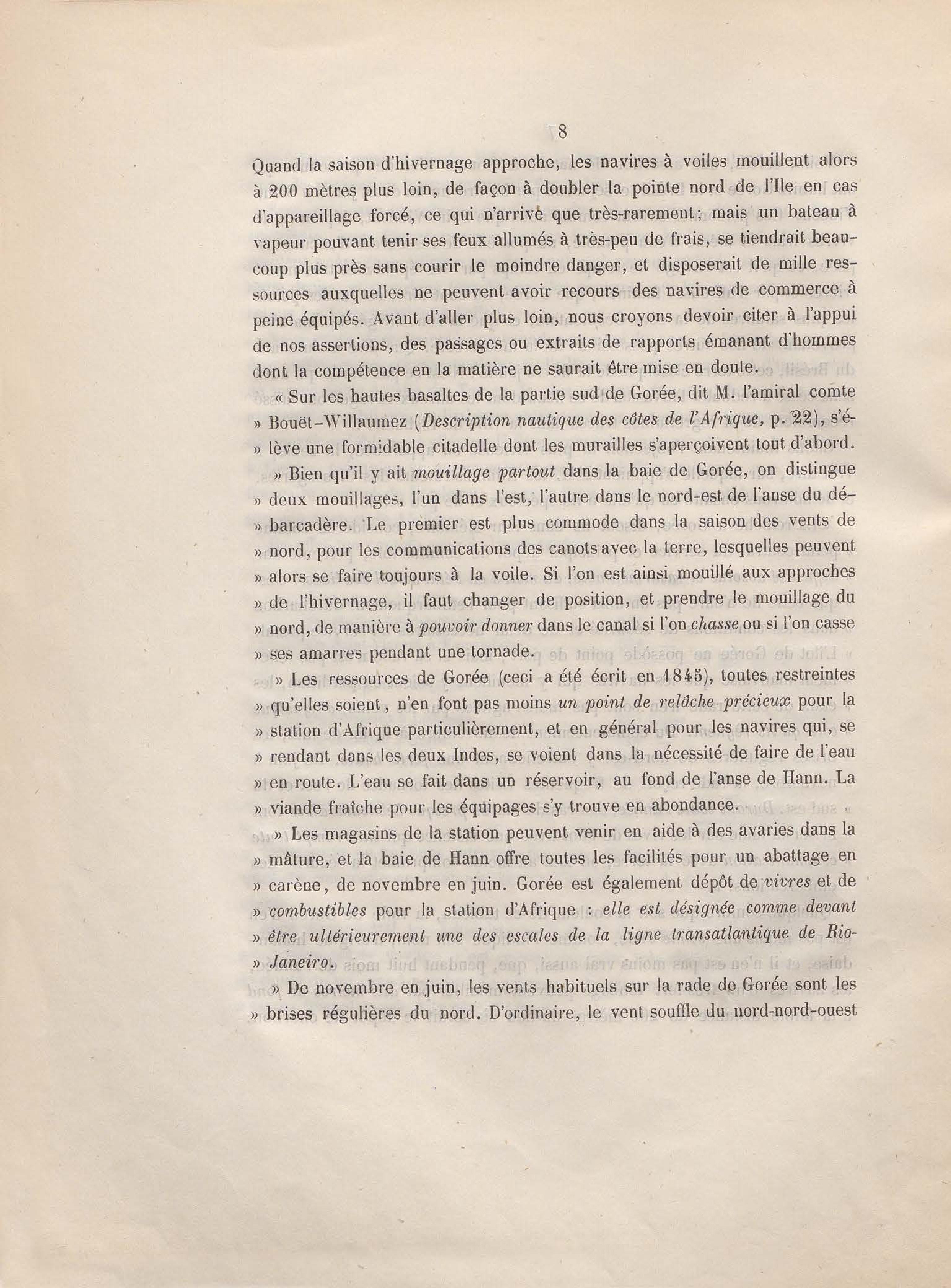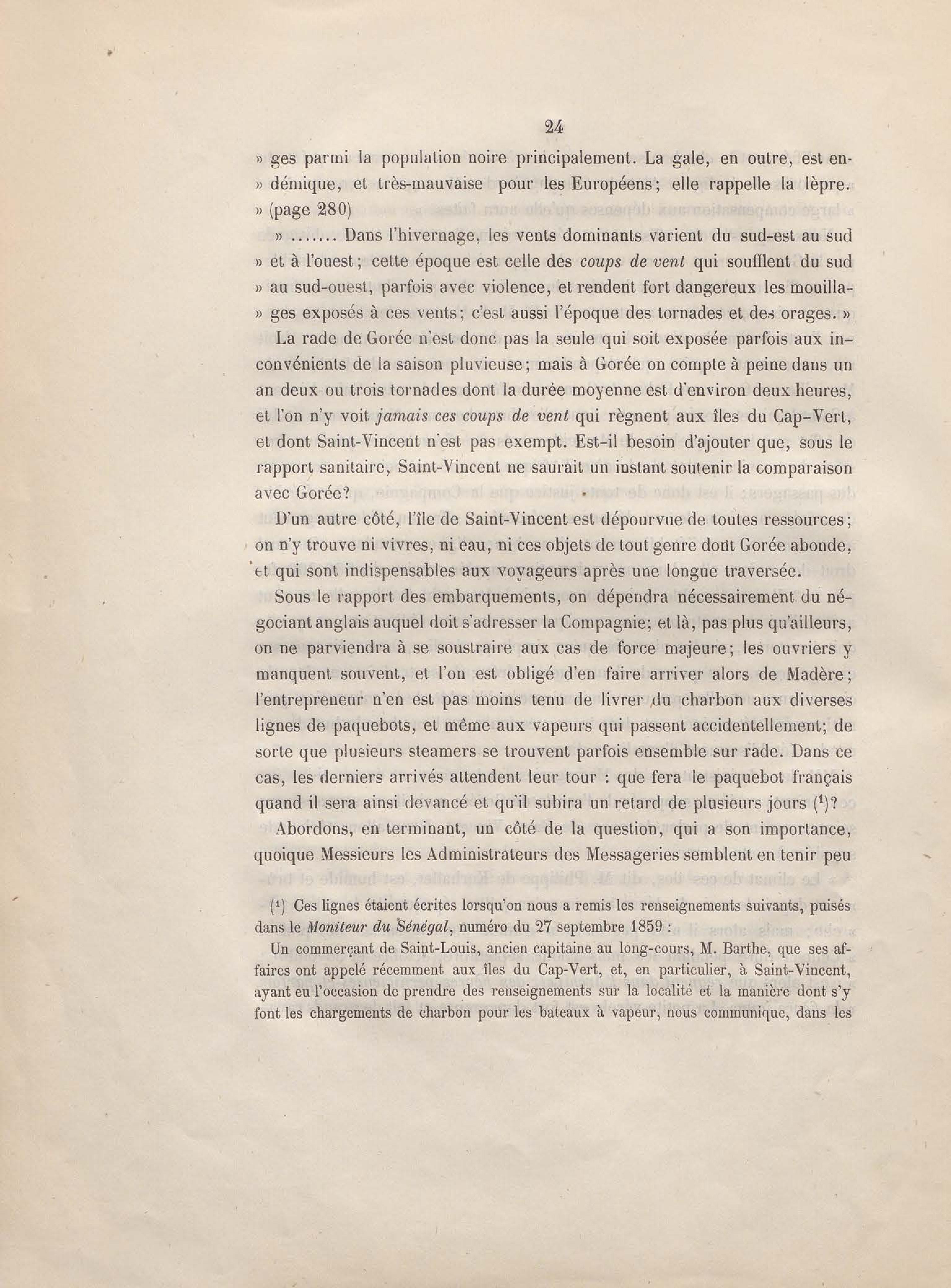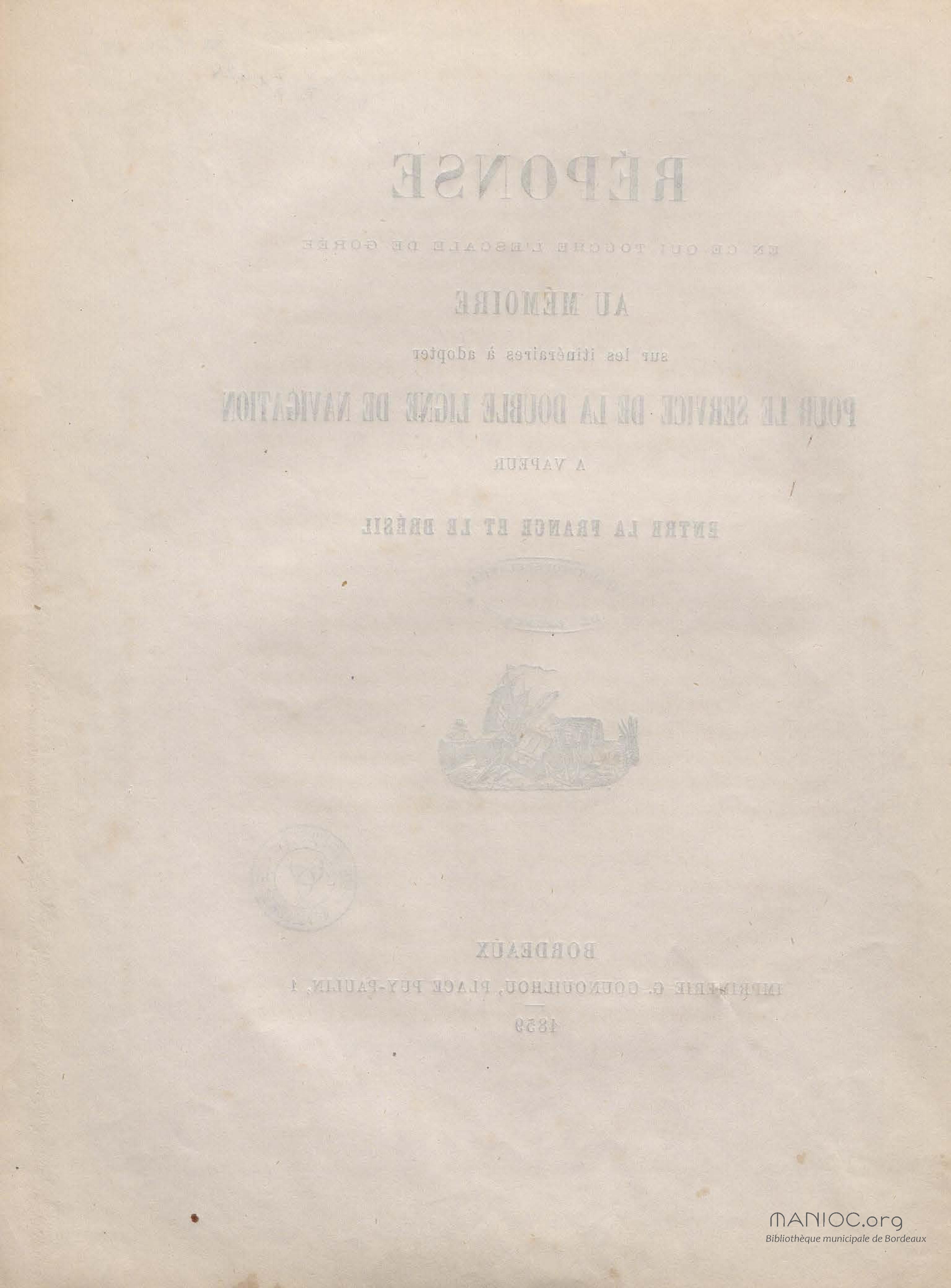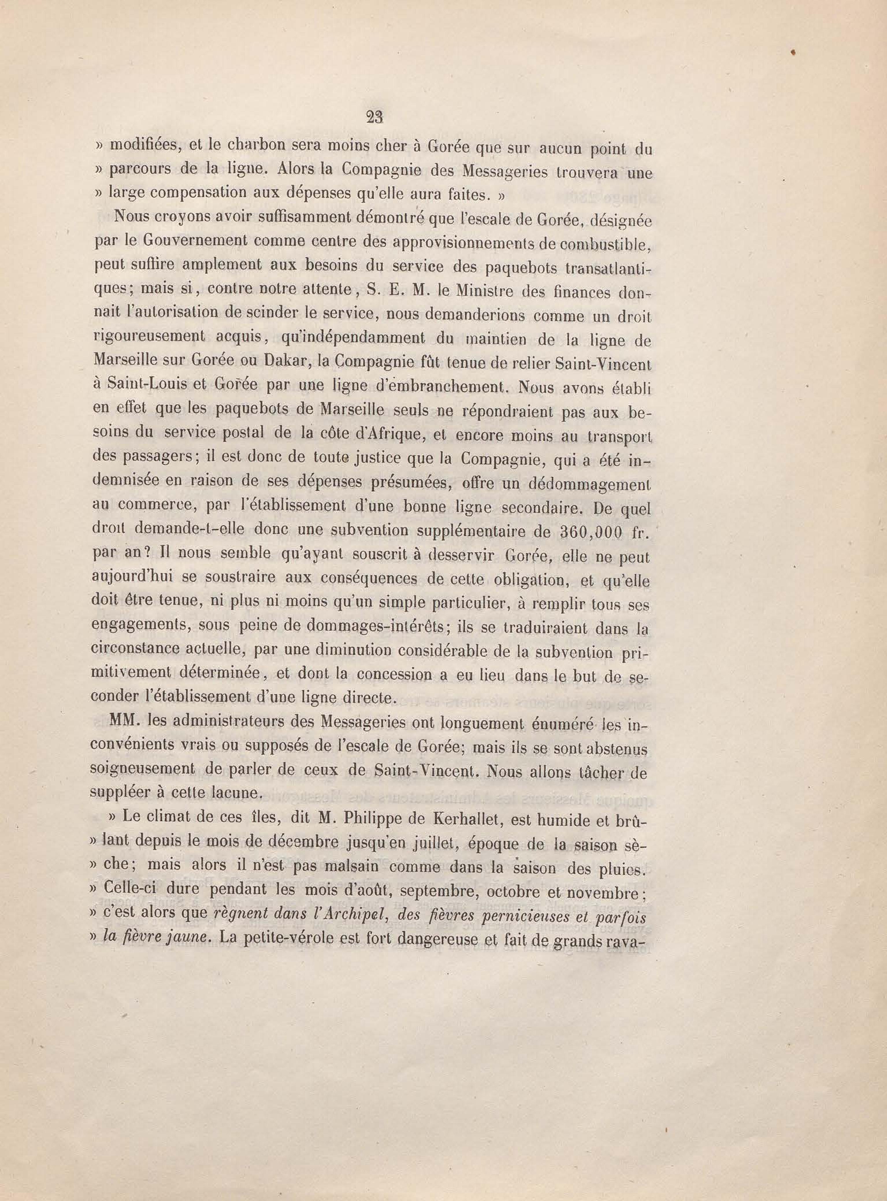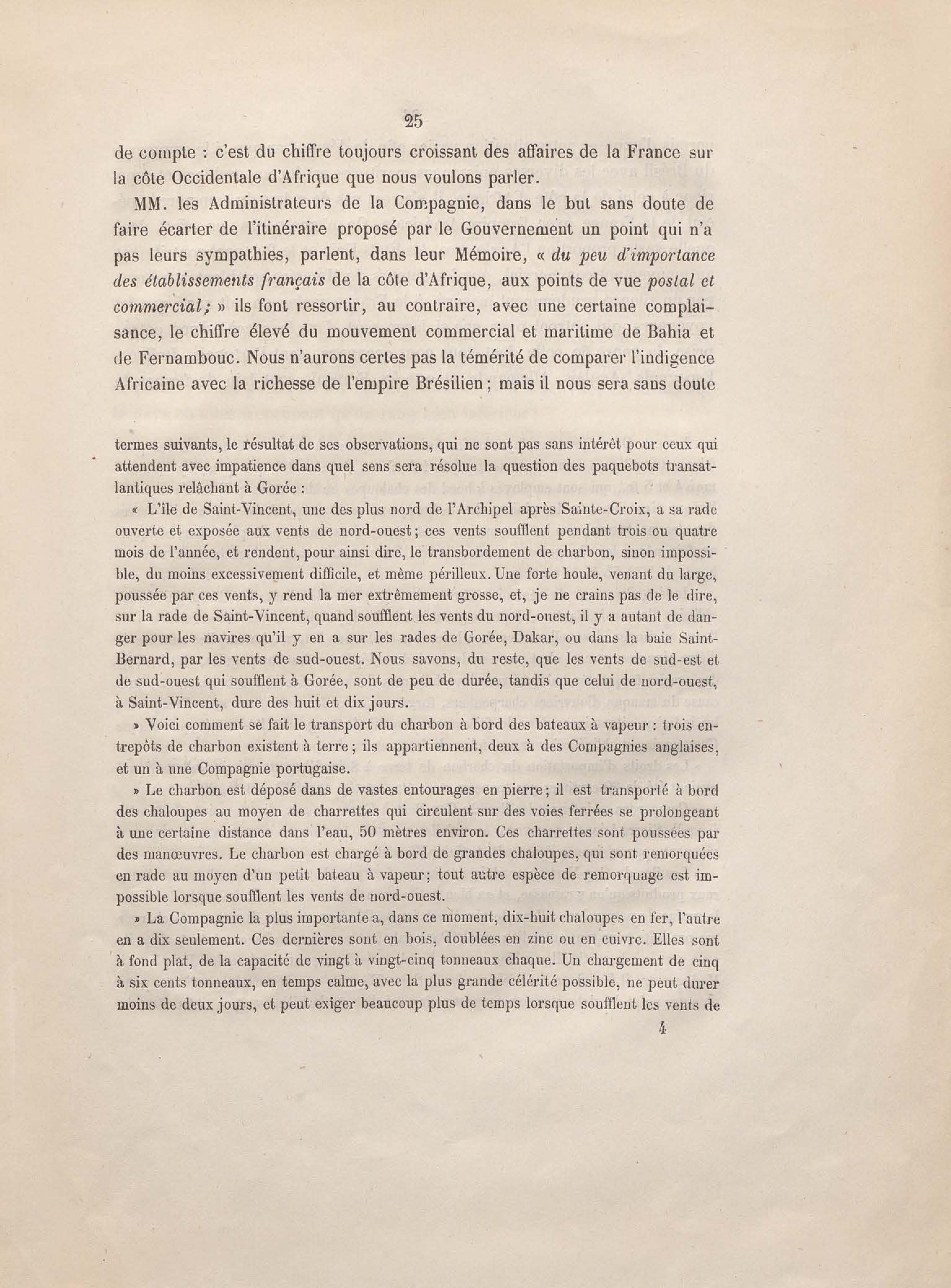 Réponse en ce qui touche l'escale de Gorée au mémoire sur les itinéraires à adopter pour le service de la double ligne de navigation à vapeur entre la France et le Brésil